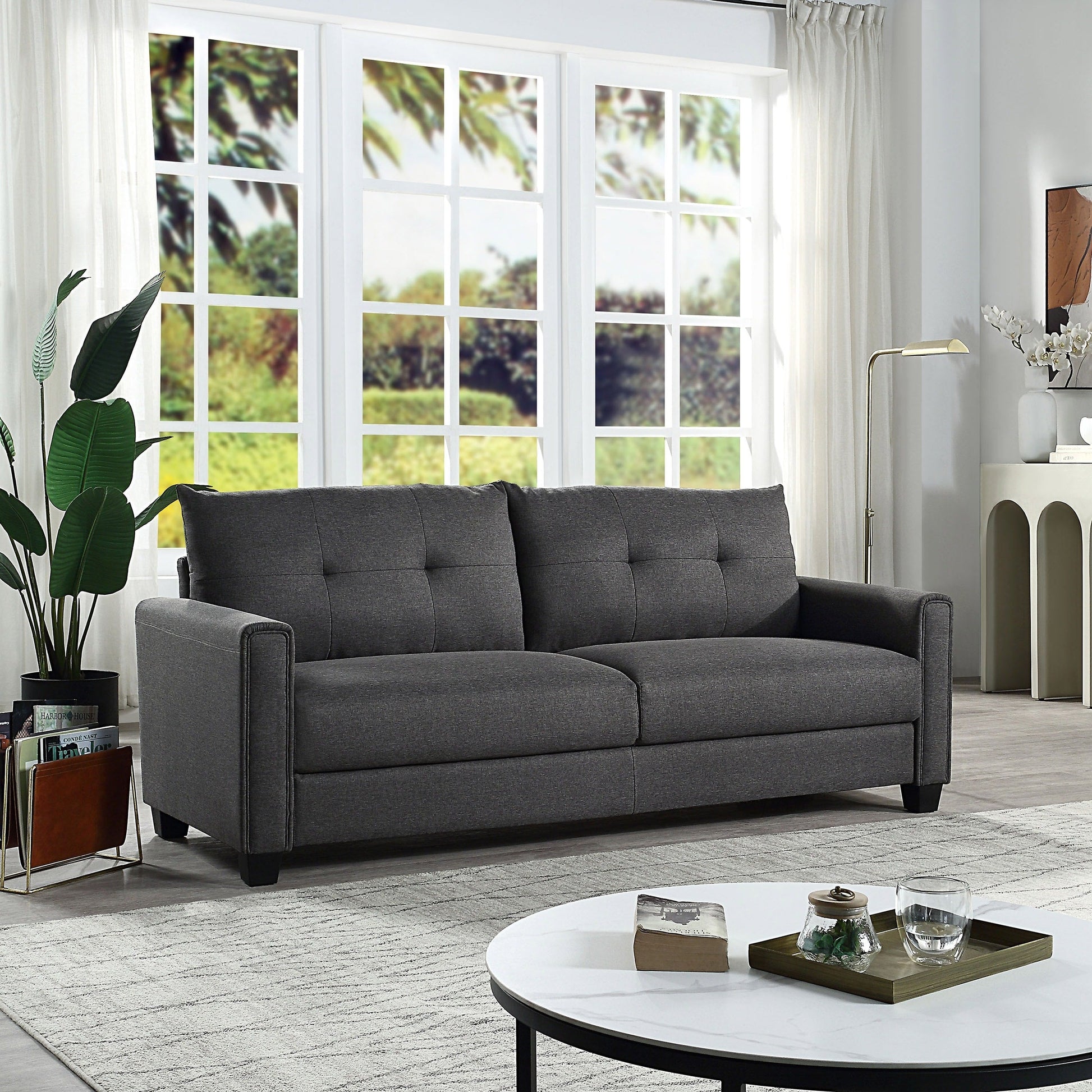 Canapé rembourré en lin avec coussins capitonnés - 30,71 x 81,10 x 32,28