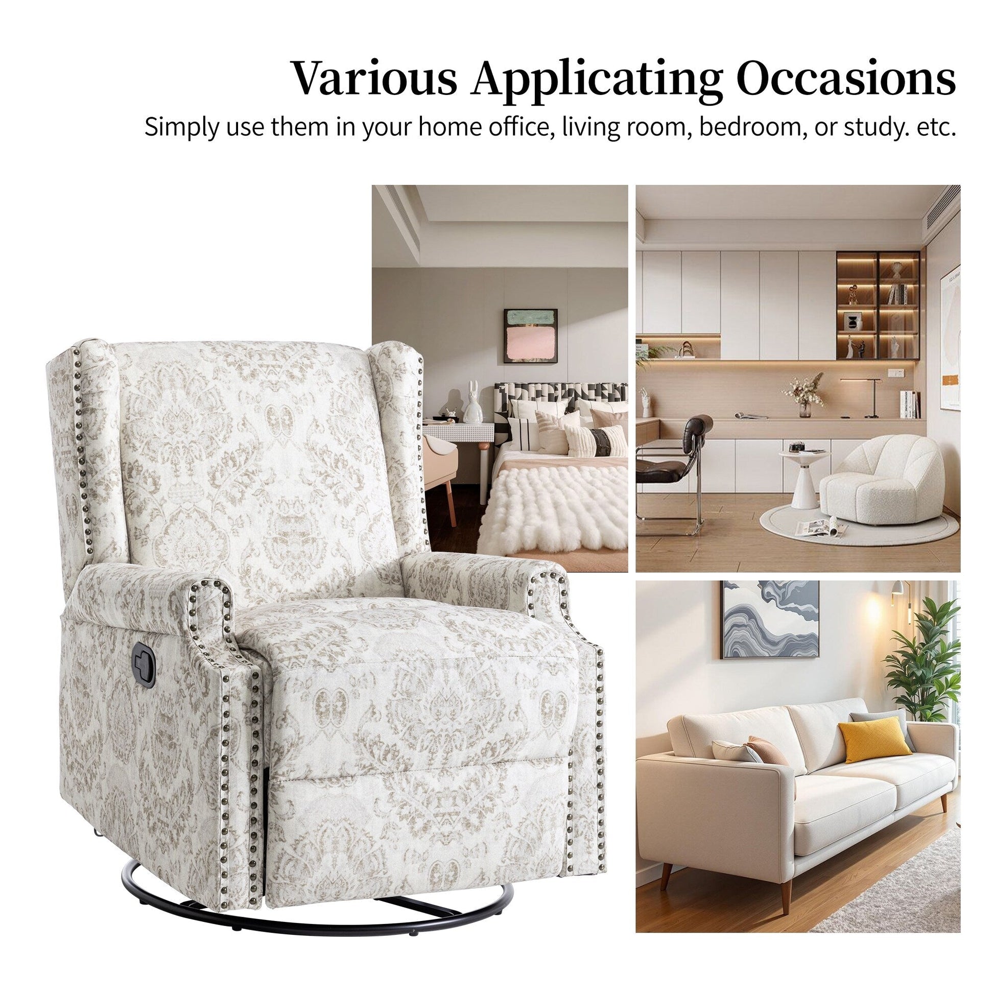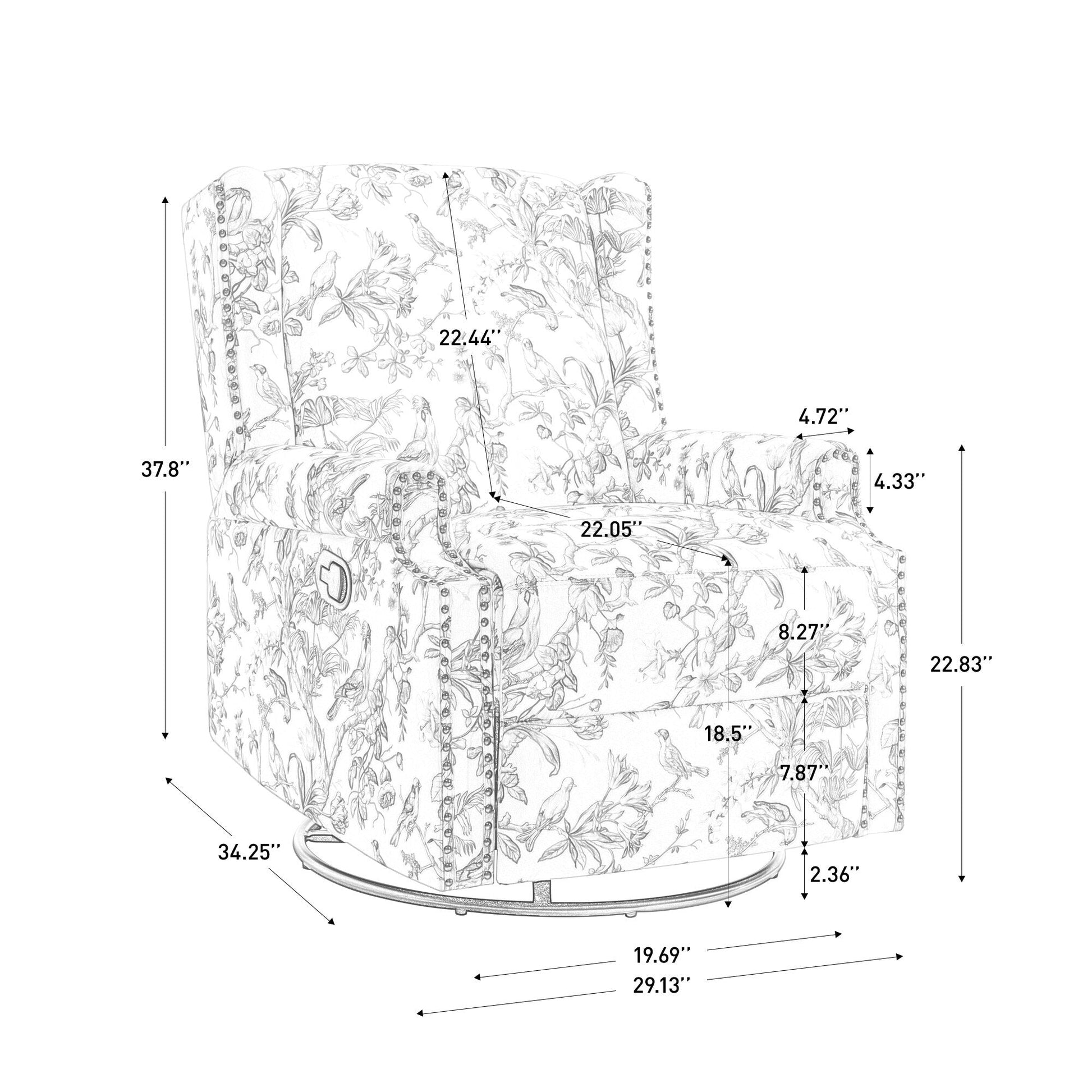 Bénéficiez d'un confort inégalé grâce à ce fauteuil inclinable pivotant au design expert, conçu pour un soutien et une polyvalence optimaux. Son revêtement en coton et lin de qualité supérieure garantit une assise douce, respirante et durable, tandis que son imprimé floral et botanique inspiré de la nature rehausse son attrait visuel. Conçu pour un confort personnalisé, le dossier inclinable réglable s'adapte en douceur à plusieurs positions grâce à une poignée latérale facile à utiliser, offrant un soutien sur mesure. La base pivotante en métal robuste permet une rotation à 360 degrés, améliorant la mobilité sans compromettre la stabilité. Complétant la fonction inclinable, le repose-pieds intégré s'étend en douceur, assurant un soutien optimal des jambes et des lombaires. Conçu pour une durabilité à long terme, ce fauteuil allie raffinement esthétique et ergonomie performante, ce qui en fait le complément idéal de tout intérieur moderne ou classique.