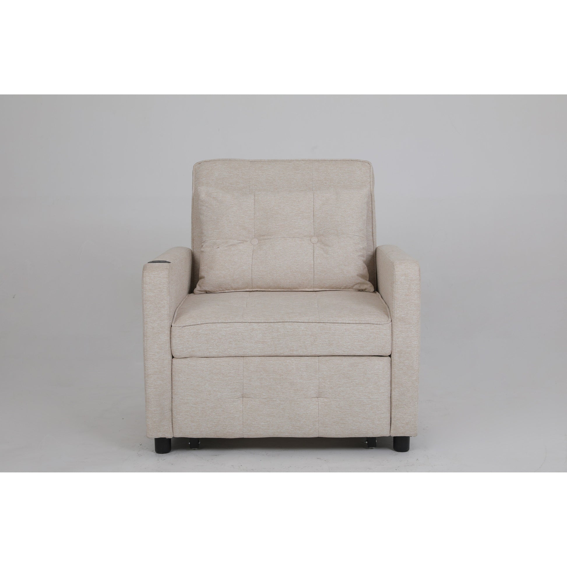 - Ce fauteuil convertible 3 en 1 se transforme facilement d'un fauteuil confortable en fauteuil inclinable ou en lit simple, idéal pour les petits espaces comme les appartements, les résidences universitaires ou les bureaux. Doté d'un dossier réglable, d'un port de charge USB intégré, d'un porte-gobelet et de poches latérales, il allie confort et fonctionnalité. Fabriqué en acier et bois robustes, avec un tissu en lin et de la mousse haute densité, il offre un soutien fiable et un montage facile.