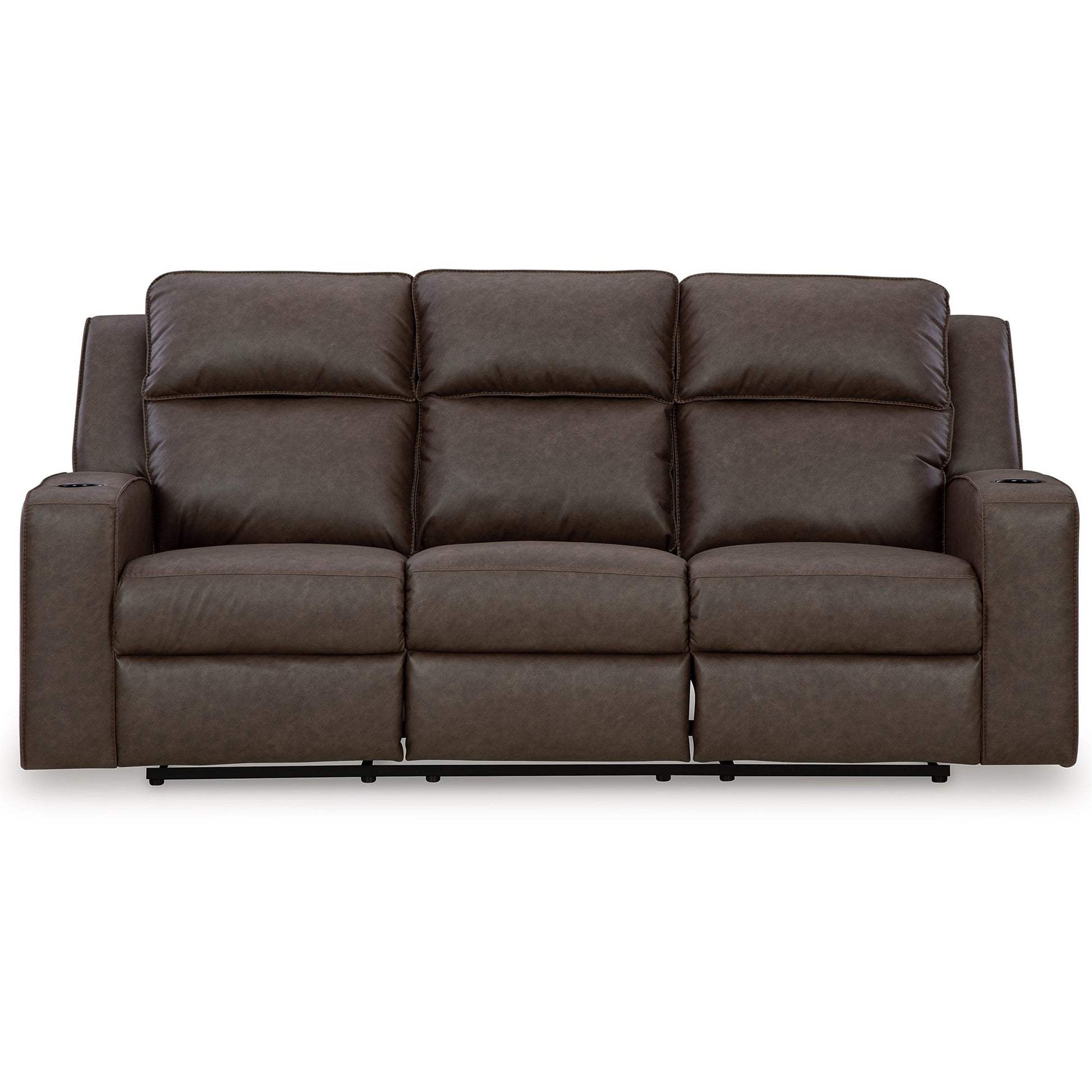 Canapé inclinable manuel Livie, USB, table 87 pouces, similicuir marron gris