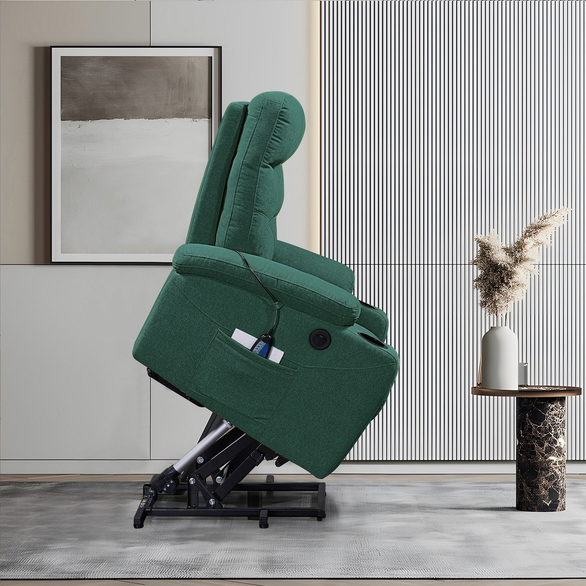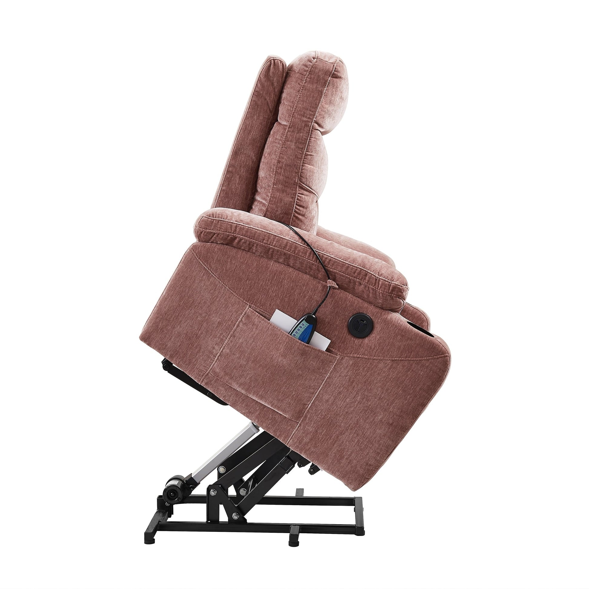 Ce produit est doté de deux poches latérales, de porte-gobelets et d'un port USB. Il est fabriqué dans des tissus haut de gamme. Un mécanisme de levage équilibré, équipé d'un moteur certifié TUV, soulève l'ensemble du fauteuil, permettant aux personnes âgées de se lever facilement sans stresser leur dos ou leurs genoux. Ce produit est doté de vibrations corporelles temporisées et d'un chauffage à la taille qui s'ajuste en douceur à votre position de levage ou d'inclinaison préférée par simple pression de deux boutons.