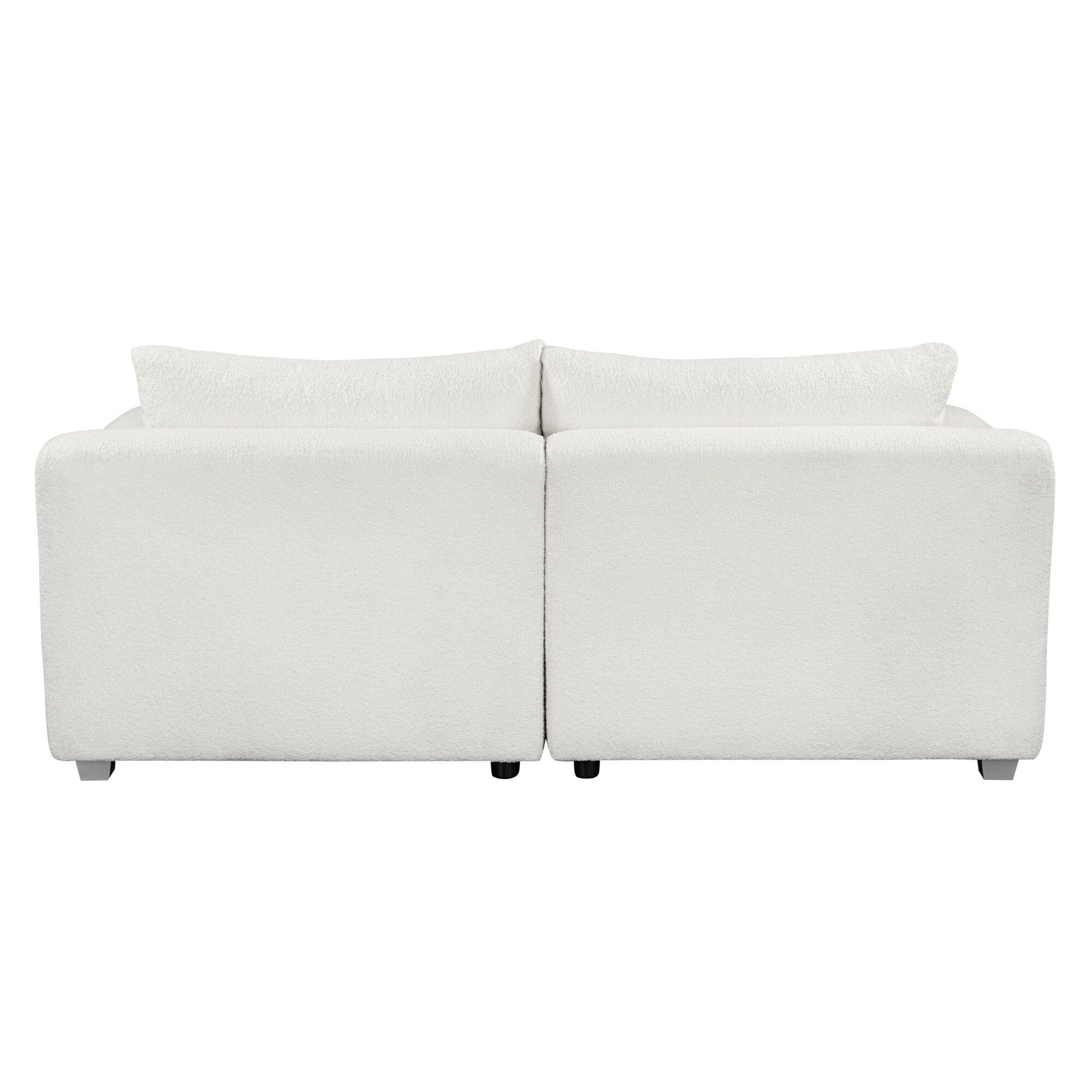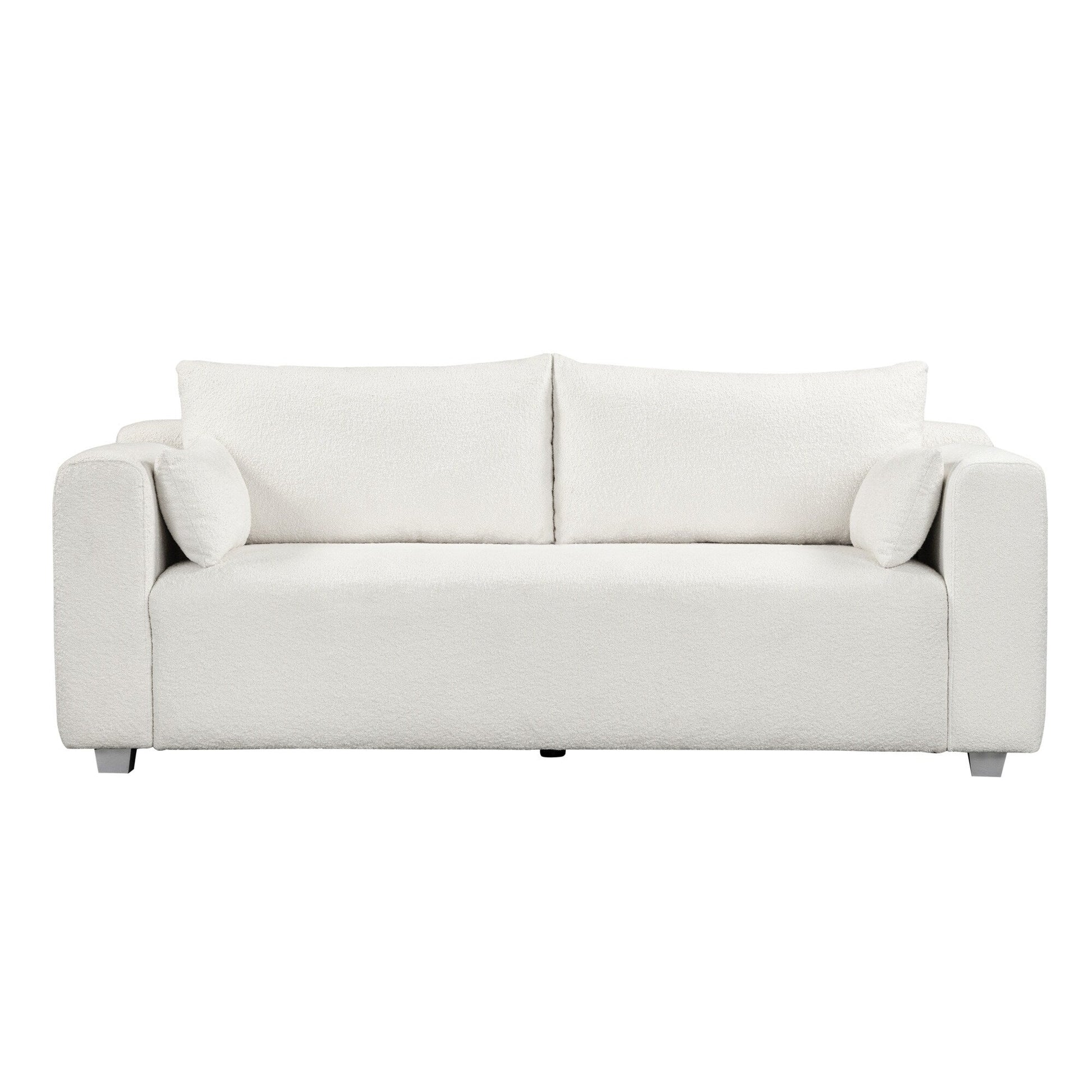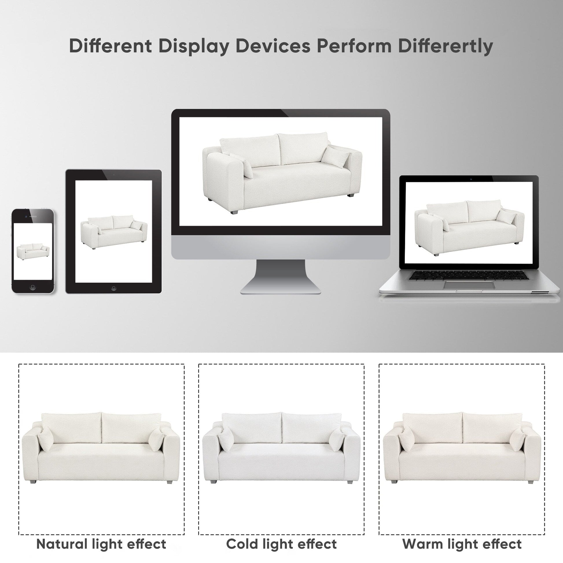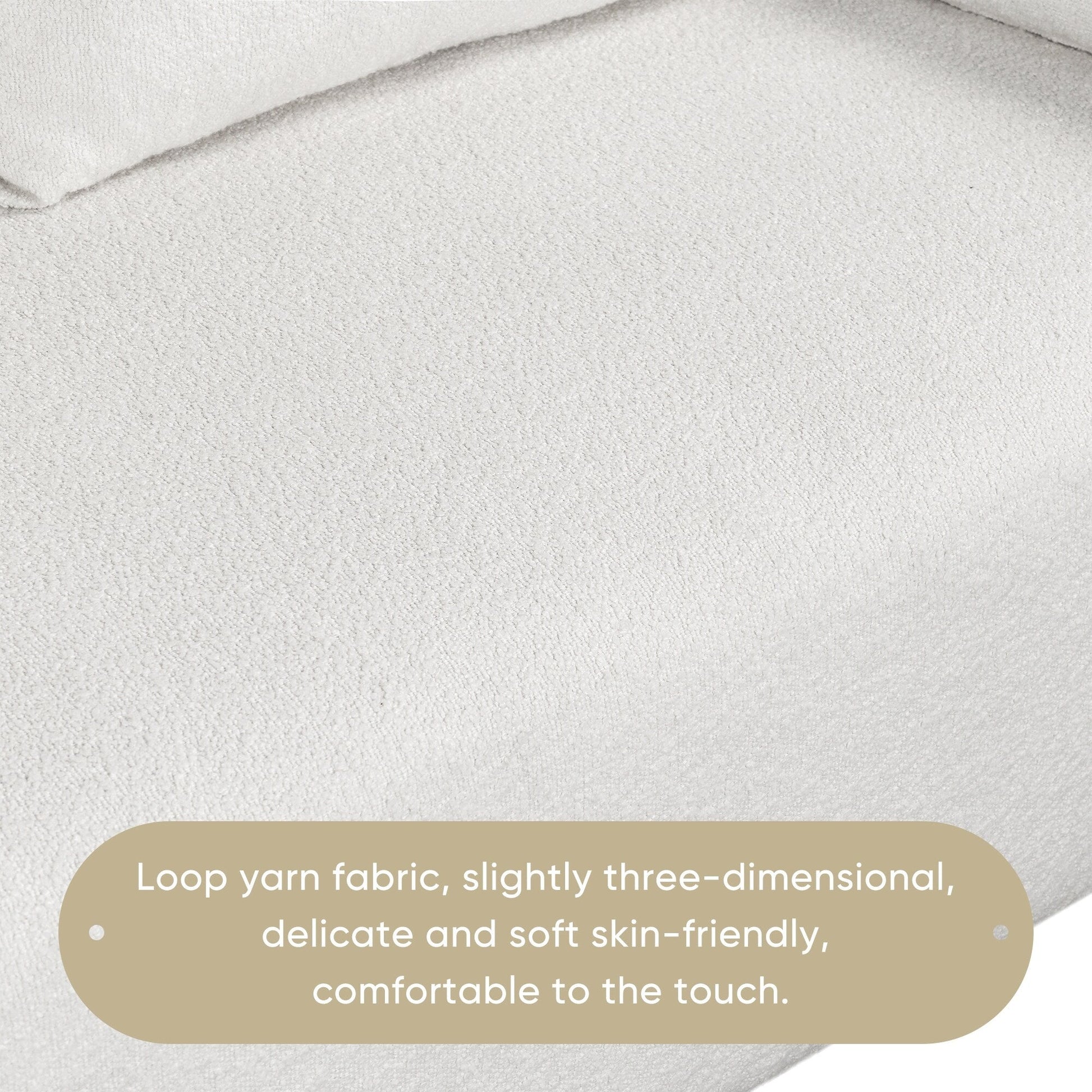 Haute qualité : le canapé est fabriqué en tissu bouclé de haute qualité, respirant et résistant à l'usure. La conception simple de connexion à vis est plus facile à assembler tout en maintenant la stabilité. Le canapé est composé de mousse haute densité et de ressorts ensachés, qui offrent un soutien plus solide.