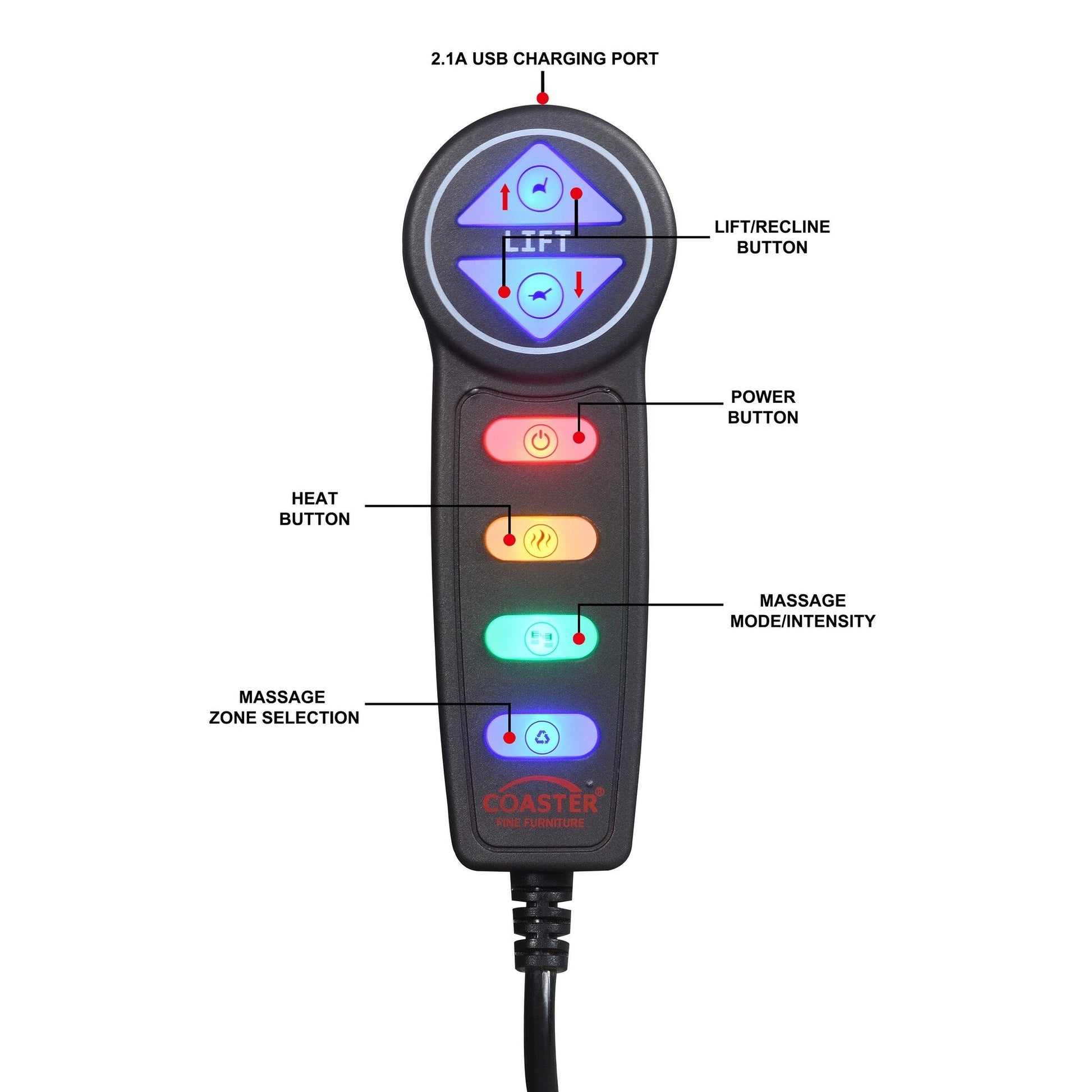 - La télécommande filaire dispose d'un port de chargement USB intégré et peut être positionnée sur le côté gauche ou droit