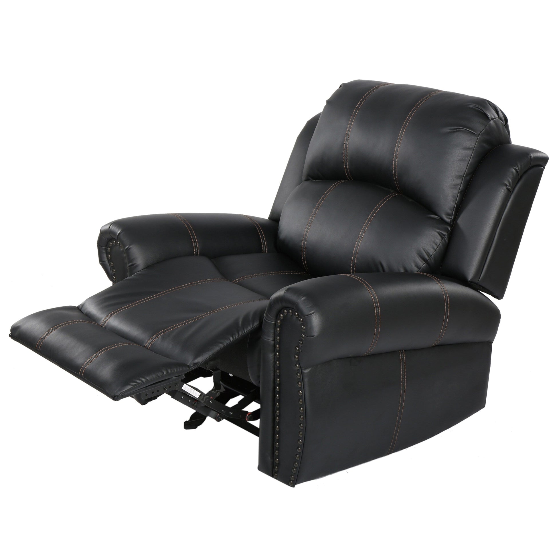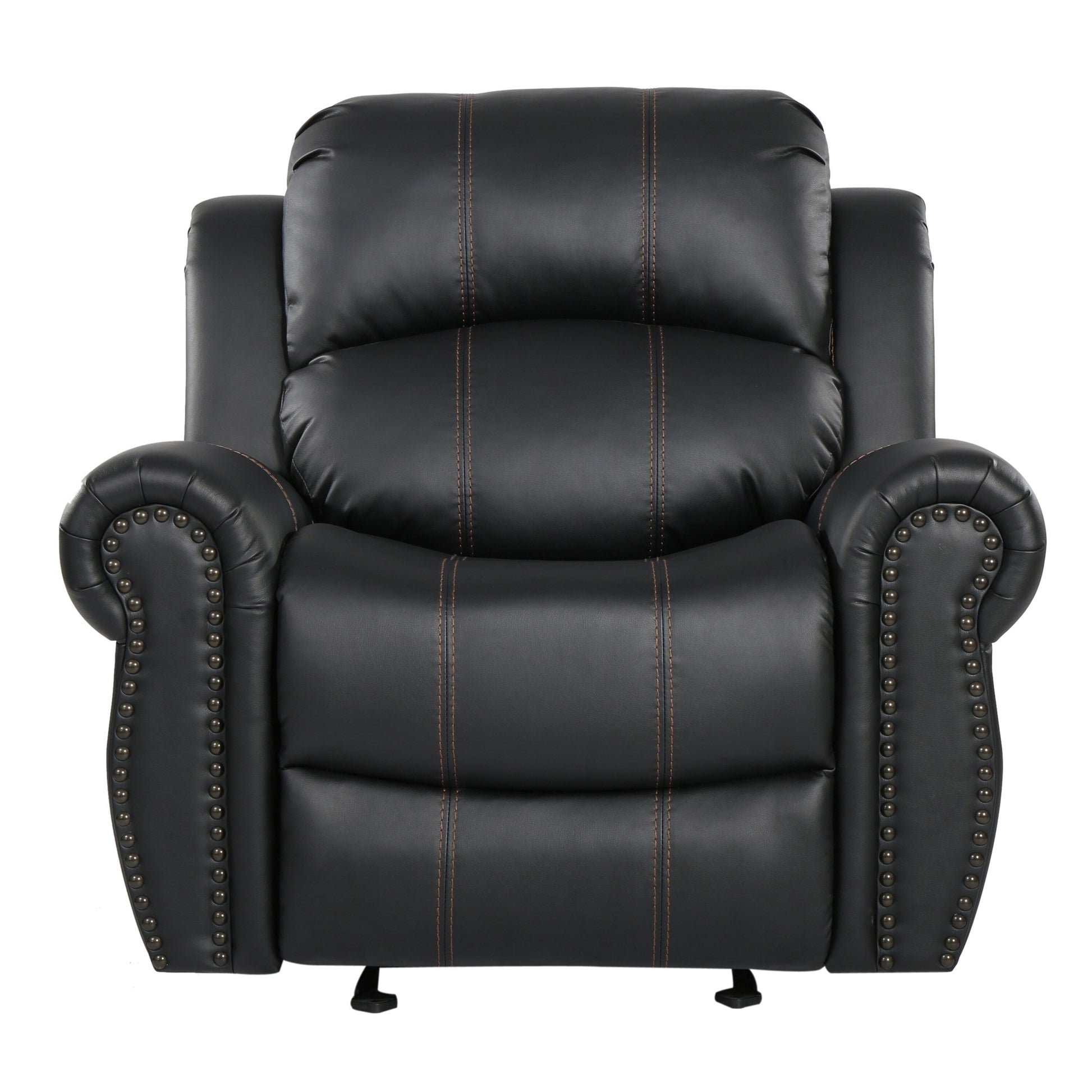 Fauteuil inclinable manuel avec revêtement en similicuir - Accoudoirs roulés, garniture cloutée, dossier inclinable