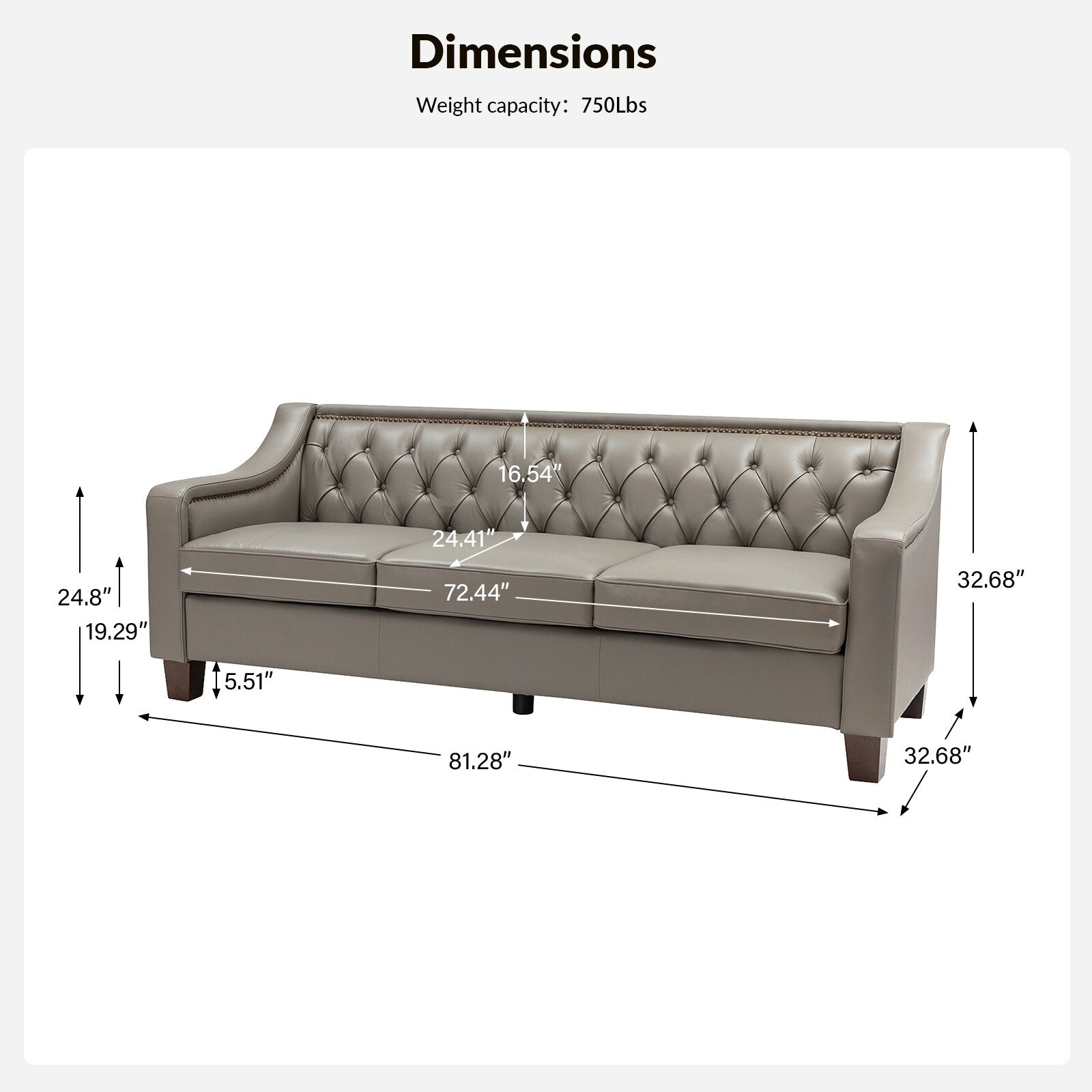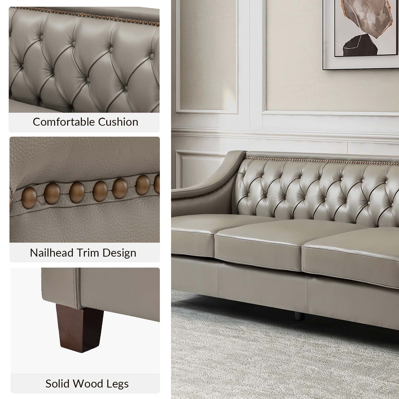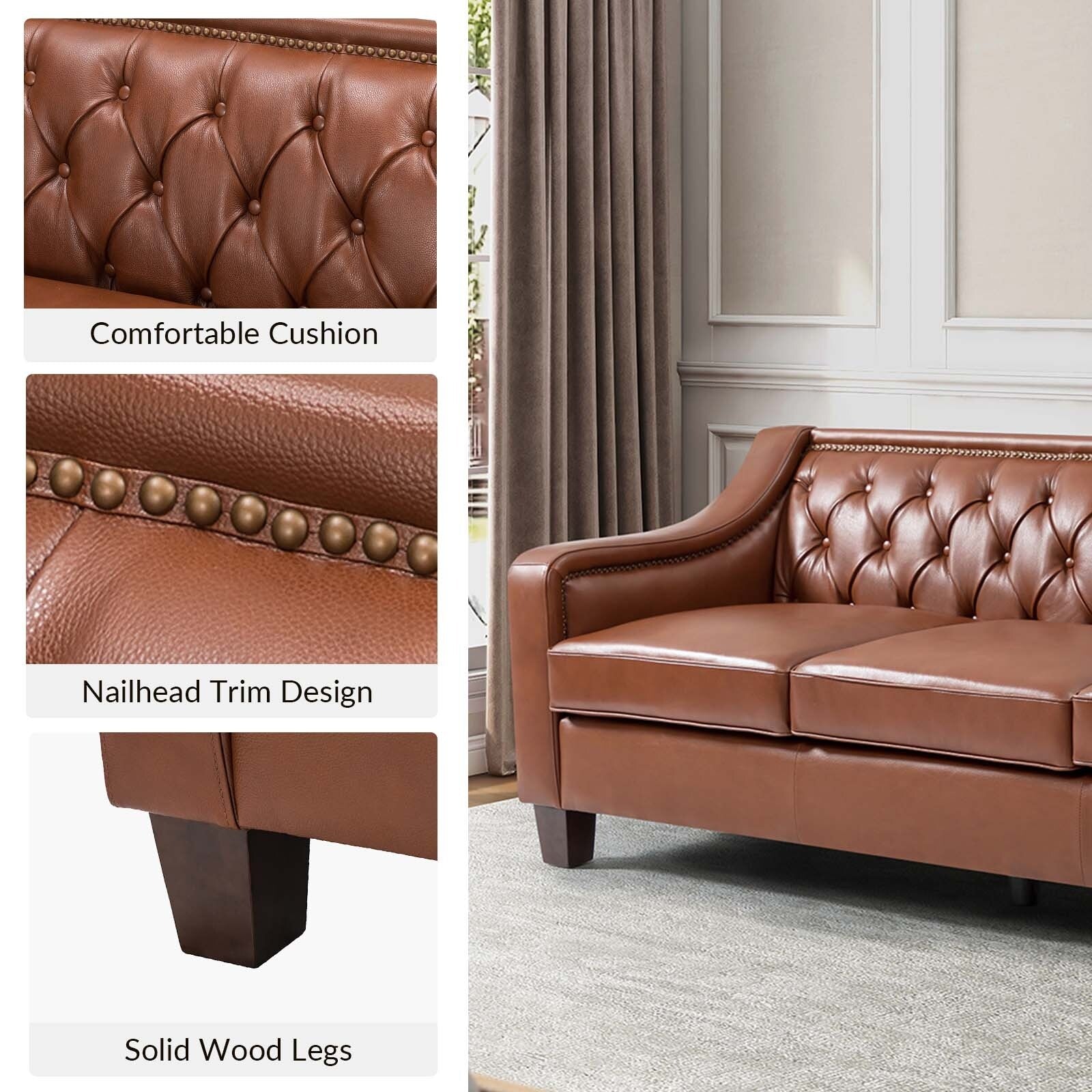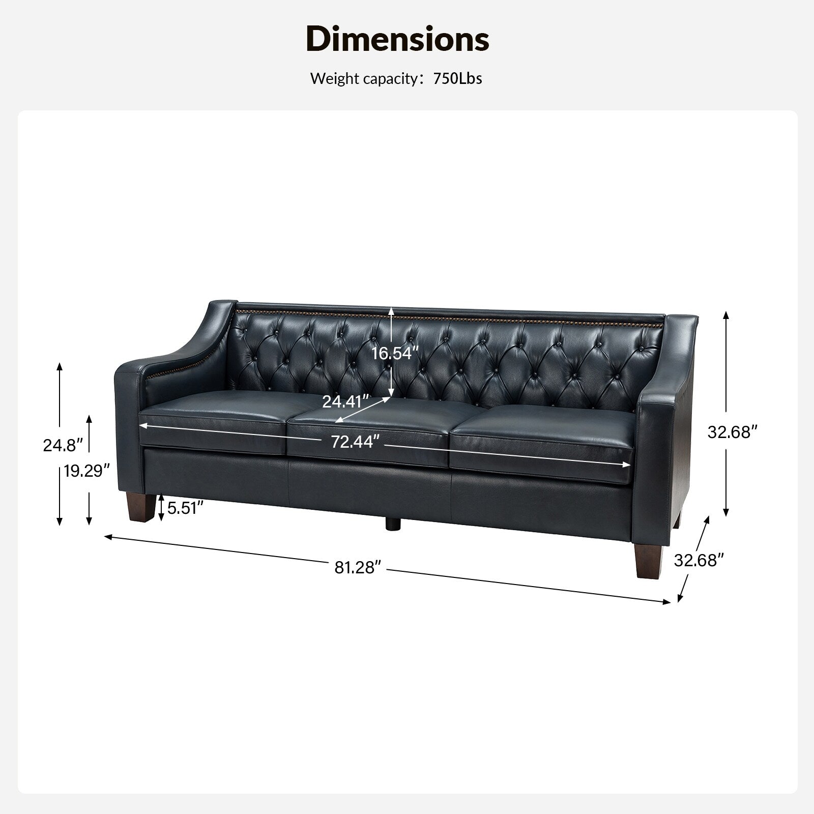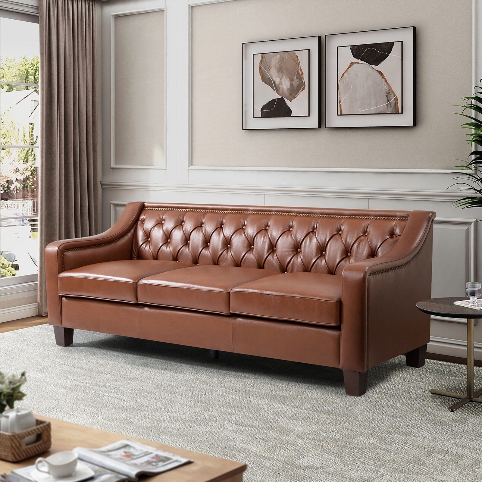 Canapé transitionnel en cuir véritable Mateo 82,28 pouces avec garniture cloutée et dossier capitonné