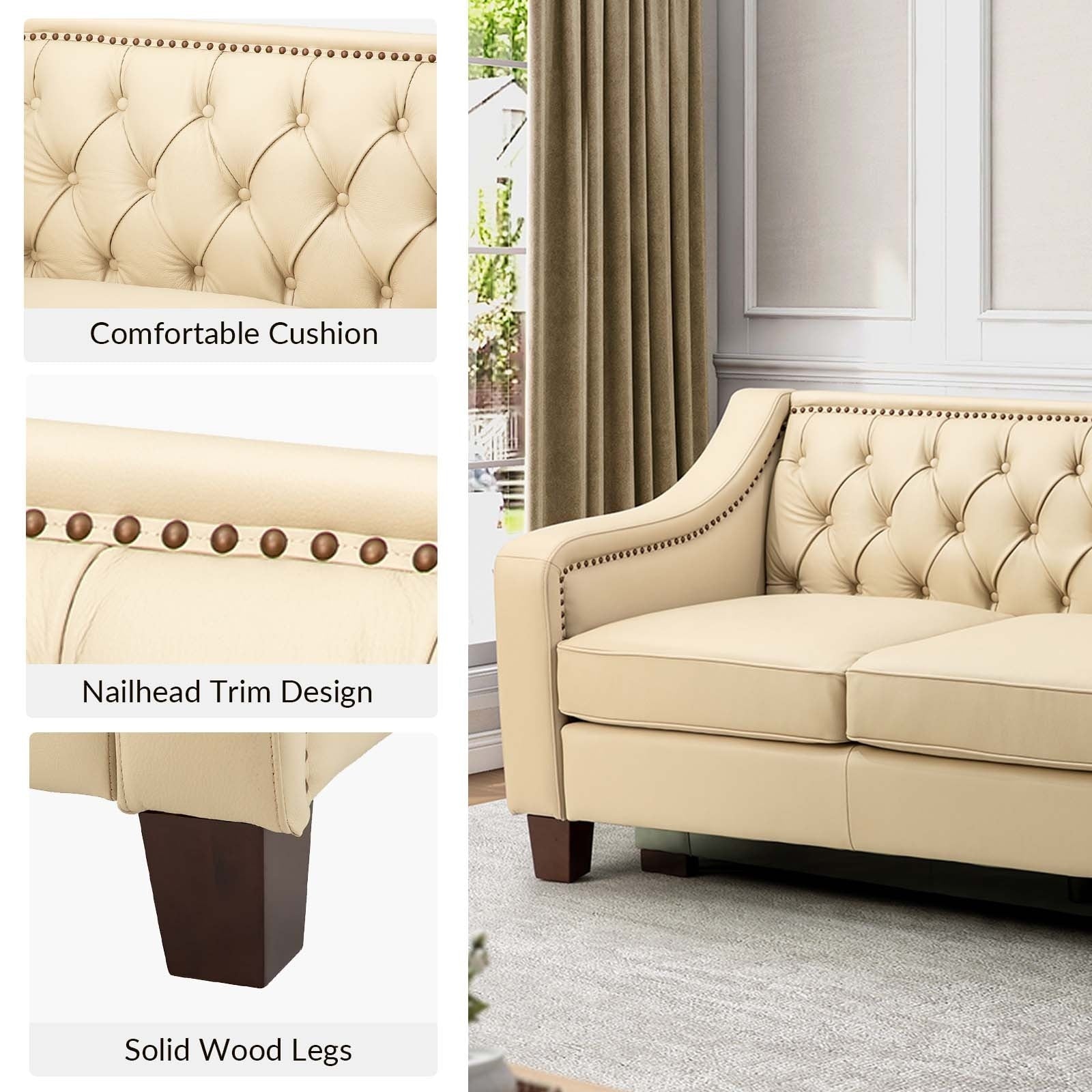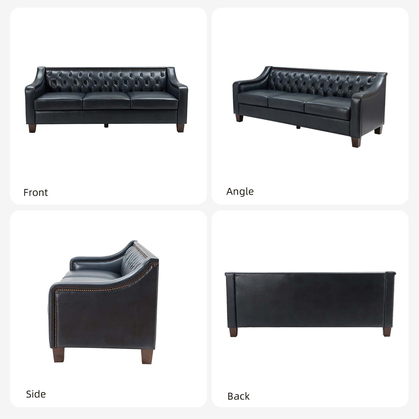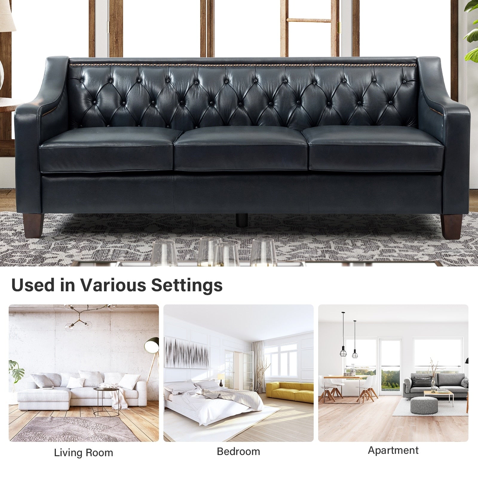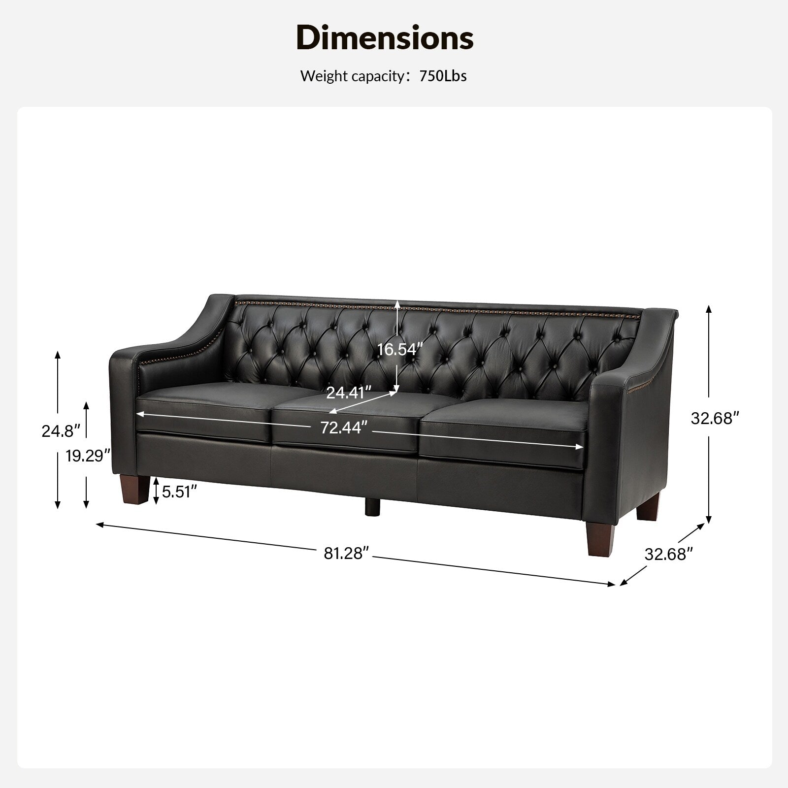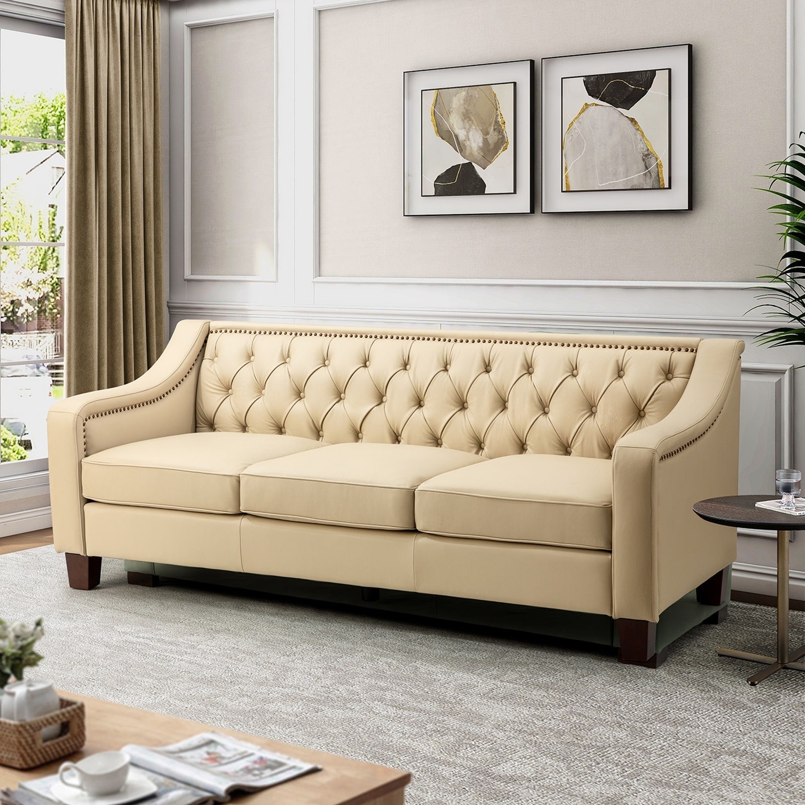 Canapé transitionnel en cuir véritable Mateo 82,28 pouces avec garniture cloutée et dossier capitonné