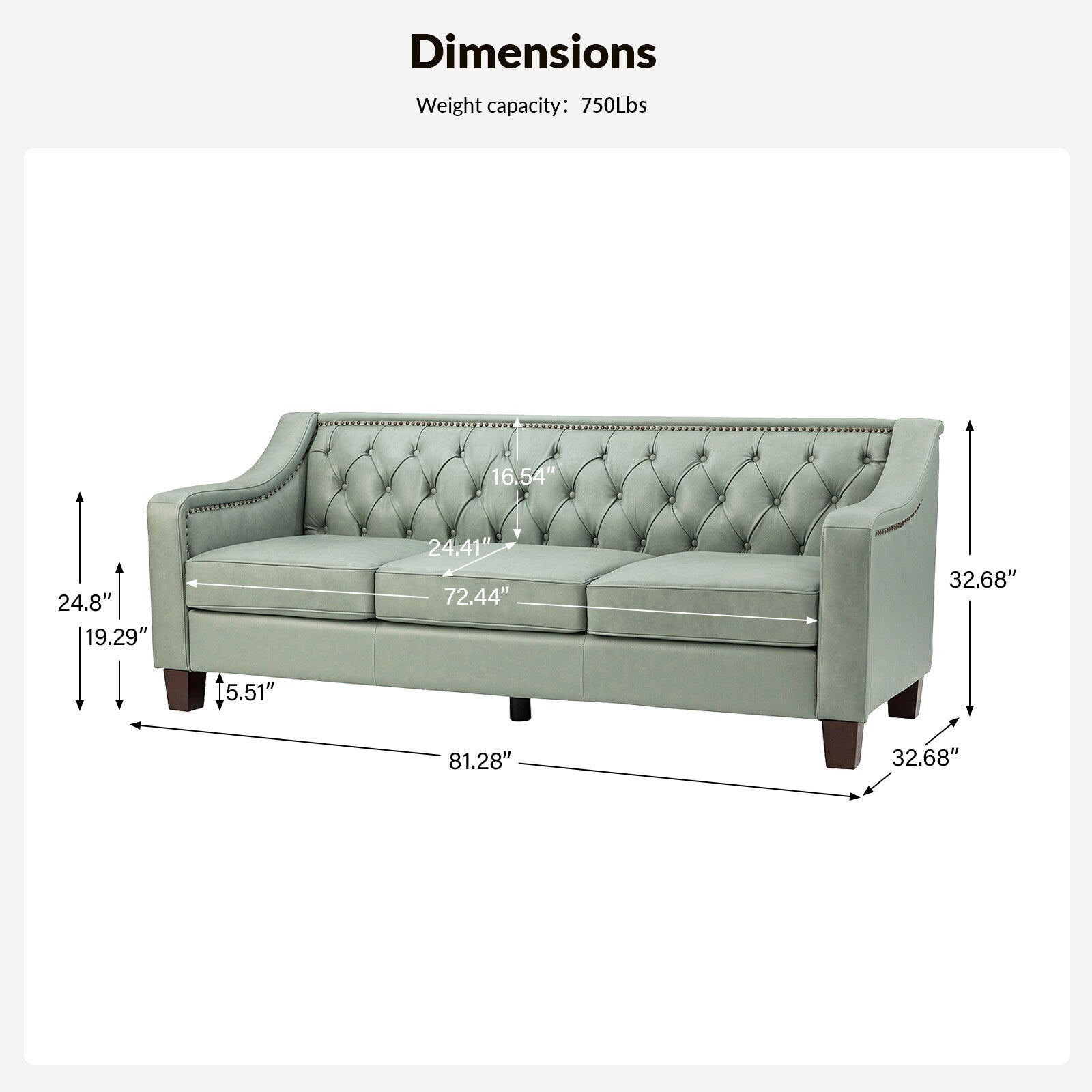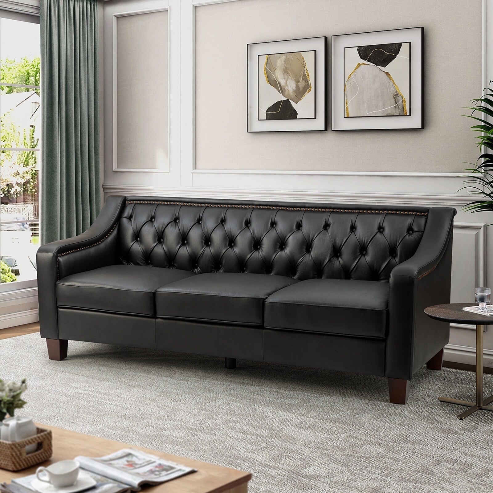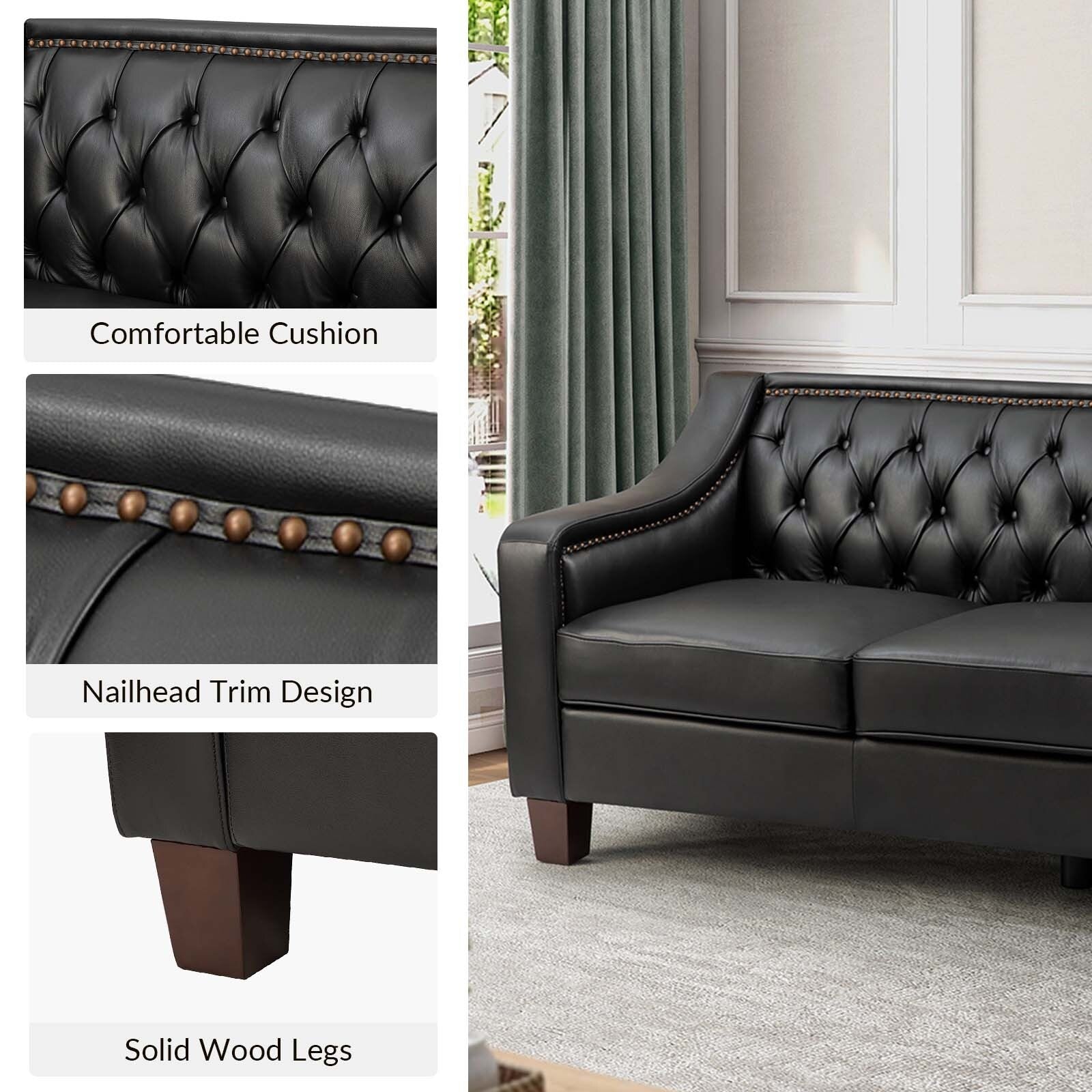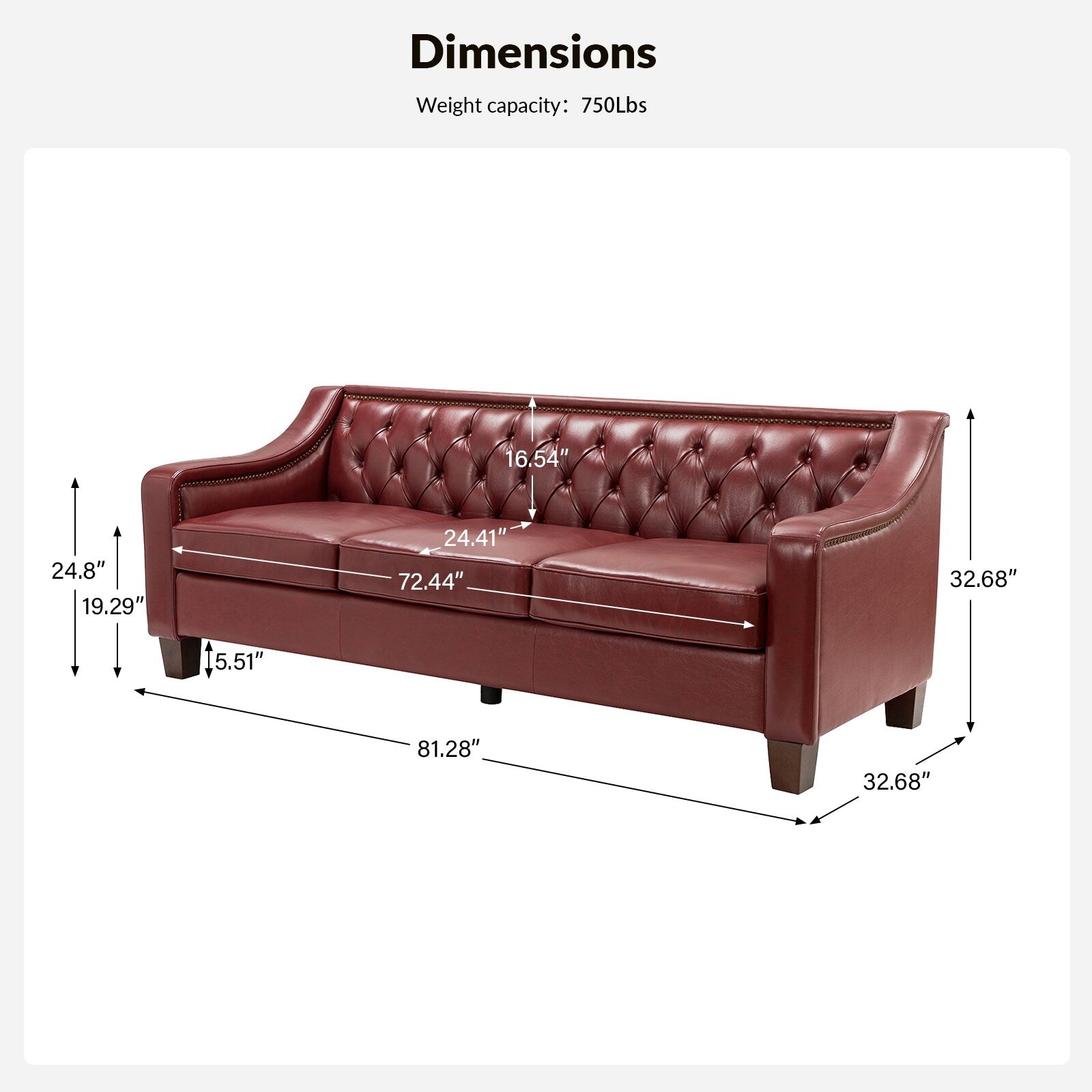 Canapé transitionnel en cuir véritable Mateo 82,28 pouces avec garniture cloutée et dossier capitonné