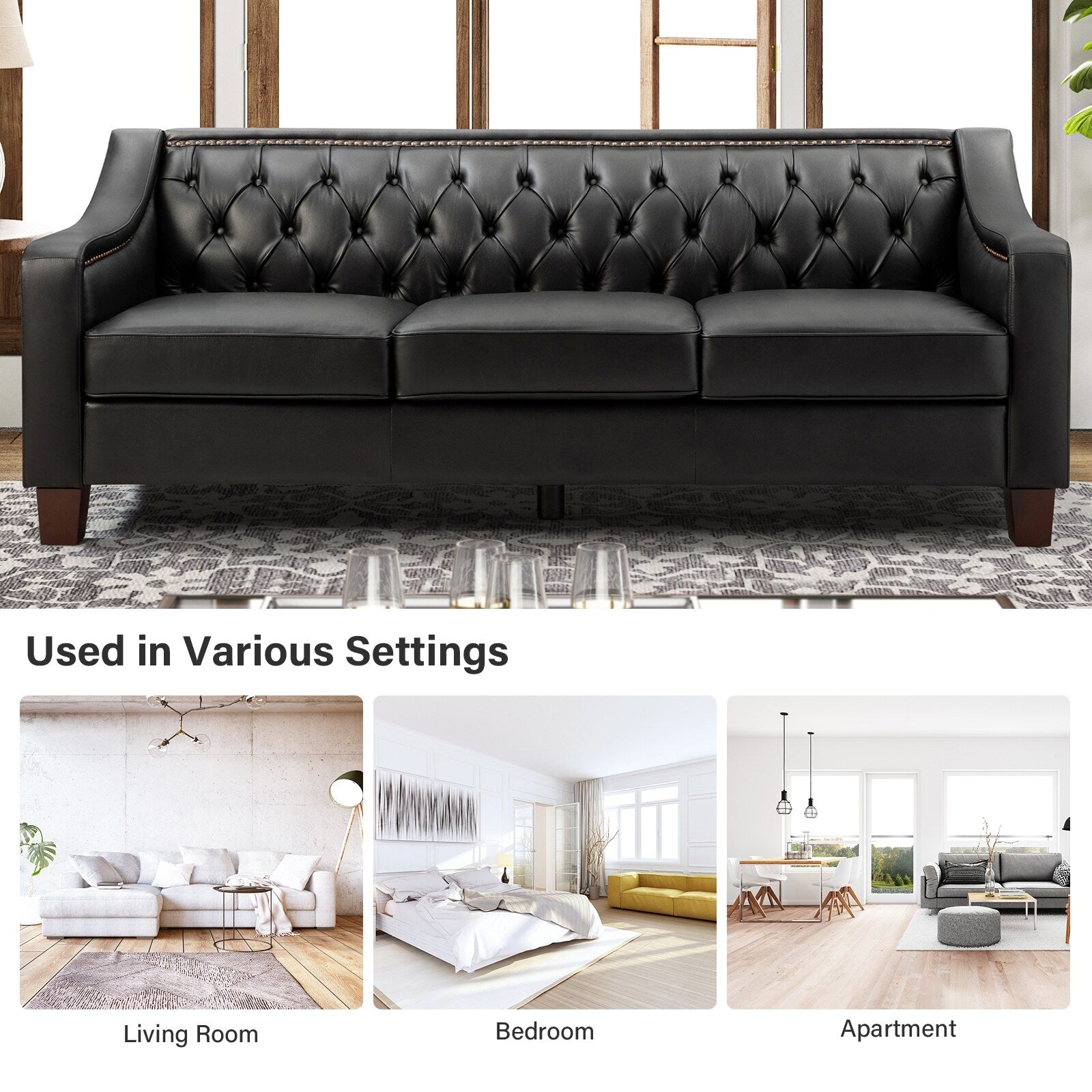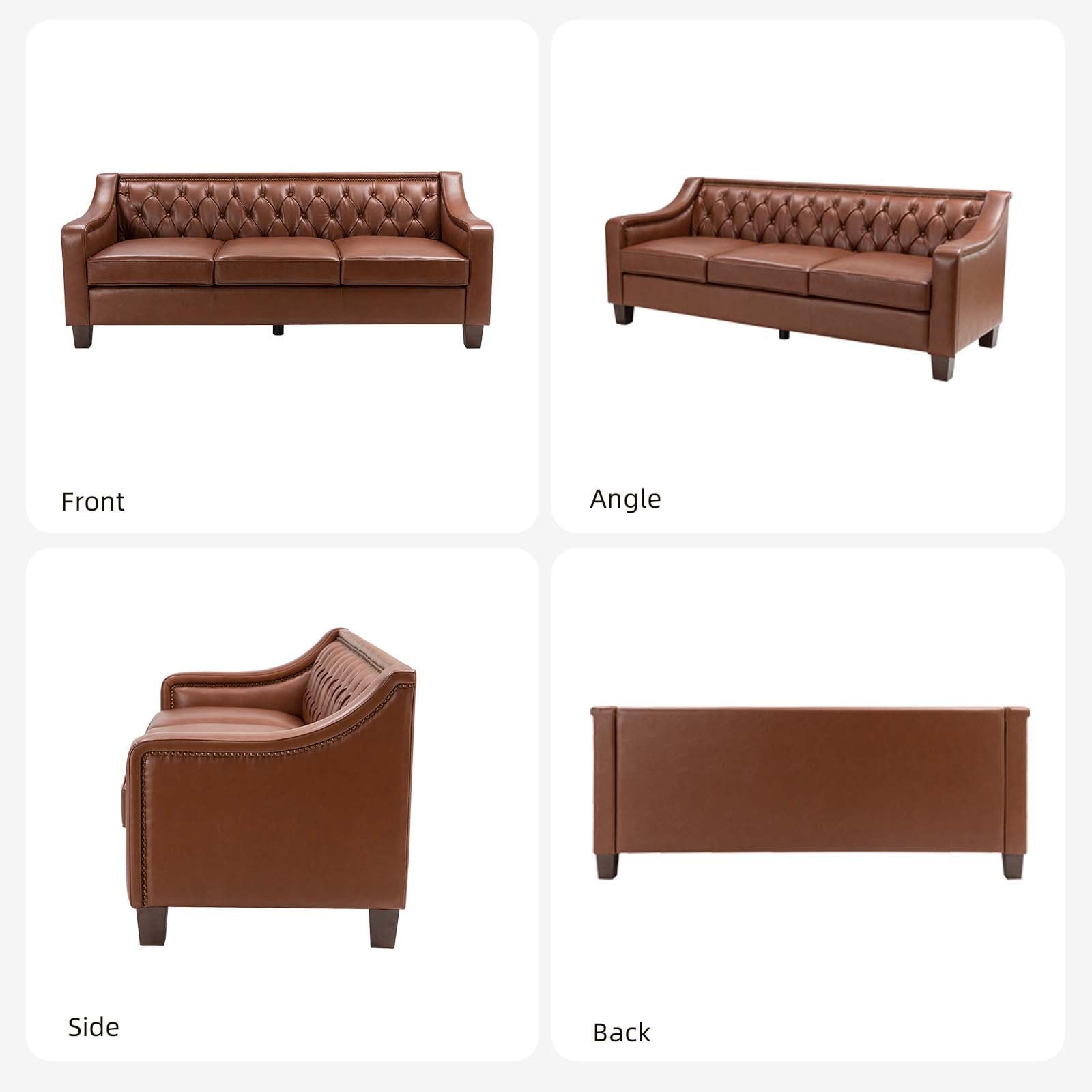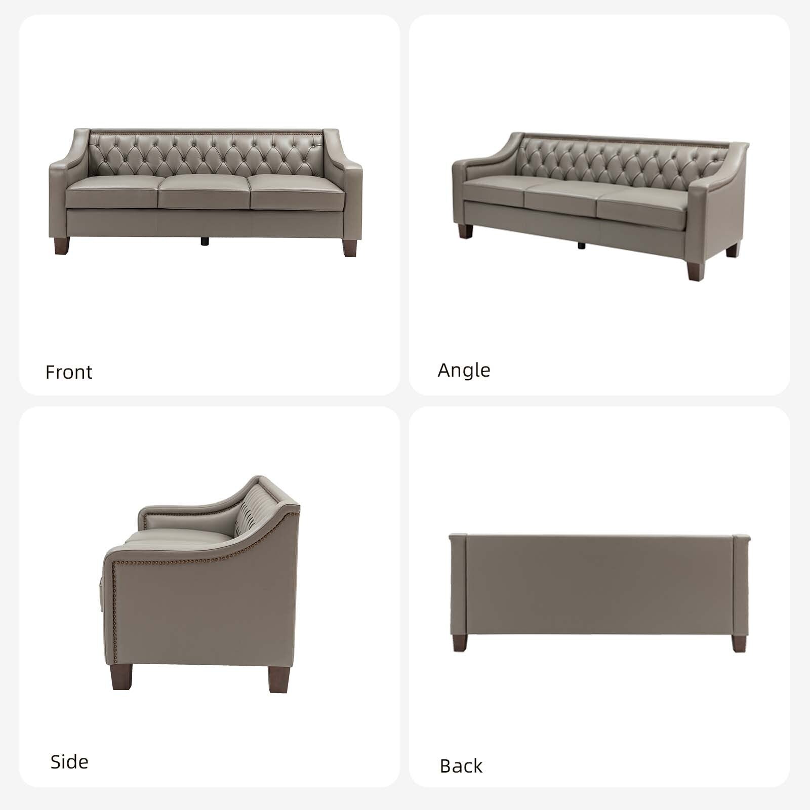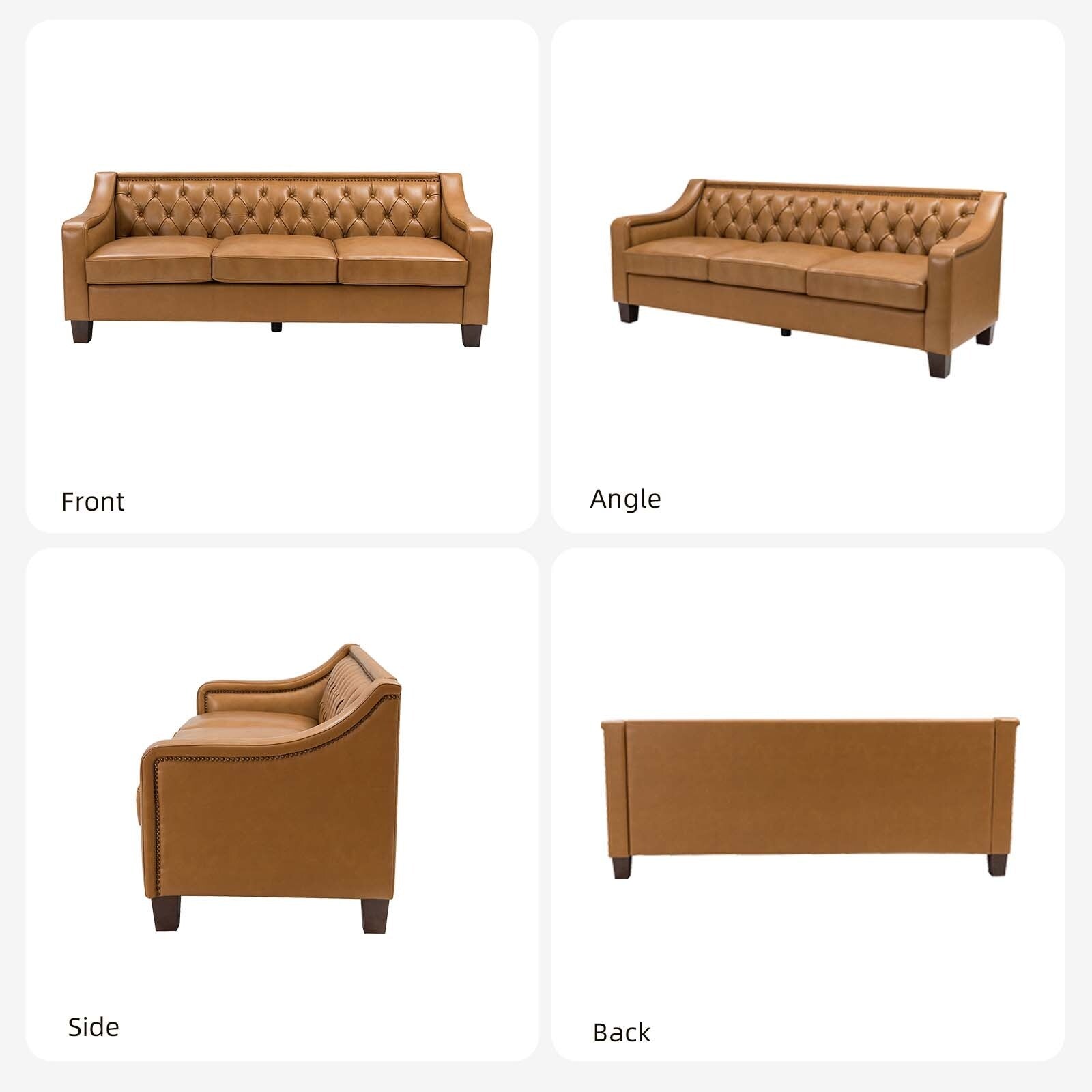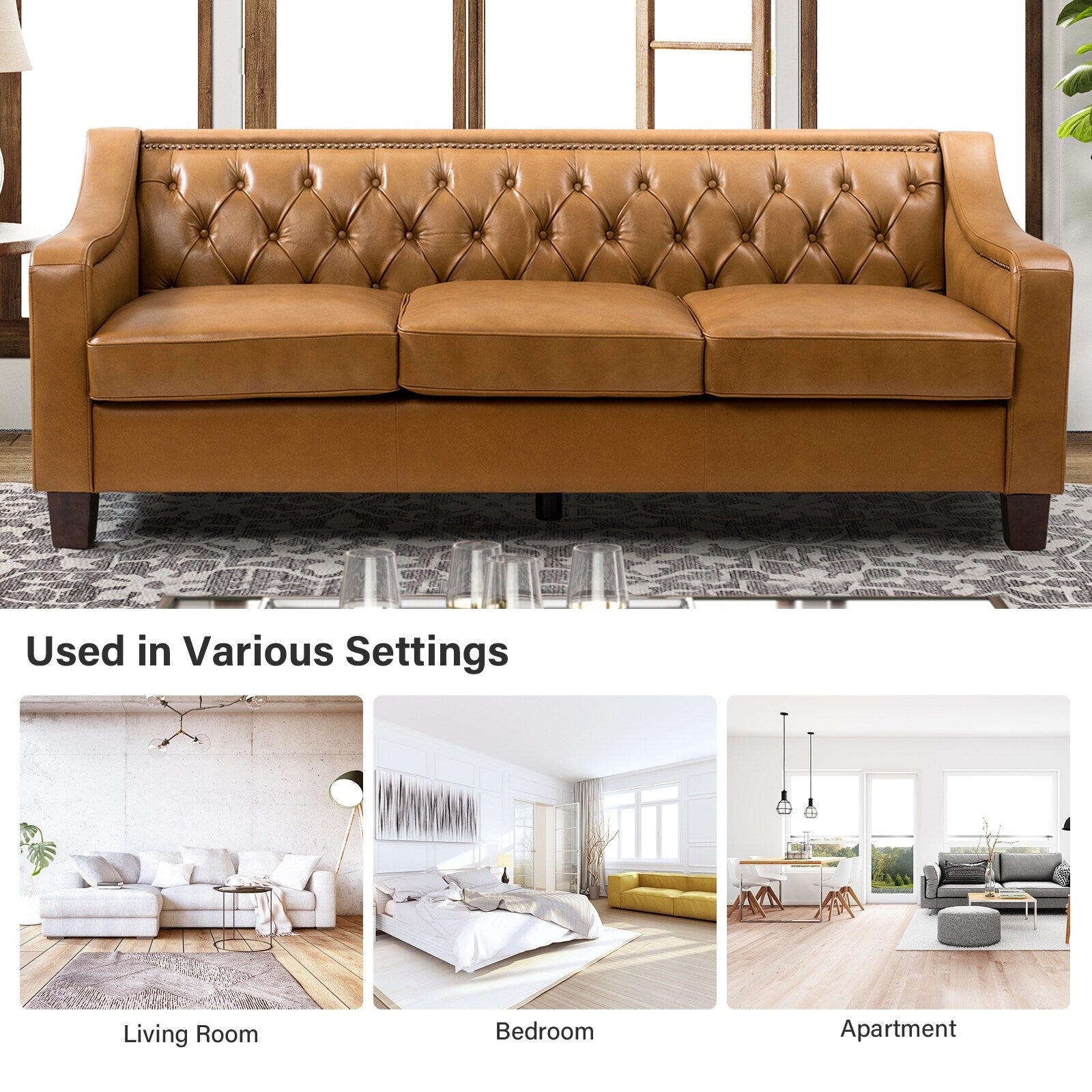 Canapé transitionnel en cuir véritable Mateo 82,28 pouces avec garniture cloutée et dossier capitonné