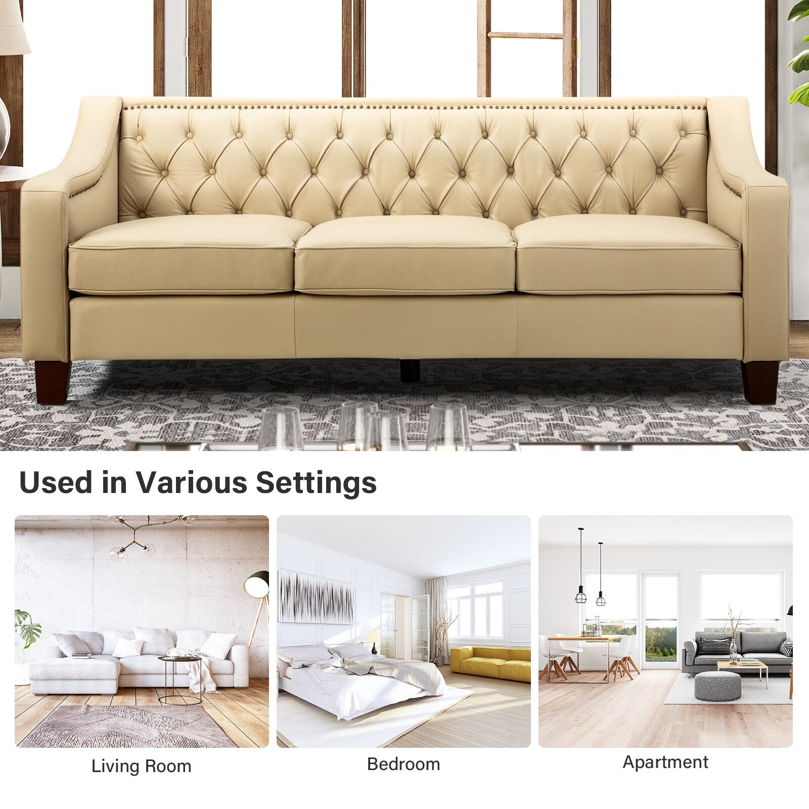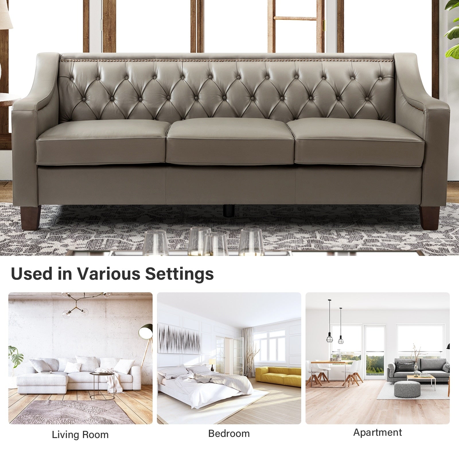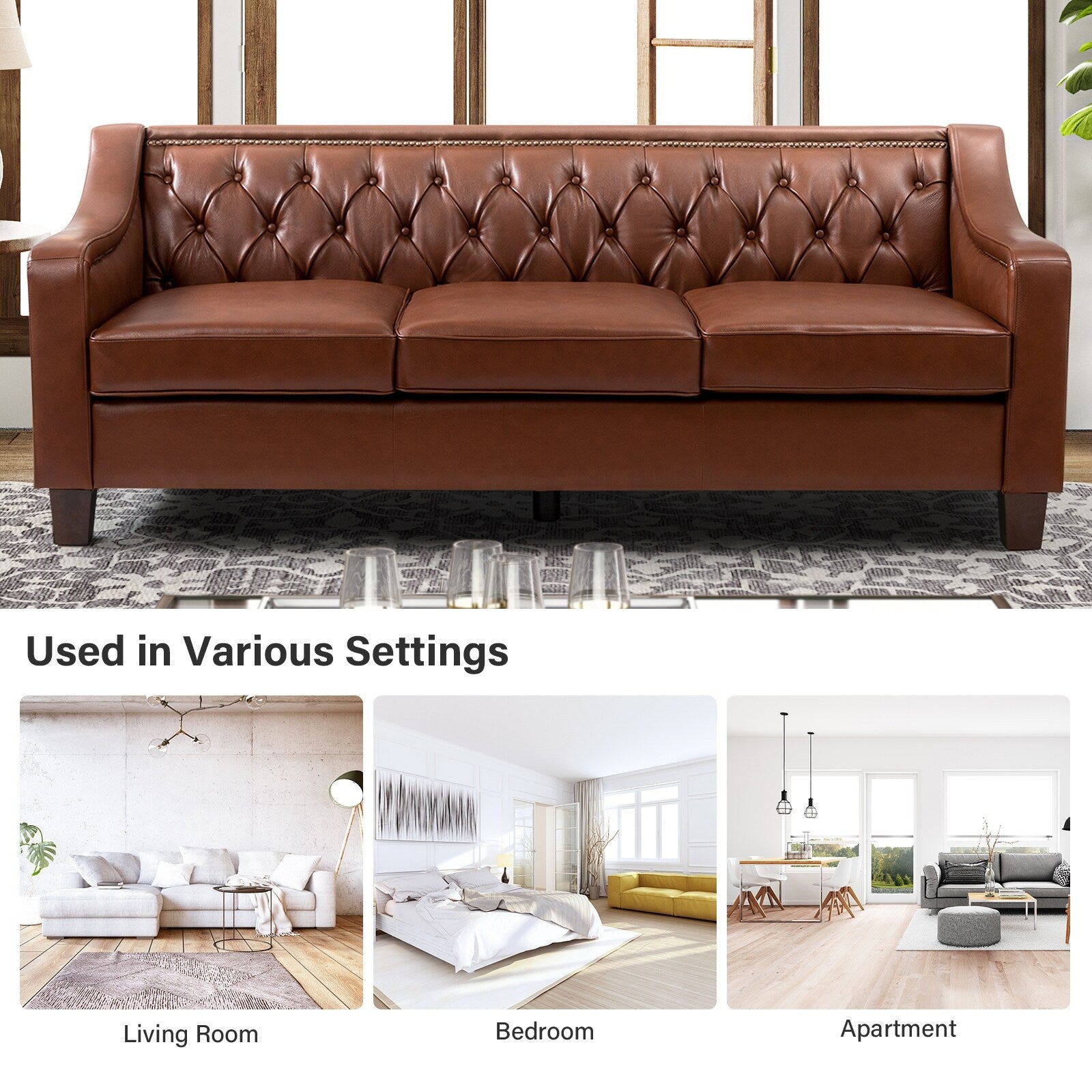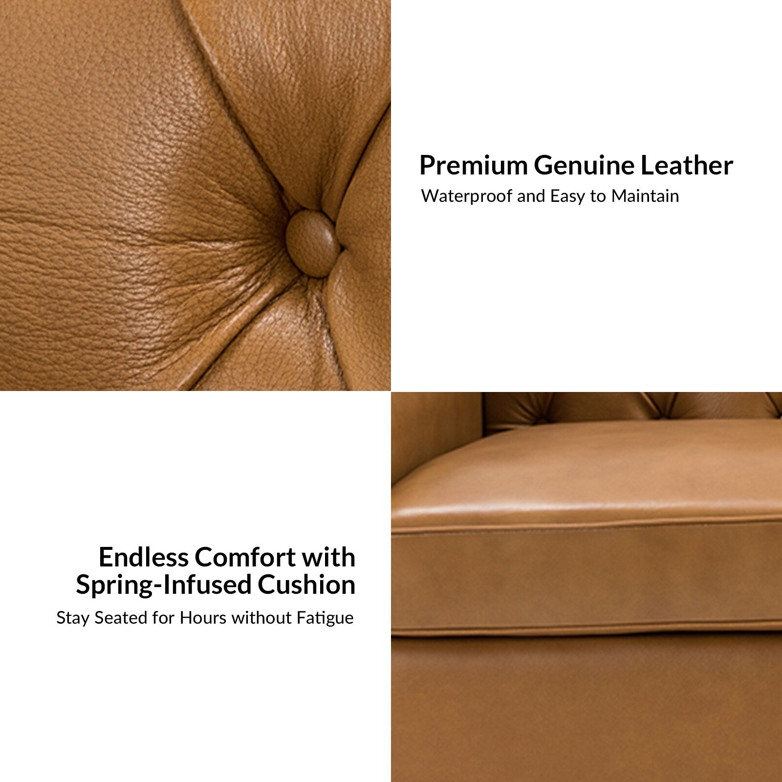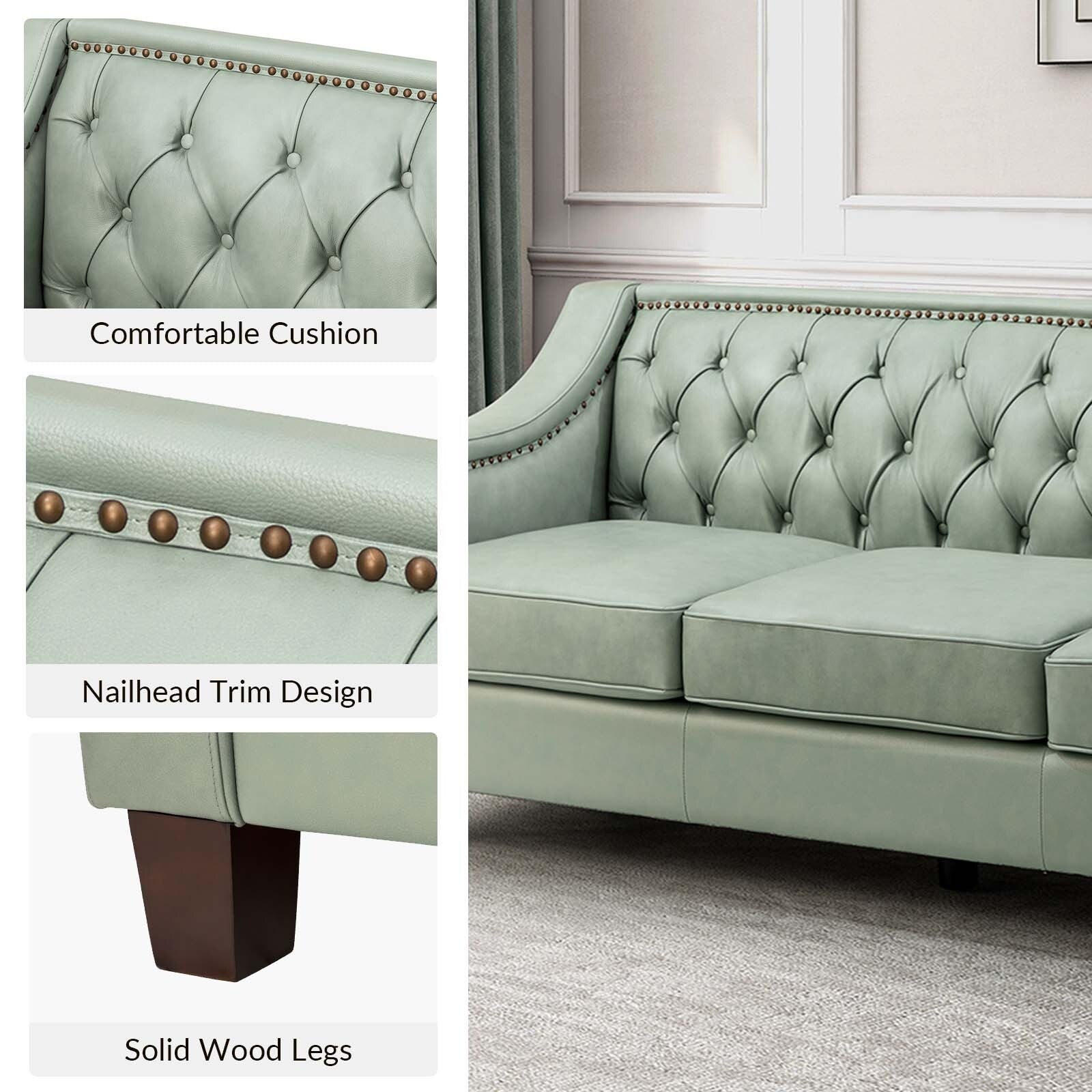 Canapé transitionnel en cuir véritable Mateo 82,28 pouces avec garniture cloutée et dossier capitonné
