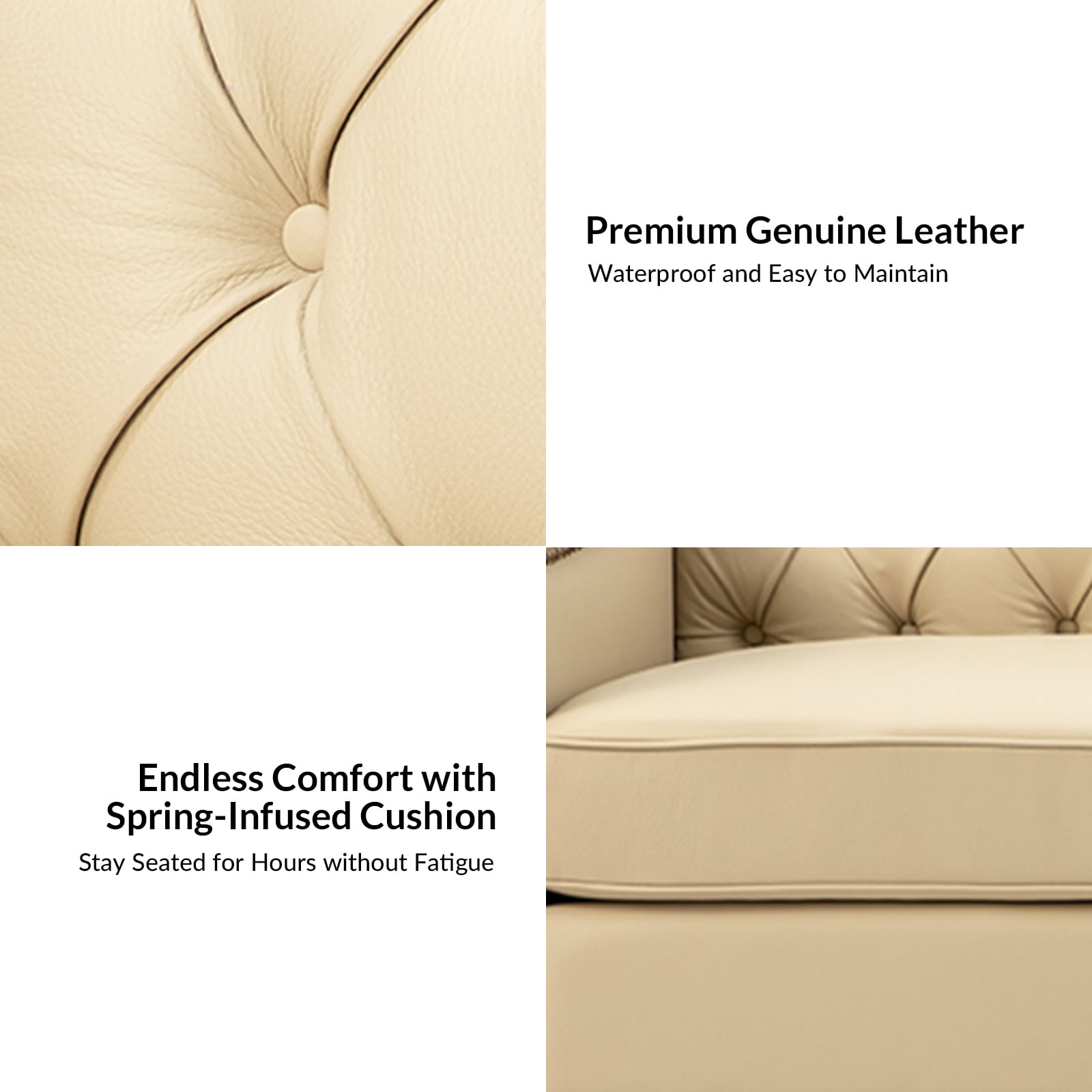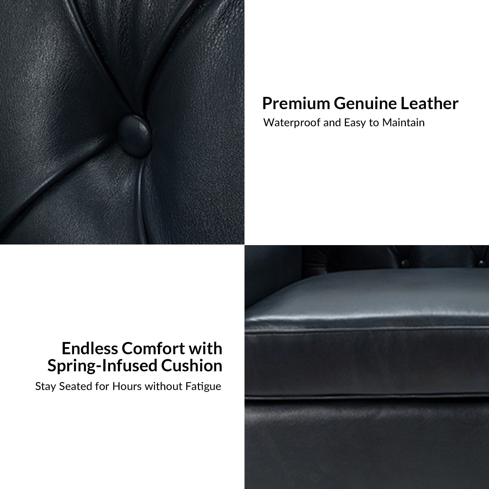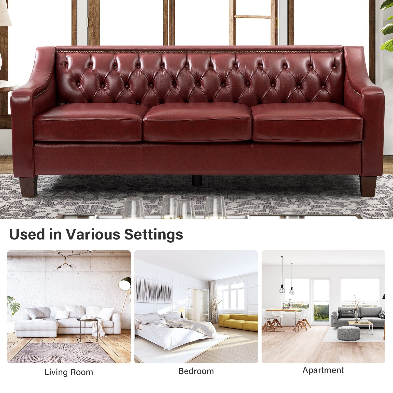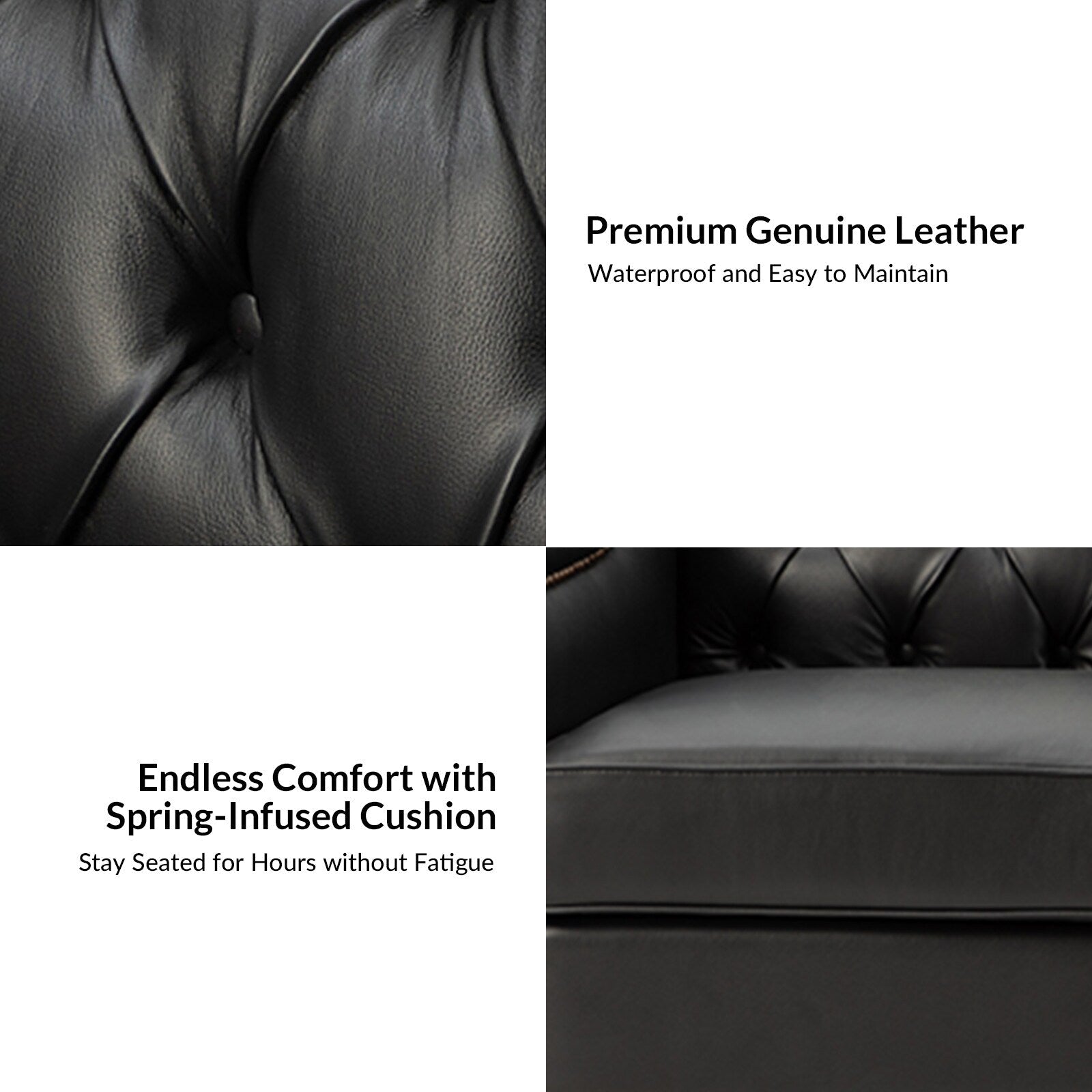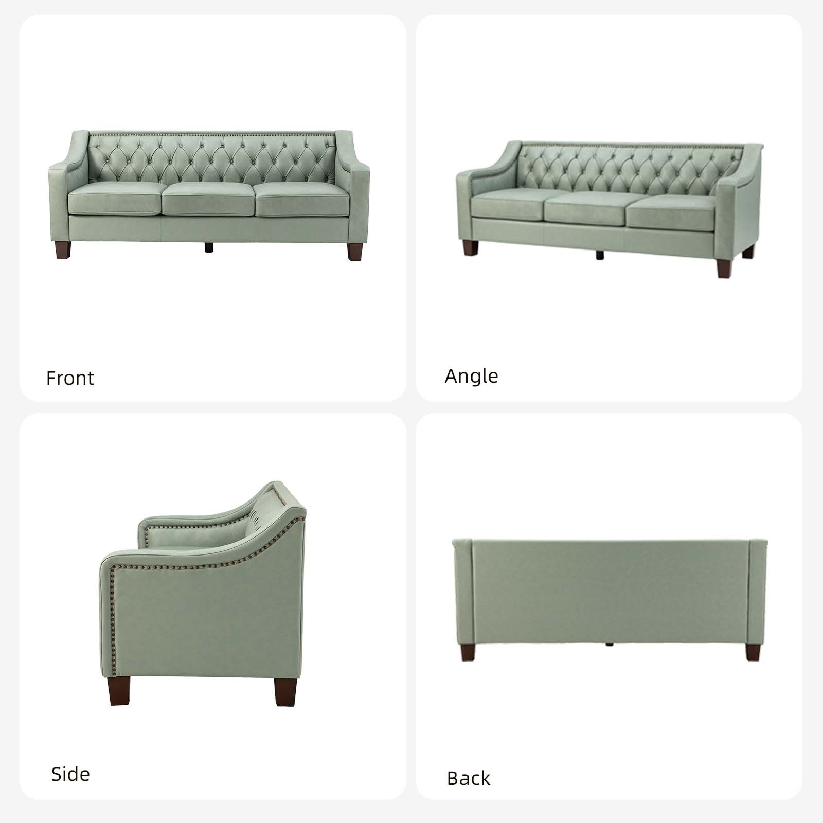 Canapé transitionnel en cuir véritable Mateo 82,28 pouces avec garniture cloutée et dossier capitonné