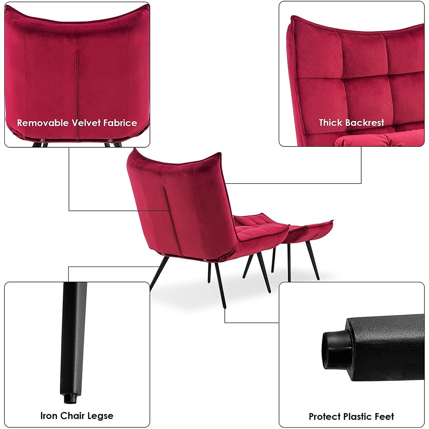 - 【Service client irréprochable】- Les tissus aux couleurs classiques et les pieds en fer noir confèrent à votre intérieur un style moderne du milieu du siècle. Nous sommes convaincus que la qualité de cette chaise avec repose-pieds vous offrira une expérience d'achat satisfaisante. Pour toute question concernant ce produit, n'hésitez pas à nous contacter afin que nous puissions vous aider au plus vite.
