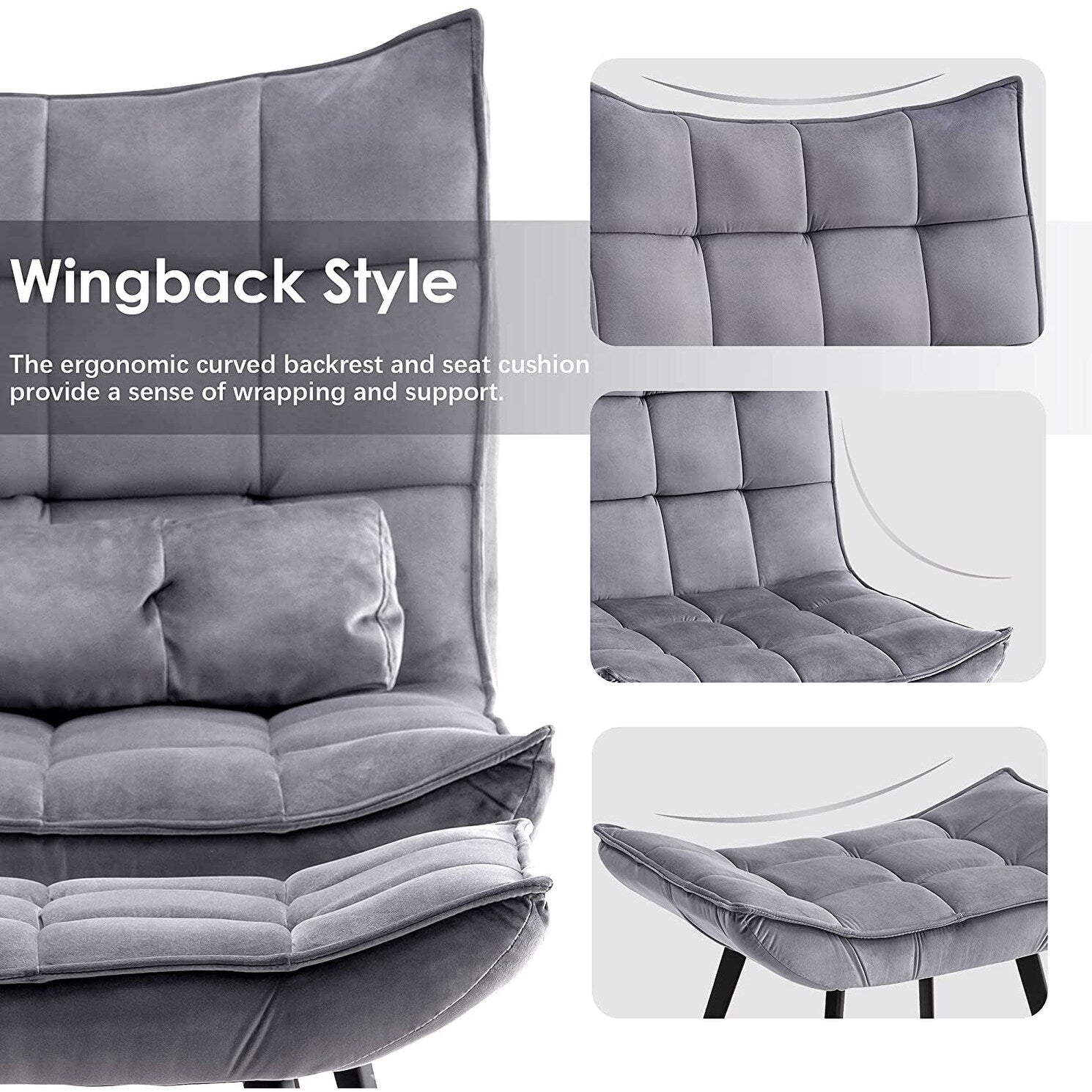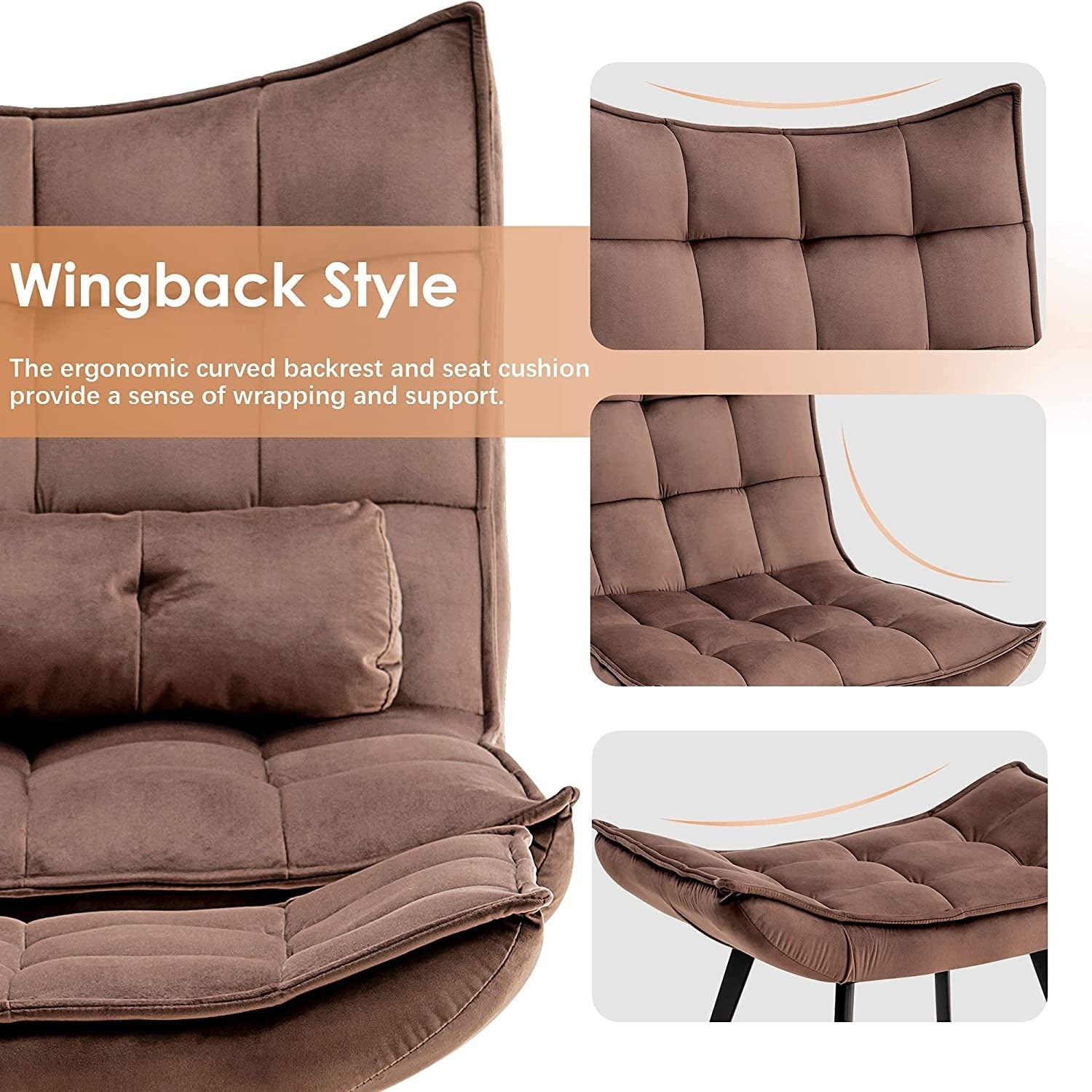 Fauteuil d'appoint Mcombo avec pouf, fauteuil à oreilles capitonné en velours, chaises rembourrées avec pieds en métal pour chambre à coucher et salon 4079