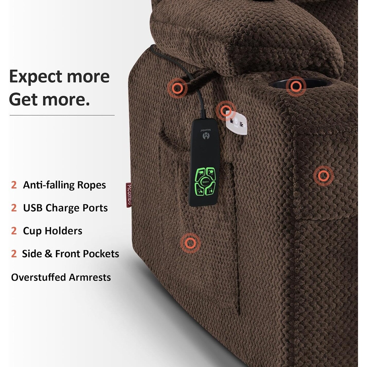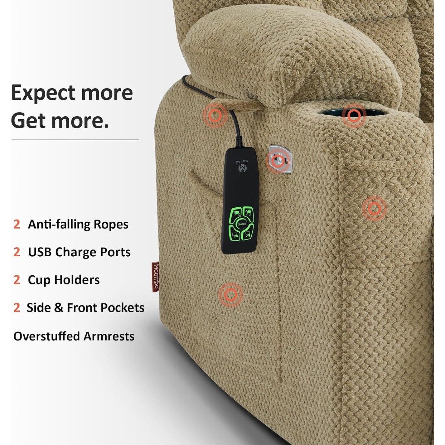 Fauteuil inclinable électrique à double moteur MCombo avec massage et chauffage pour personnes de grande taille, tissu R7891 (grand/large)