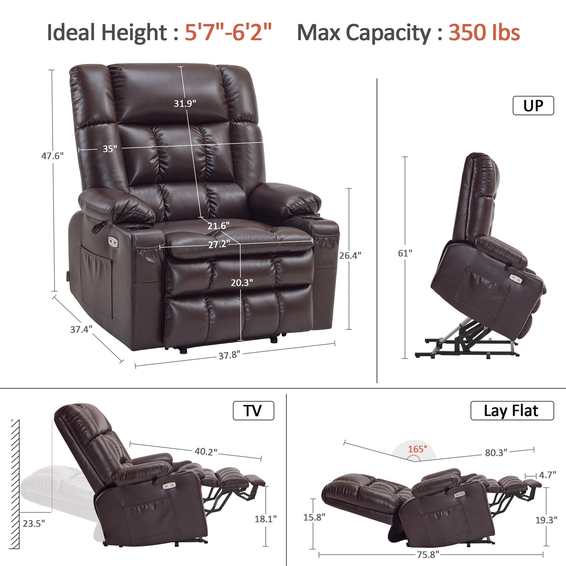 - DOUBLE MOTEUR : Grâce au double moteur intégré, le dossier et le repose-pieds de la chaise fonctionnent indépendamment, ce qui signifie que vous pouvez vous ajuster à la position infinie que vous souhaitez, soulever, regarder la télévision et vous allonger à plat (angle d'inclinaison maximal : 165°) ?