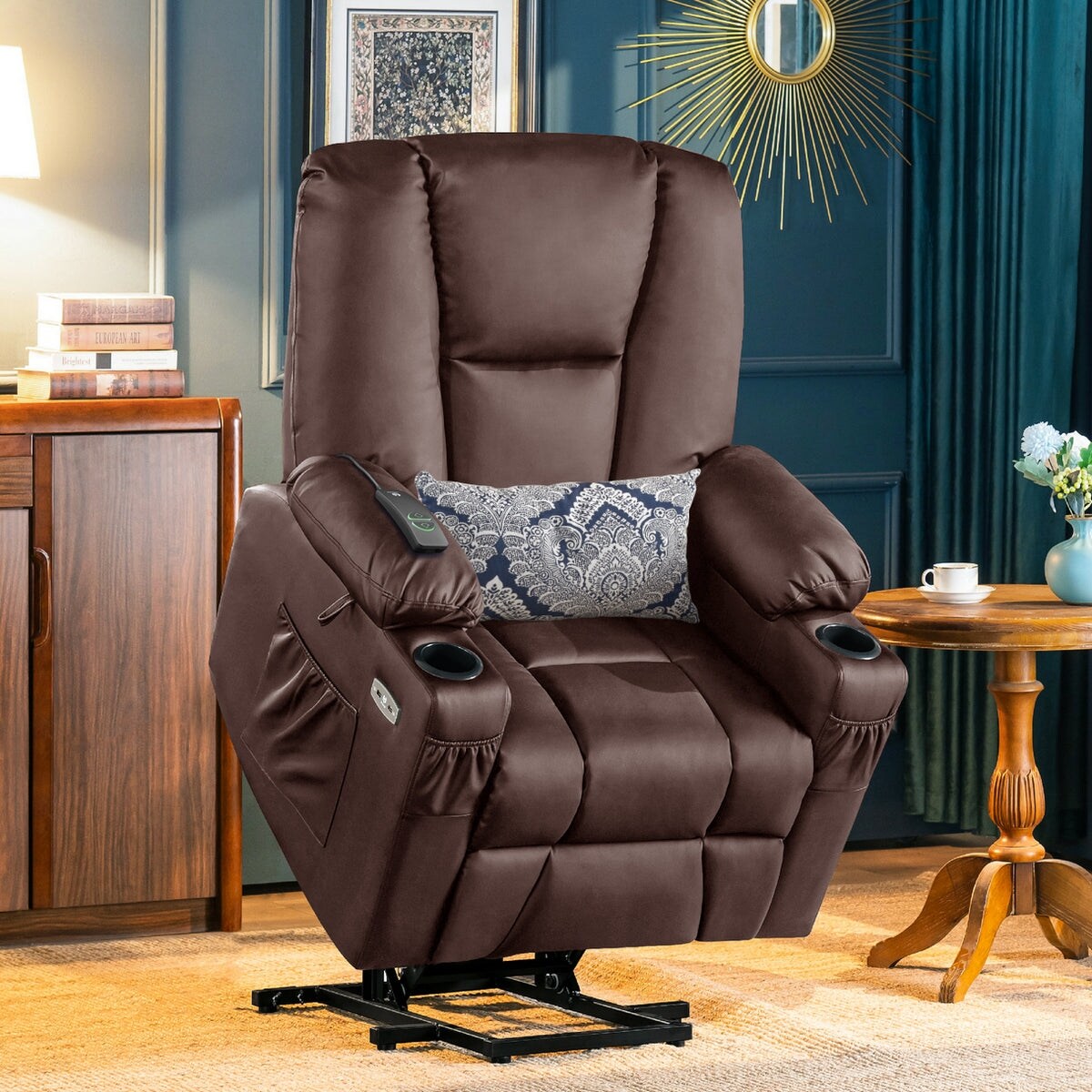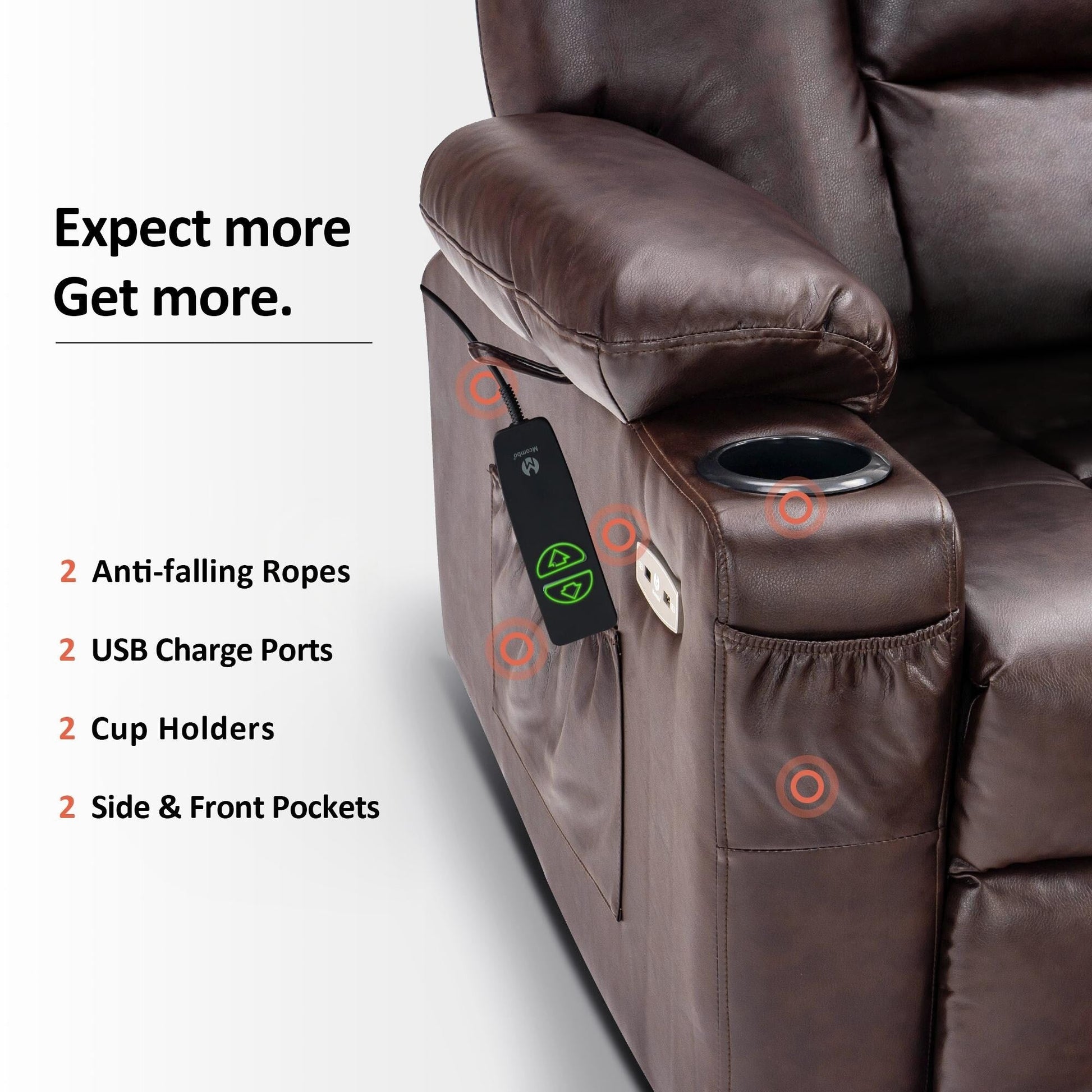 Fauteuil inclinable électrique MCombo avec repose-pieds allongé, porte-gobelets et similicuir 7507