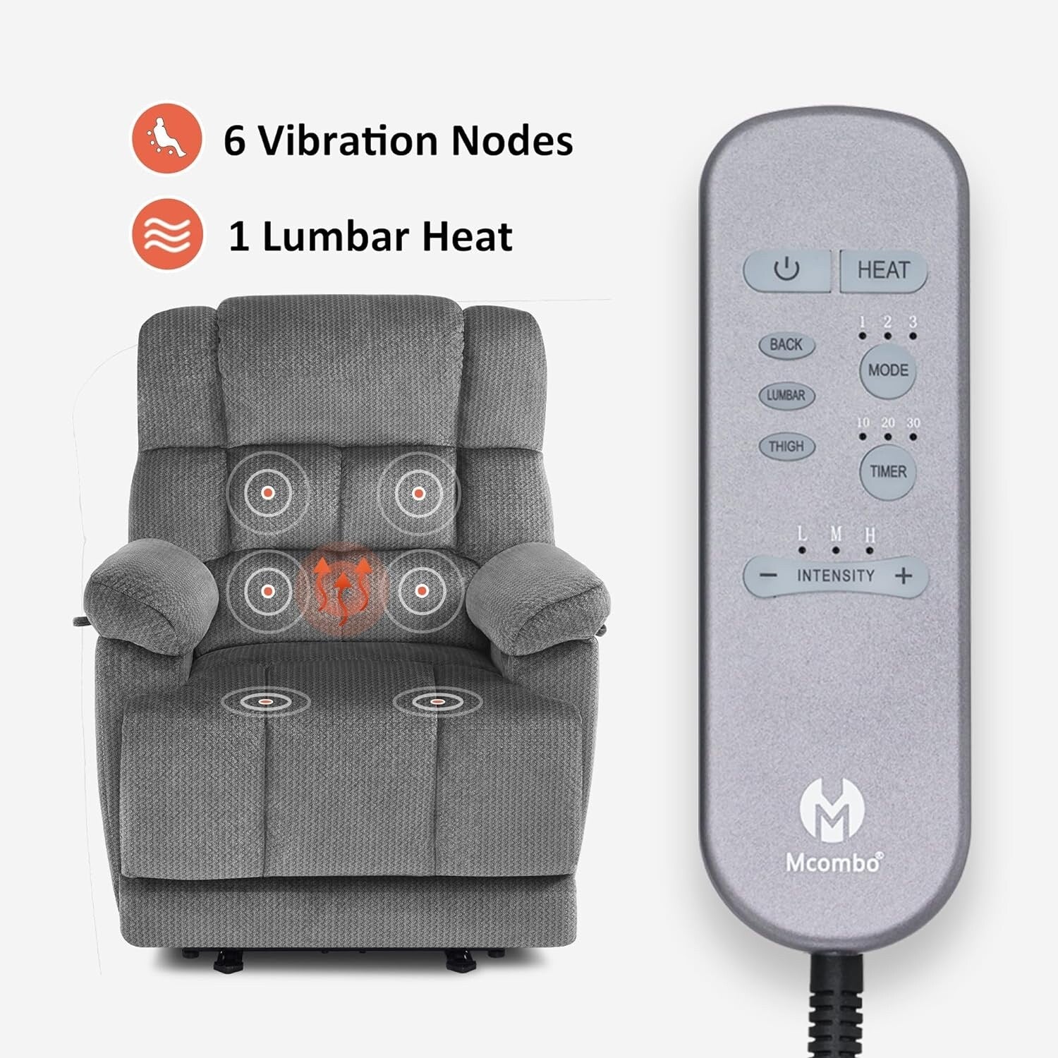 Fauteuil inclinable électrique MCombo pour salon avec chauffage et massage, tissu R6233