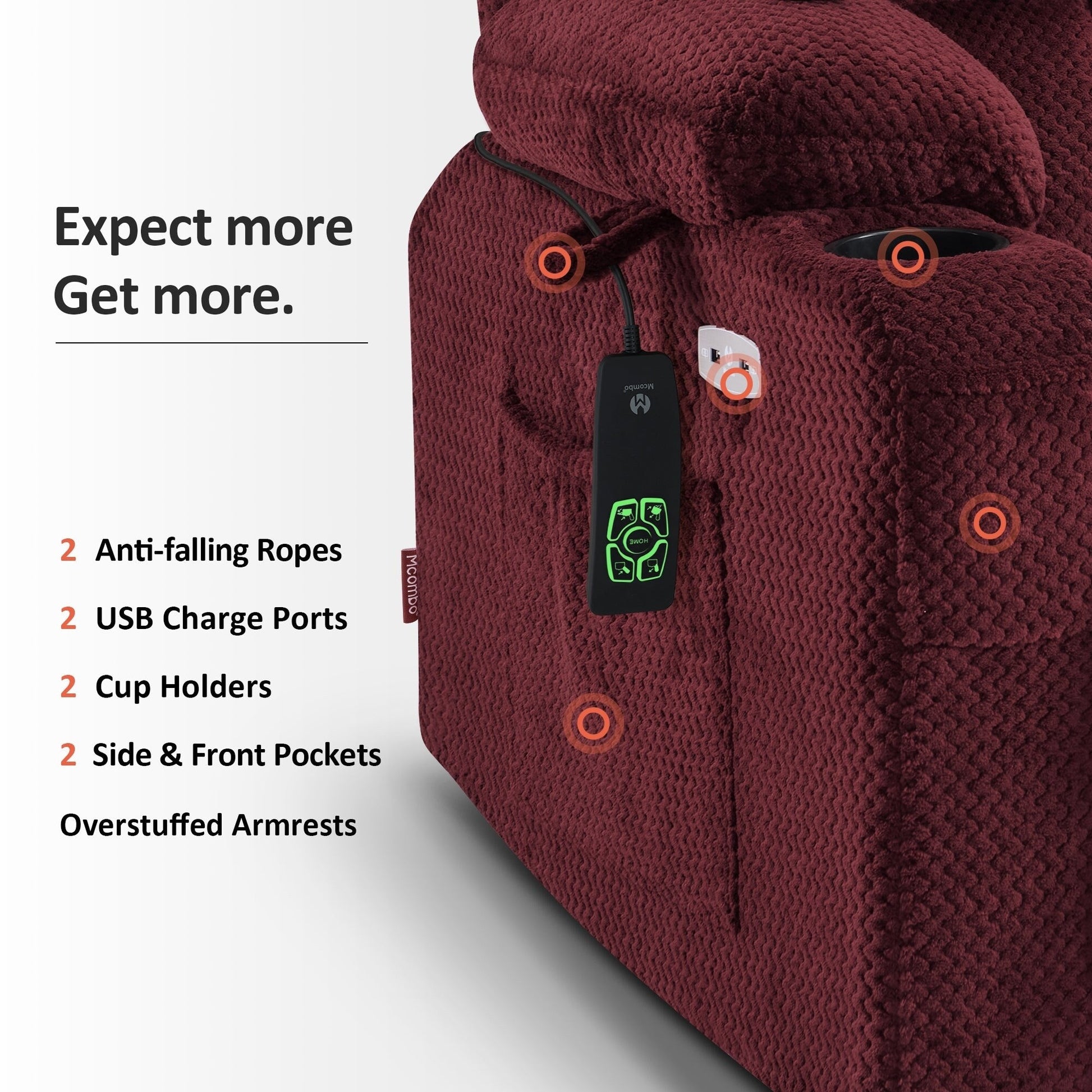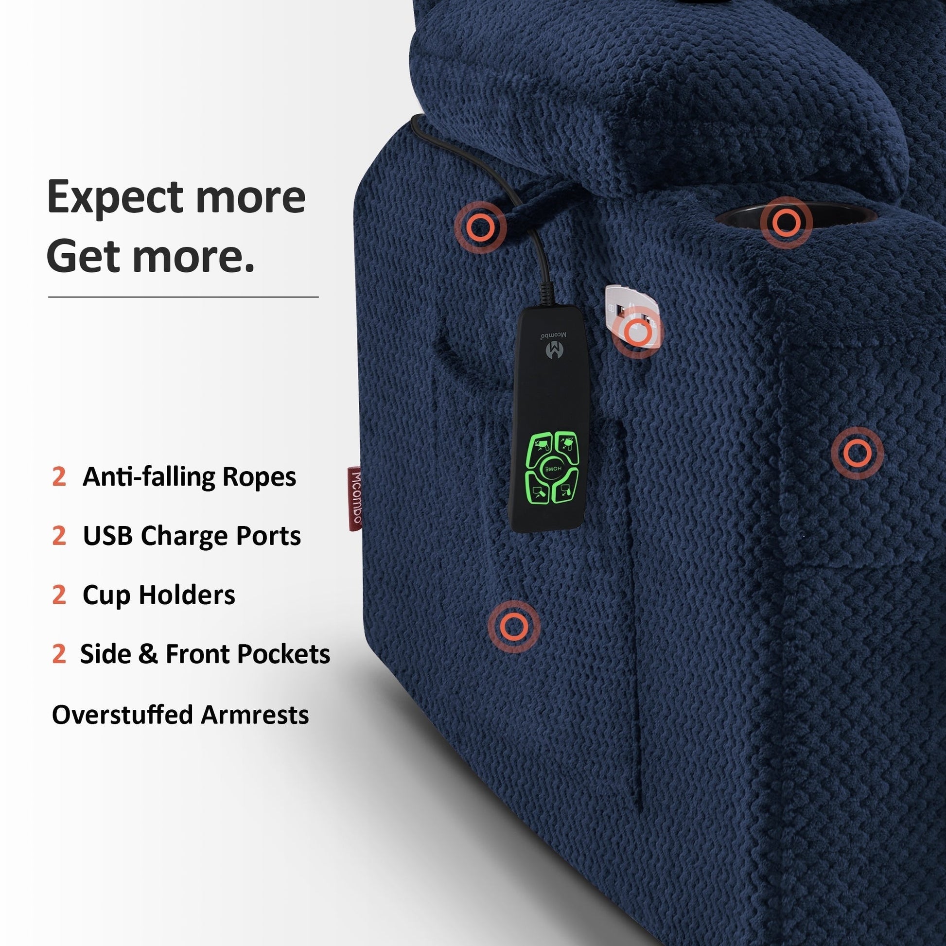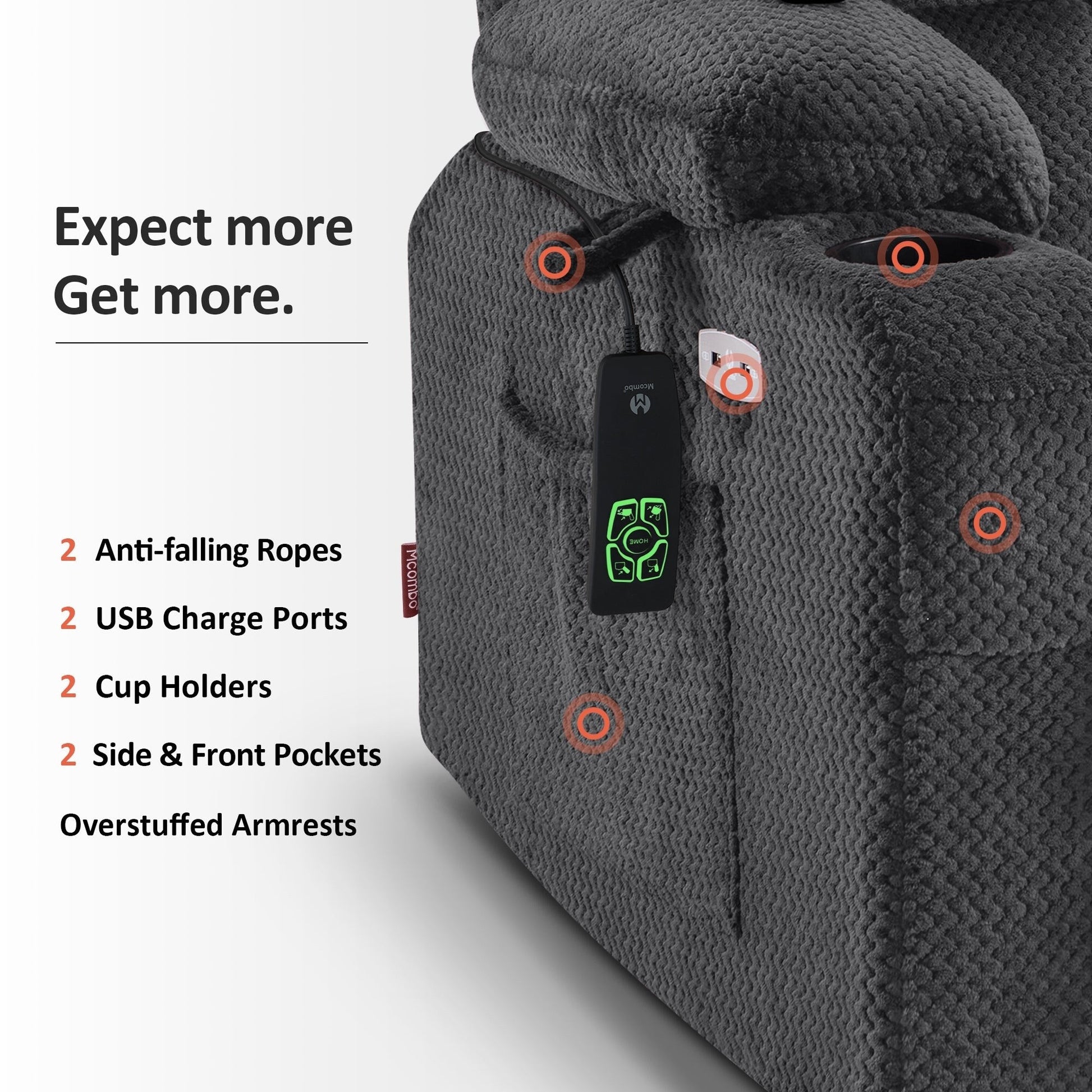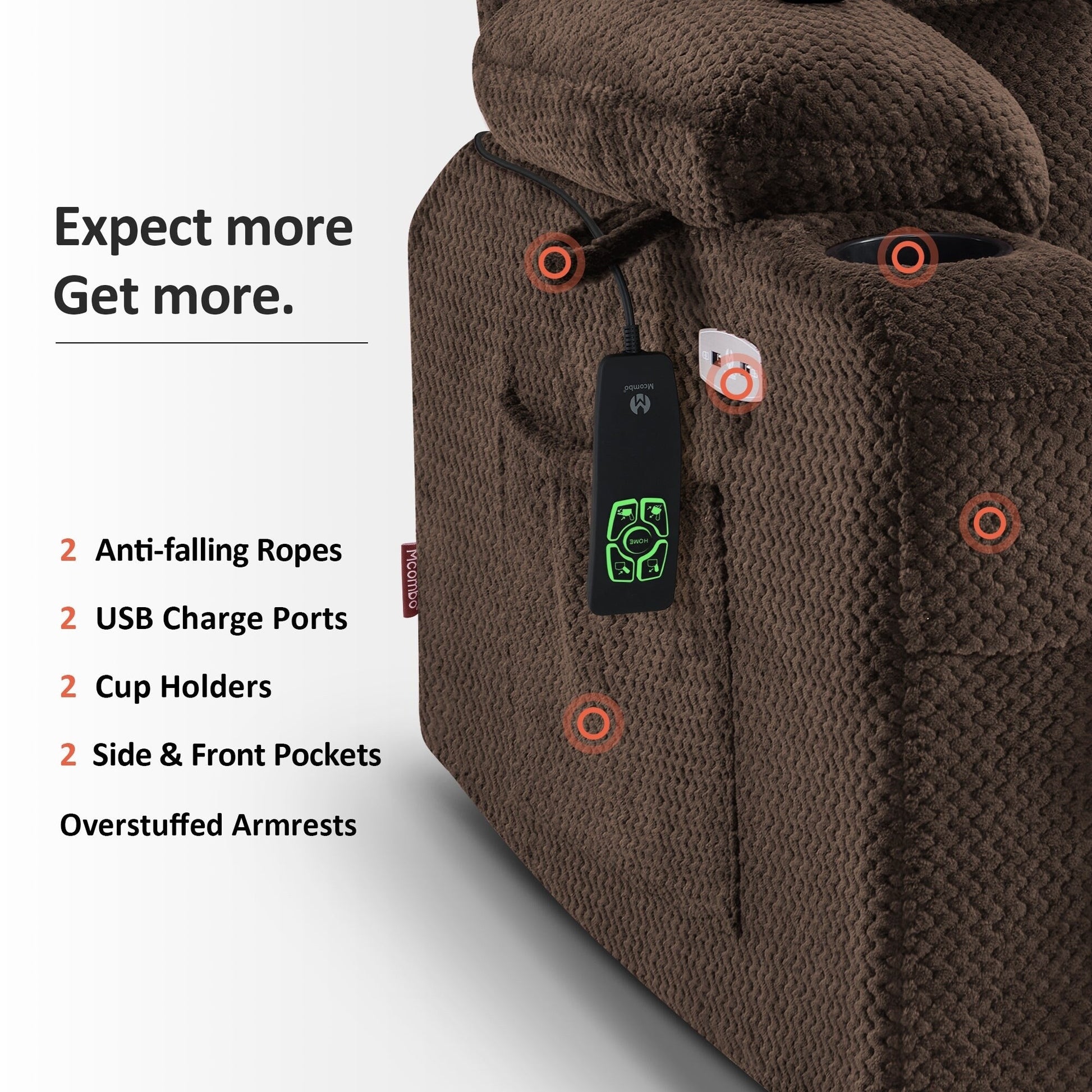 Fauteuil inclinable électrique à double moteur MCombo Medium, positions infinies, massage et chauffage, repose-pieds allongé, tissu 7890