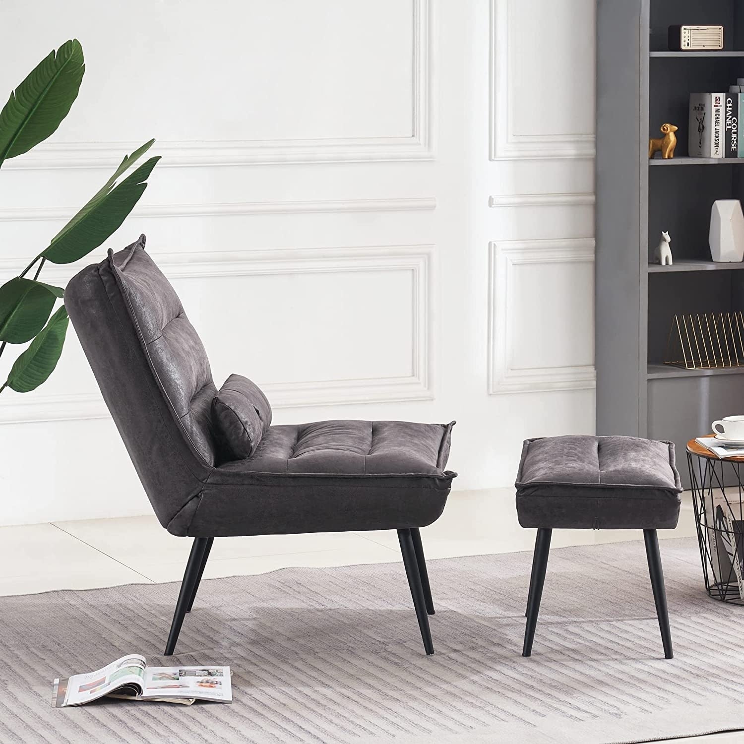 Chaise de loisirs moderne MCombo avec pouf, tissu bronzé