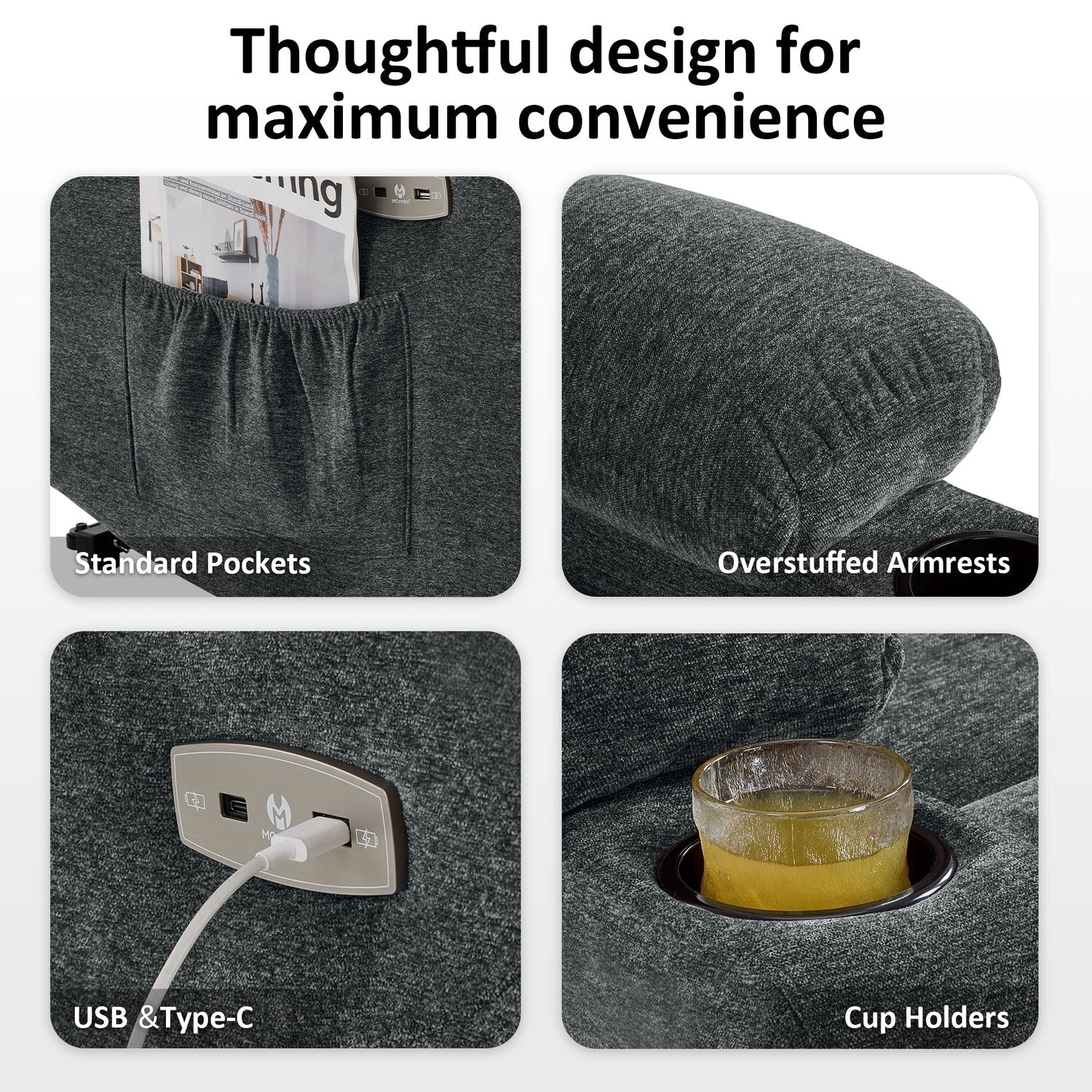 - Assistance de levage électrique : mécanisme de levage contrebalancé pour aider la personne âgée à se lever facilement, ajustez en douceur la position de levage ou d'inclinaison que vous préférez en appuyant sur des boutons (angle d'inclinaison maximal : 150°)