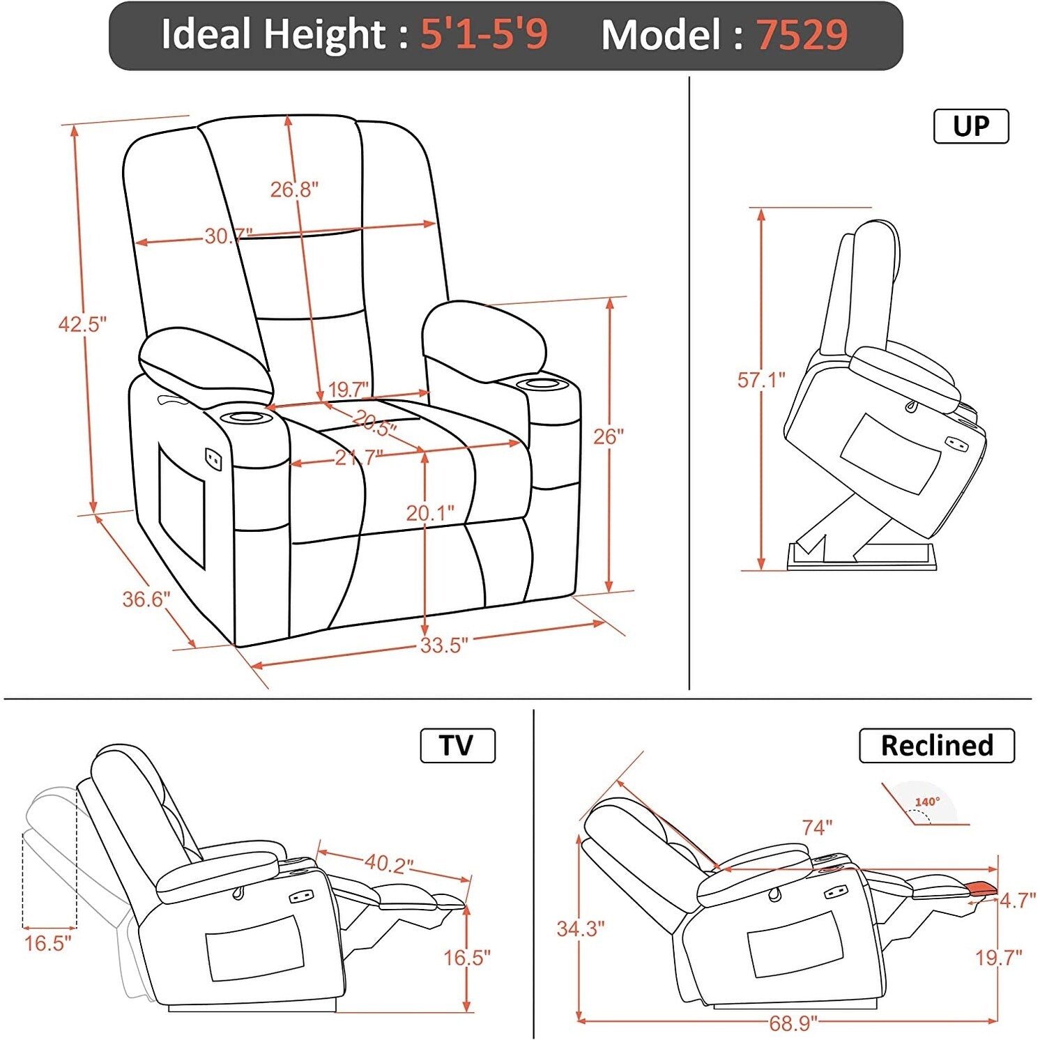 - Assistance de levage électrique : mécanisme de levage contrebalancé pour aider la personne âgée à se lever facilement, ajustez en douceur la position de levage ou d'inclinaison que vous préférez en appuyant sur des boutons (angle d'inclinaison maximal : 140°)