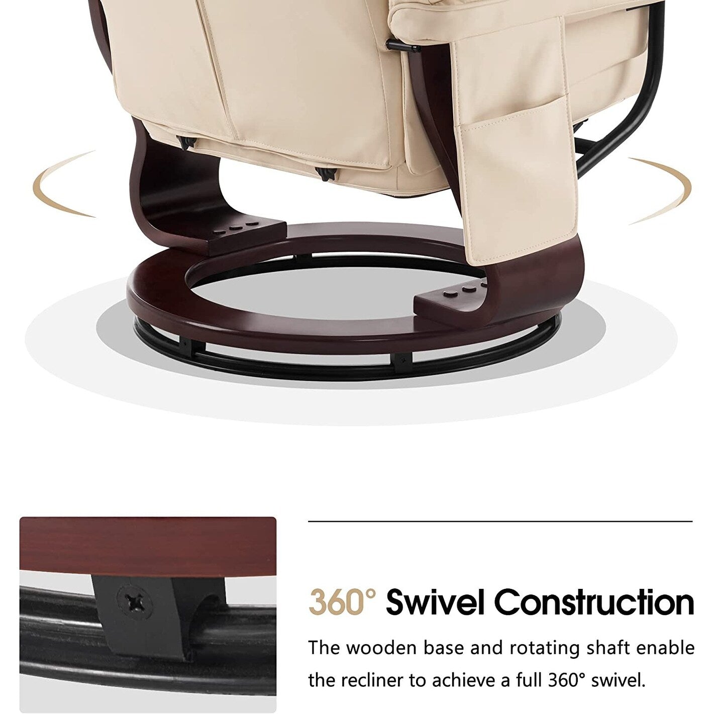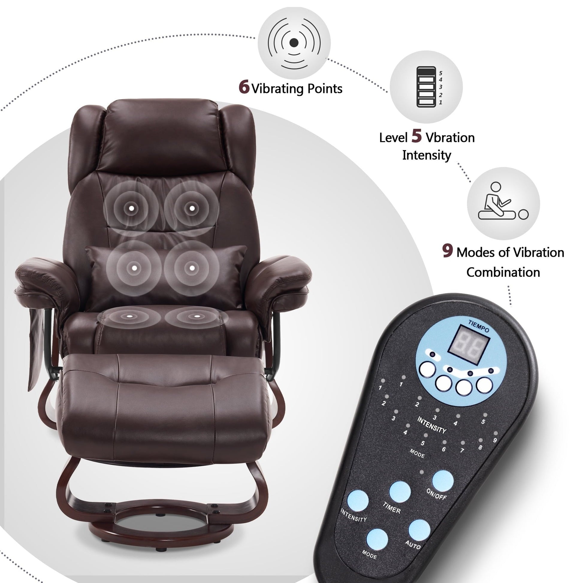 Fauteuils inclinables pivotants MCombo avec ottoman, fauteuils TV à massage par vibrations et poche latérale