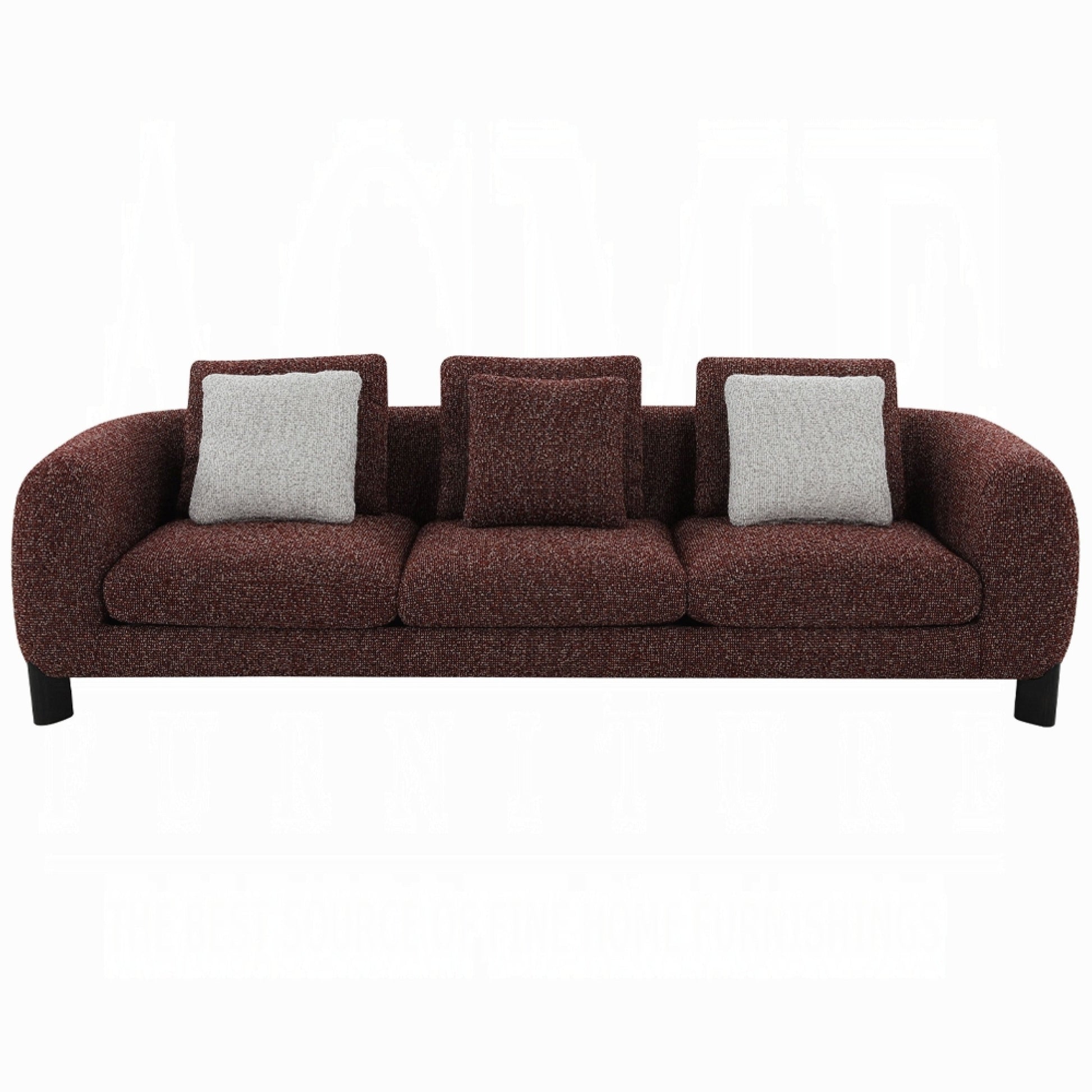 Affirmez votre style avec ce canapé, alliant confort et élégance contemporaine. Revêtu d'un riche tissu tweed rouge bordeaux, ce canapé spacieux est doté d'une structure robuste en pin et d'une assise entièrement en mousse pour une détente optimale. Ses accoudoirs arrondis et ses coussins de dossier amovibles créent une allure à la fois confortable et structurée, tandis que trois coussins décoratifs chics complètent son design. Explorez la collection Meru pour en savoir plus.