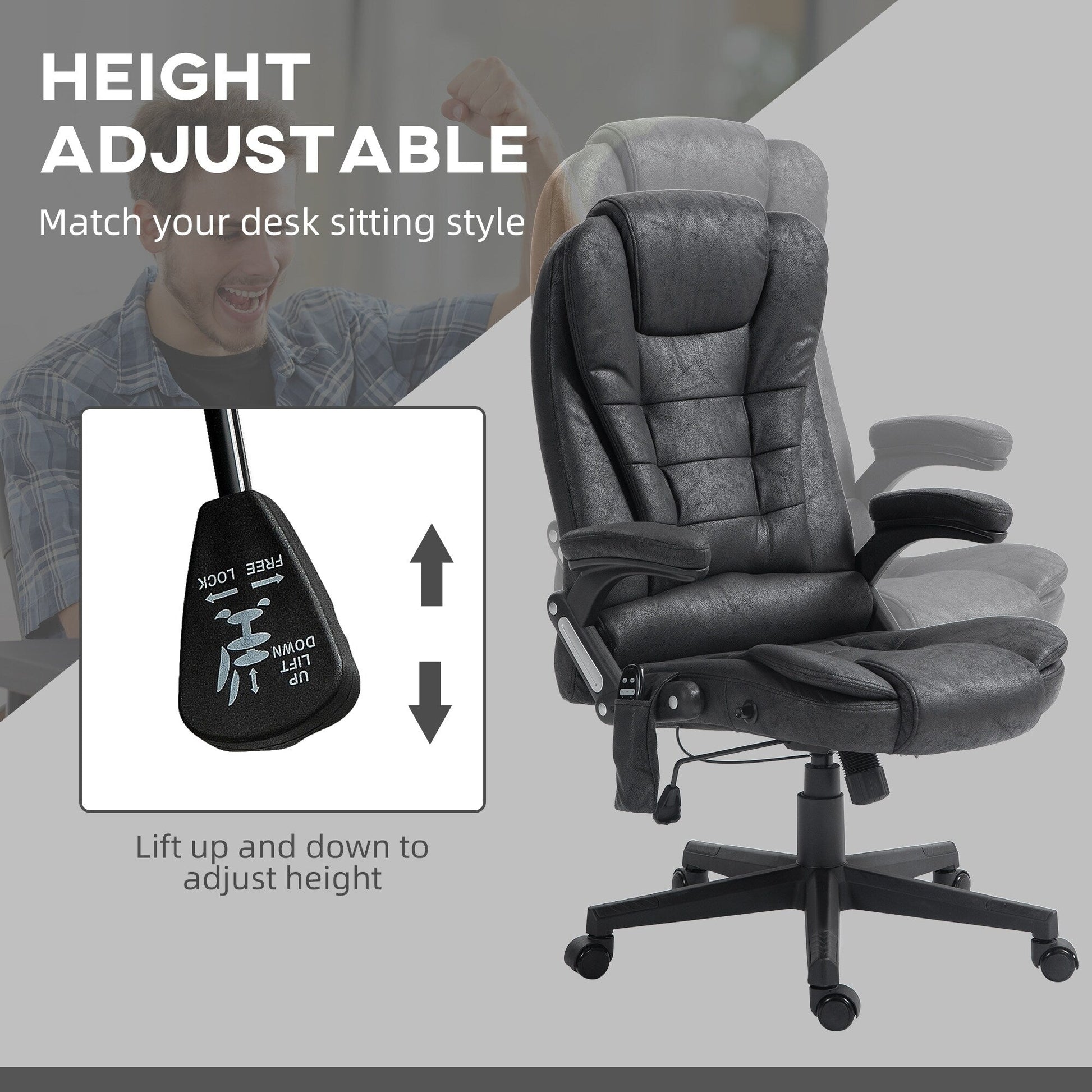 Fauteuil de bureau massant en microfibre avec chauffage, vibration à 6 points, dossier inclinable réglable, accoudoirs rembourrés, télécommande