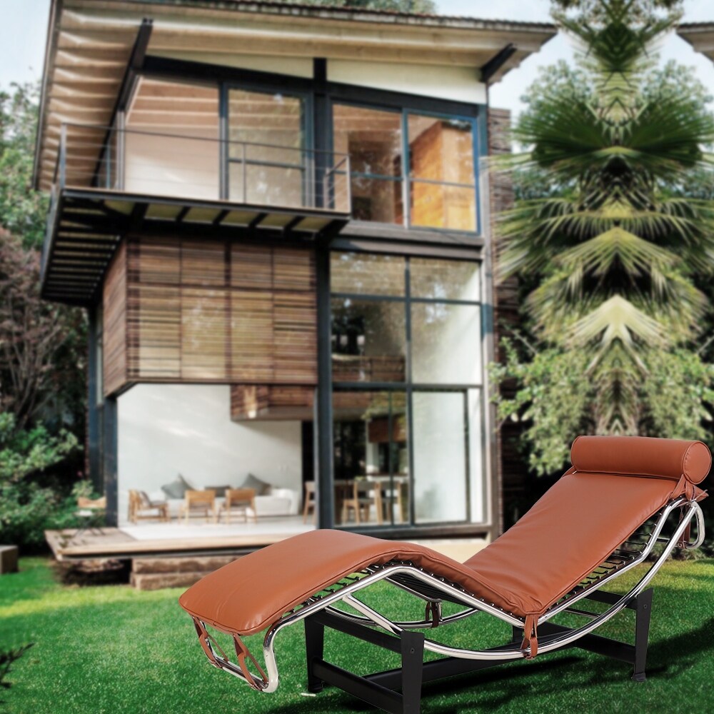 - Cette réplique de l'emblématique chaise longue LC-4 de Le Corbusier est dotée d'un revêtement en cuir véritable, alliant élégance intemporelle et confort. Son dossier inclinable réglable offre un excellent maintien. Sa construction robuste et son design classique en font un ajout idéal à tout salon, chambre ou bureau moderne.