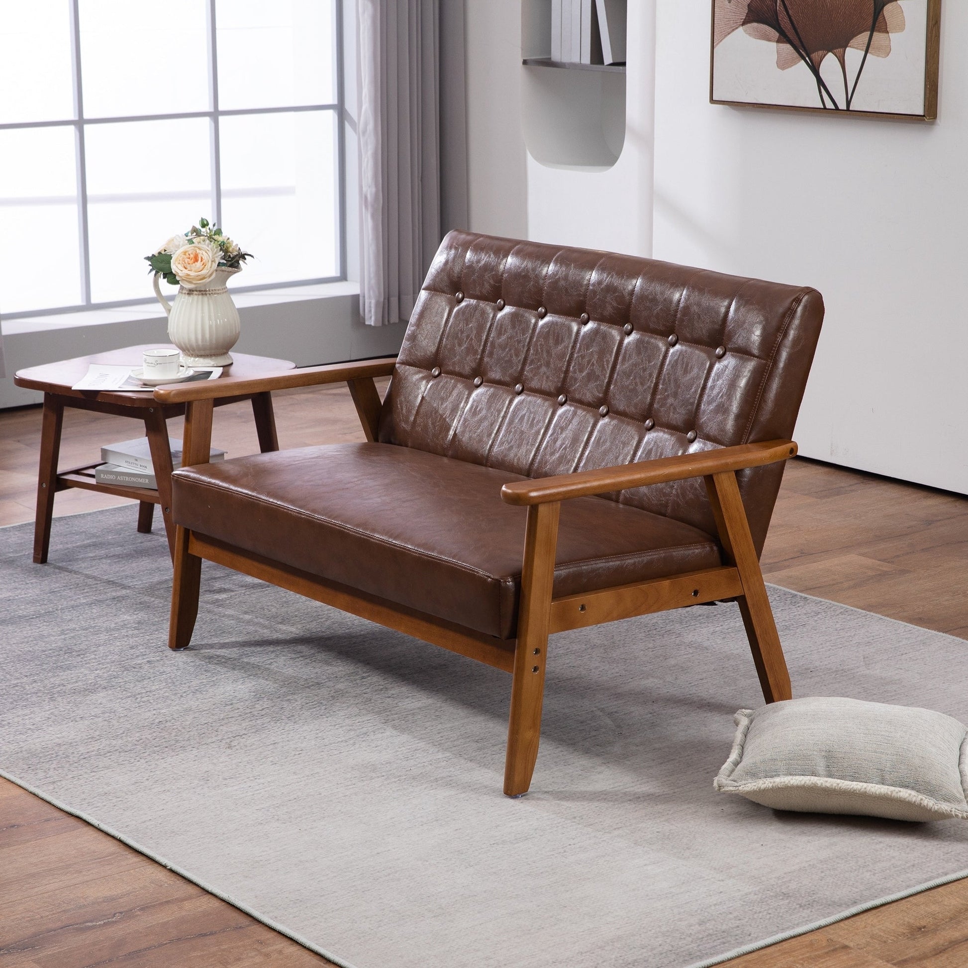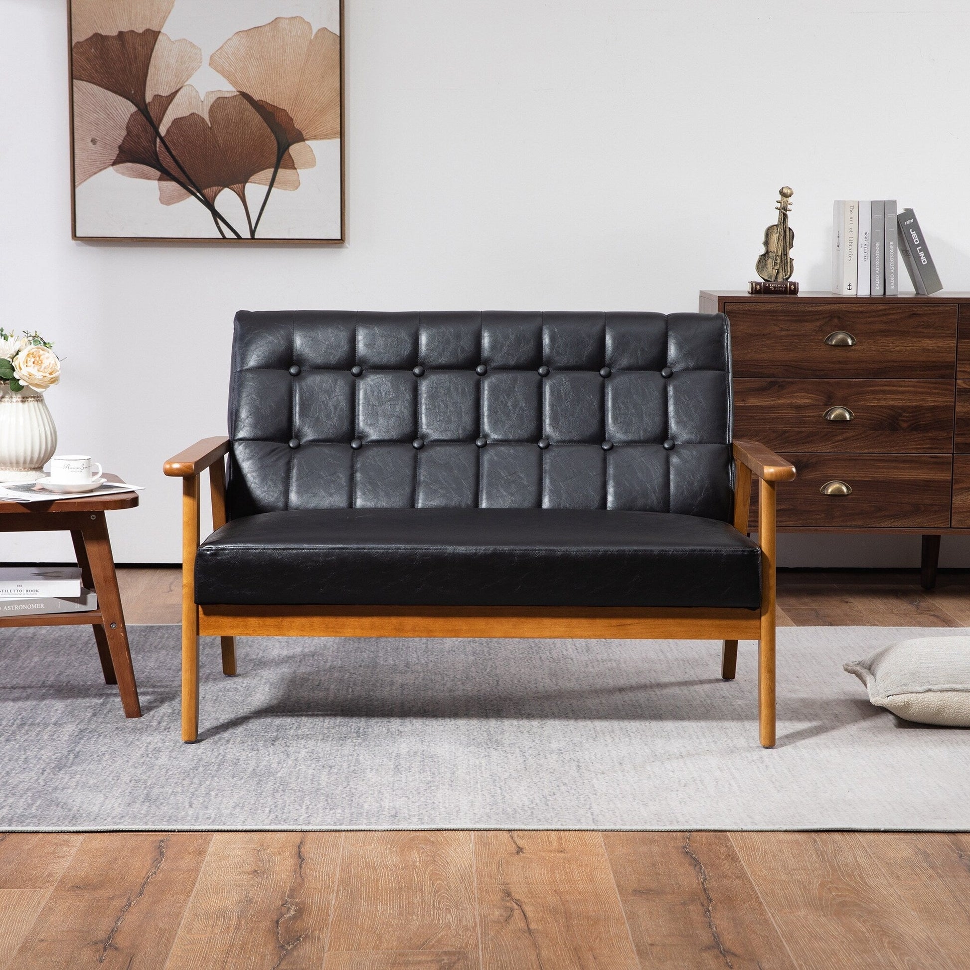Canapé causeuse solide moderne du milieu du siècle, canapé causeuse rembourré, canapé causeuse rembourré 2 places