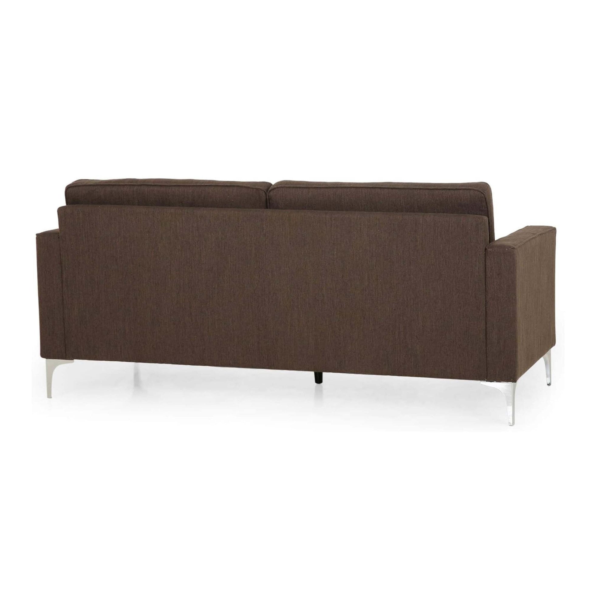 Le charme classique rencontre la sophistication chaleureuse de ce canapé trois places Miry. Revêtu de polyester marron doux, il est doté d'une assise capitonnée, de coussins de dossier moelleux et de deux traversins assortis qui lui confèrent structure et charme. Ses élégants pieds en métal argenté lui confèrent une touche moderne, ce qui en fait un choix polyvalent pour les salons, les bureaux ou les espaces détente. Découvrez notre collection Miry.