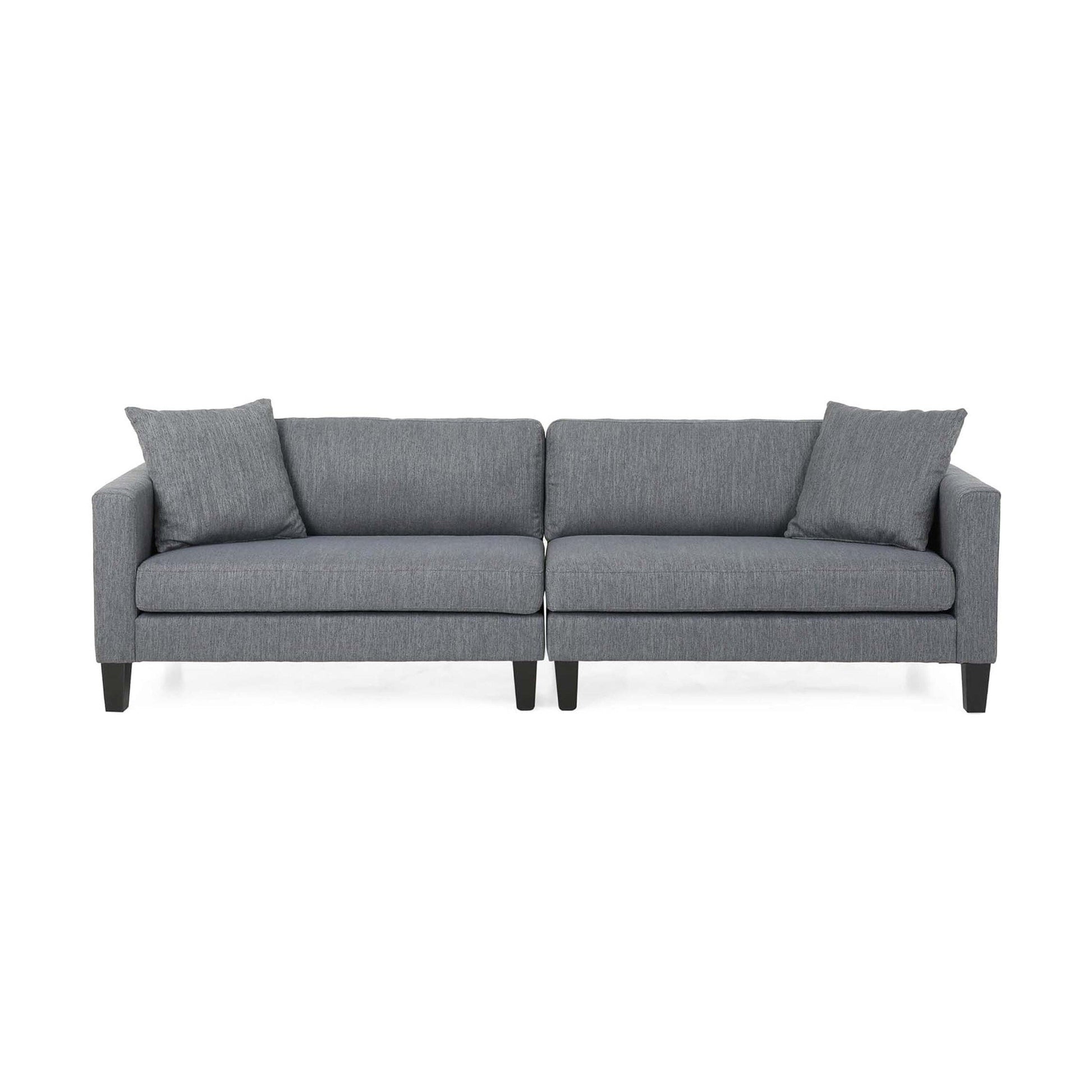 Canapé 3 places Miry, 2 coussins, pieds en bouleau, polyester gris classique