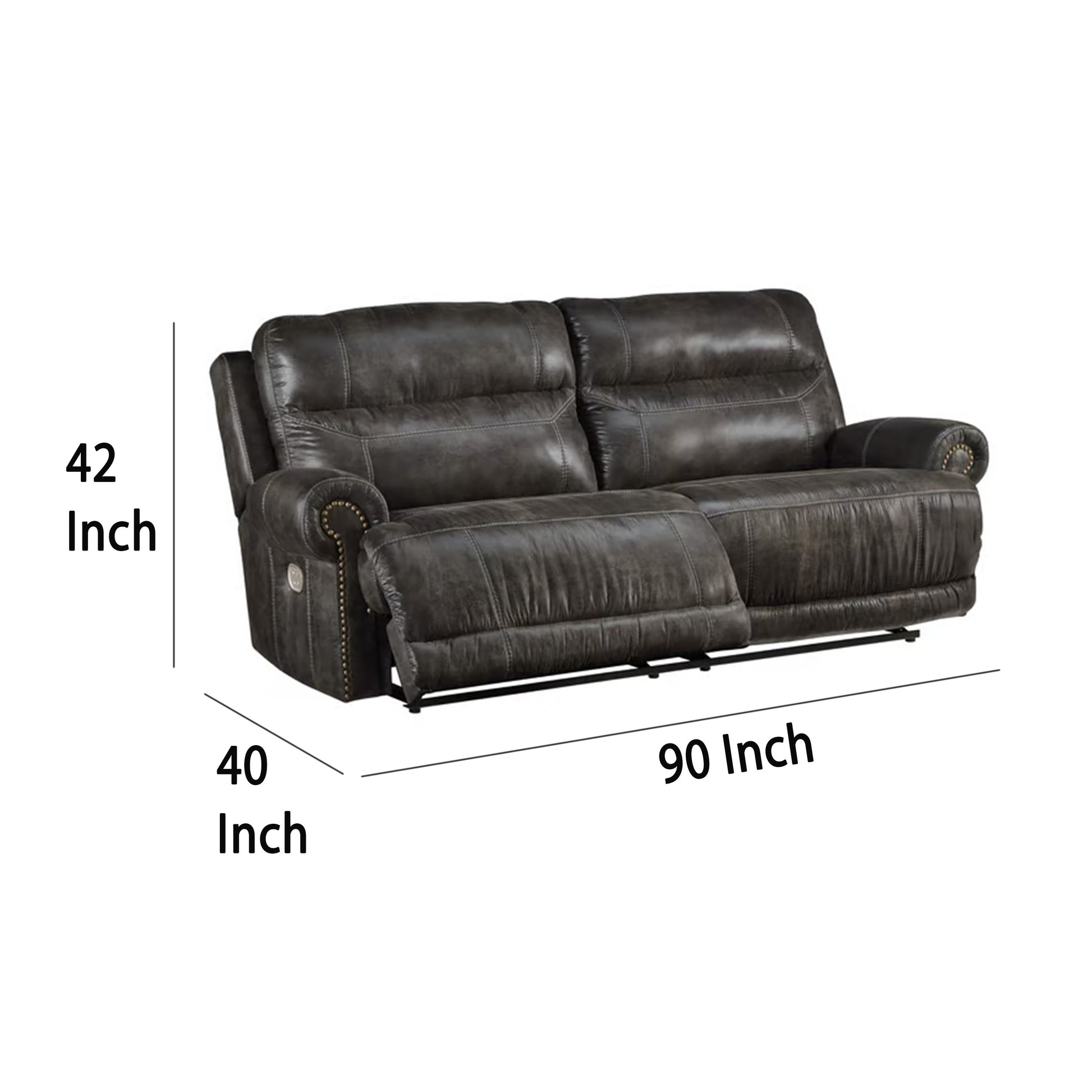 Canapé inclinable électrique Mitch, similicuir gris foncé, 90 pouces