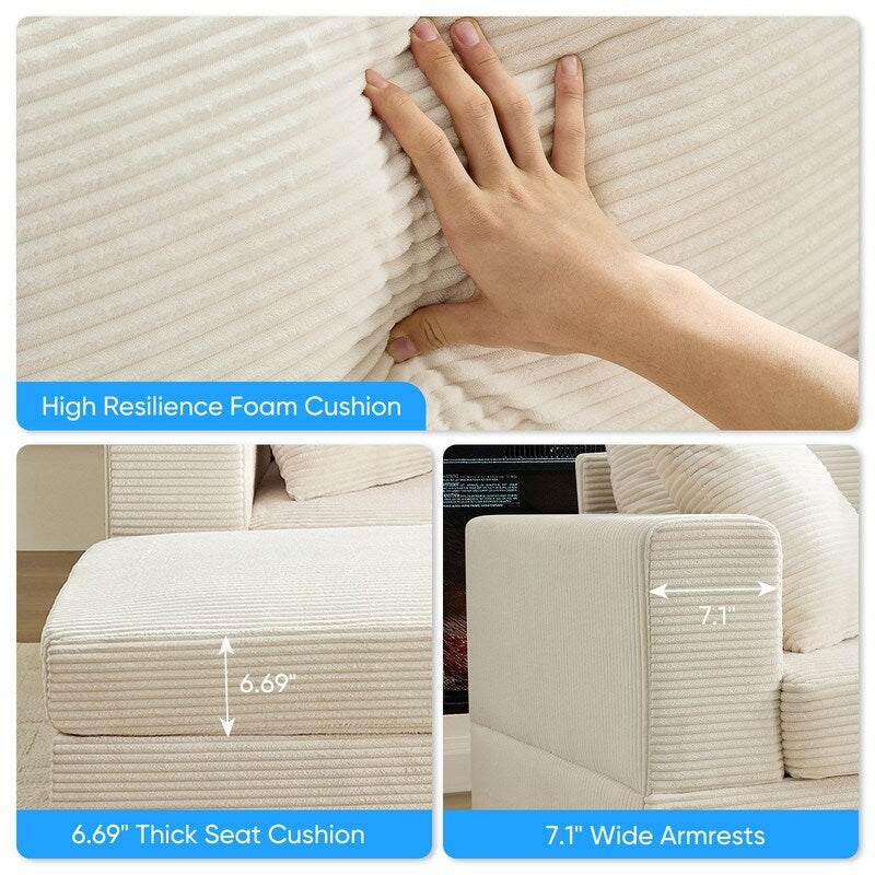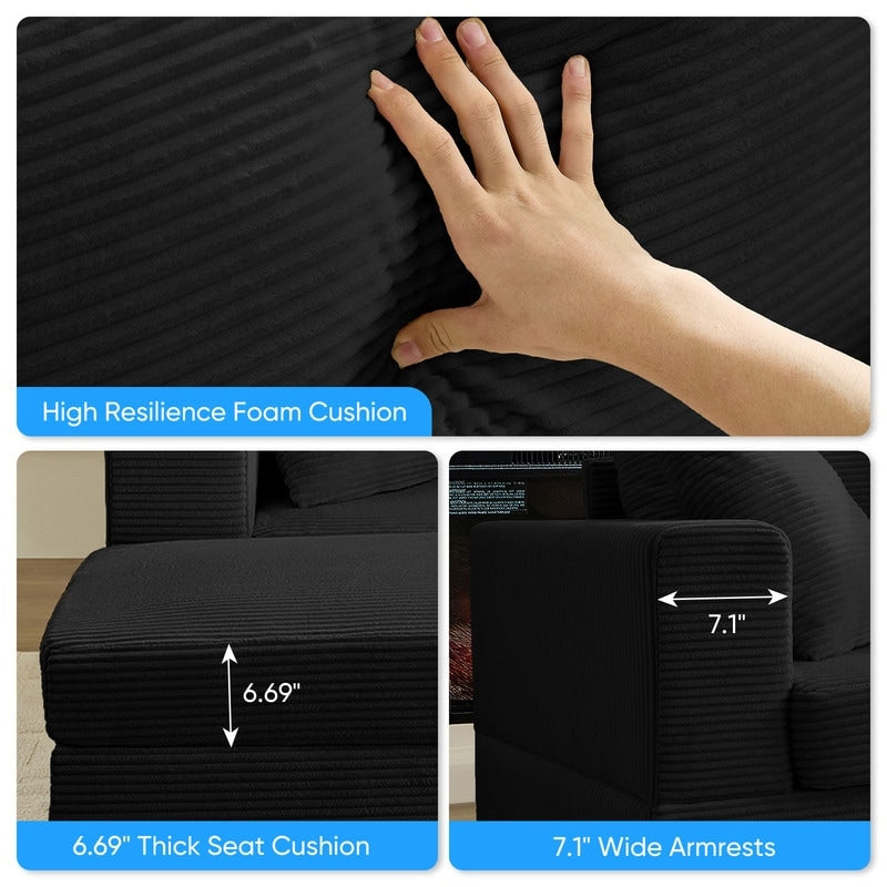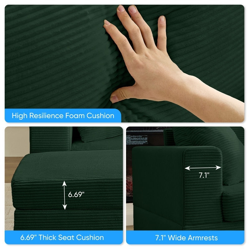 Cadre robuste pour une durabilité accrue. Conçu pour durer, notre canapé confortable rembourré en velours côtelé est doté d'une structure en bois massif robuste qui garantit durabilité et stabilité, avec une capacité de charge allant jusqu'à 172 kg. Parfait pour lire, regarder la télévision, jouer ou même faire une petite sieste, il est idéal comme canapé-lit de loisirs. Ce canapé élégant complète non seulement votre décoration intérieure, mais améliore également votre confort.