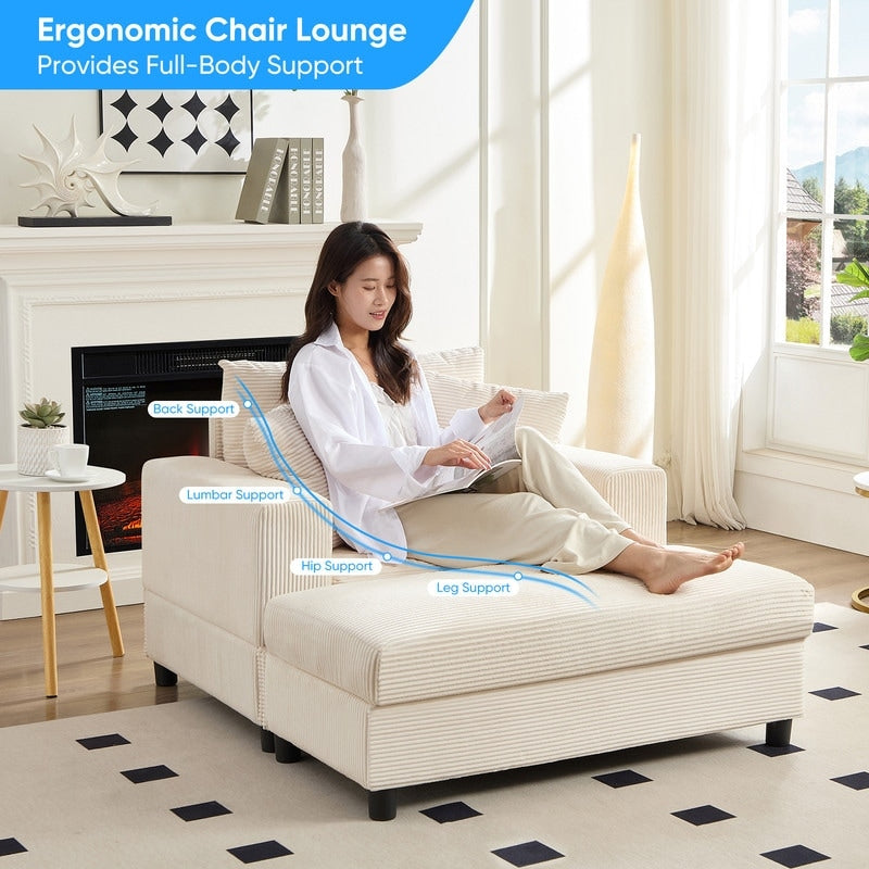 Confort au quotidien : vivez une détente incomparable avec notre chaise longue d'intérieur surdimensionnée avec pouf, confectionnée en velours côtelé de qualité supérieure, doux et agréable au toucher. Le coussin d'assise est en mousse hautement élastique renforcée de ressorts, offrant un excellent soutien et reprenant sa forme sans effort une fois assis. De conception ergonomique, chaque composant est soigneusement conçu pour offrir un soutien d'assise supérieur et un confort inégalé.