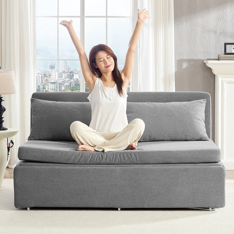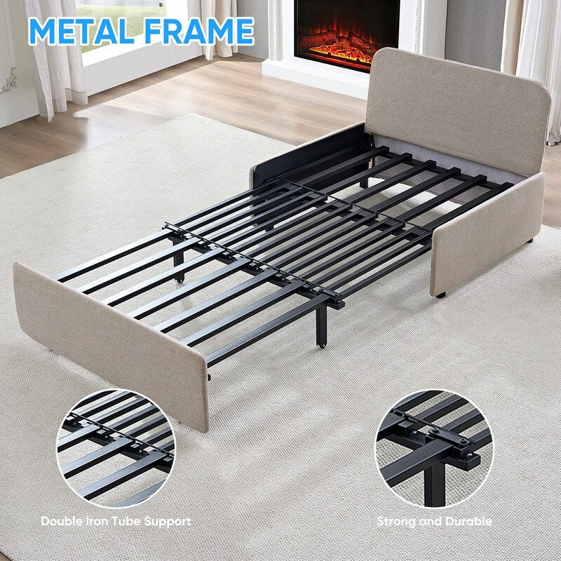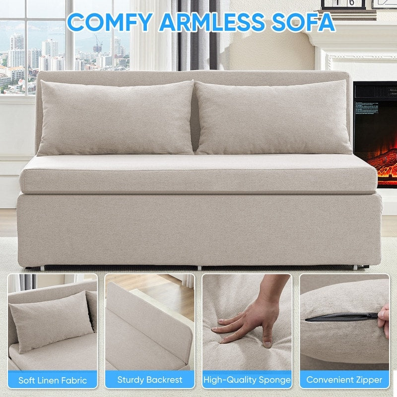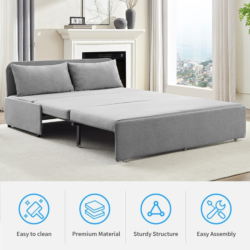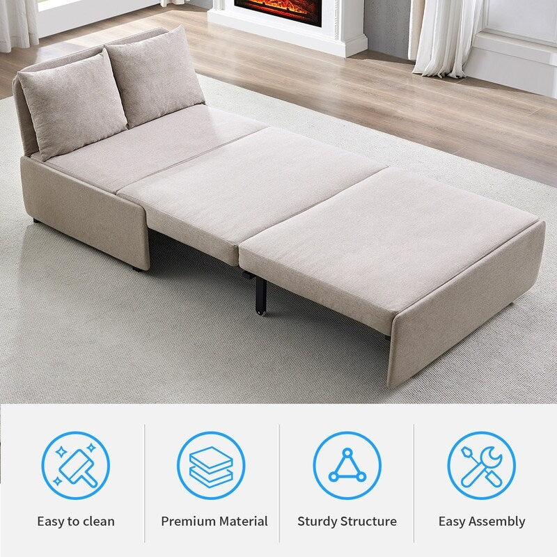 Canapé-lit Mixoy Full/Queen Size, canapé-lit convertible 2 en 1 en lin 1 place/causeuse avec coussins