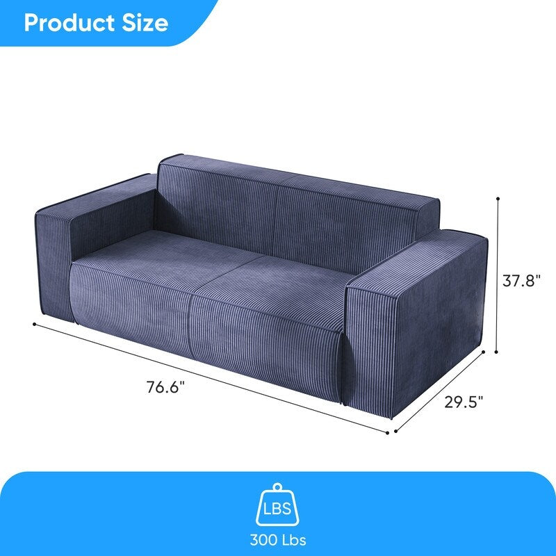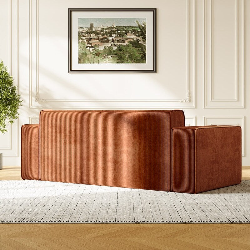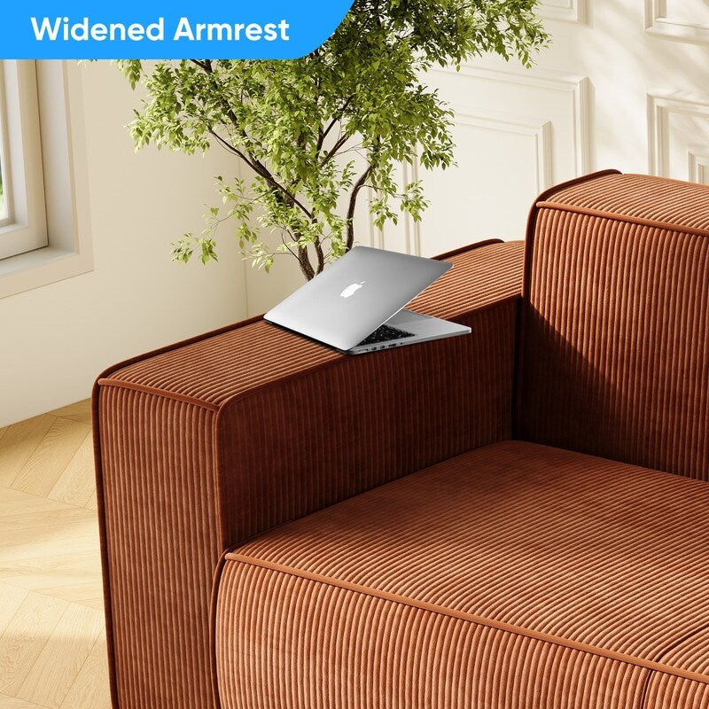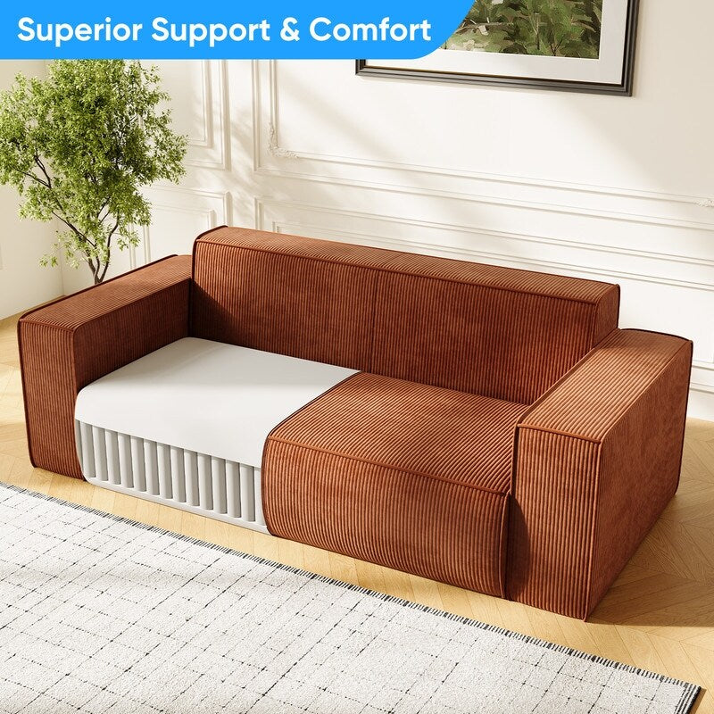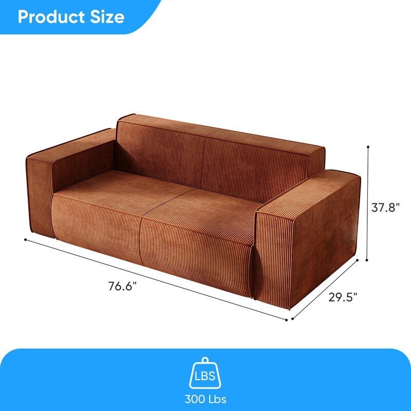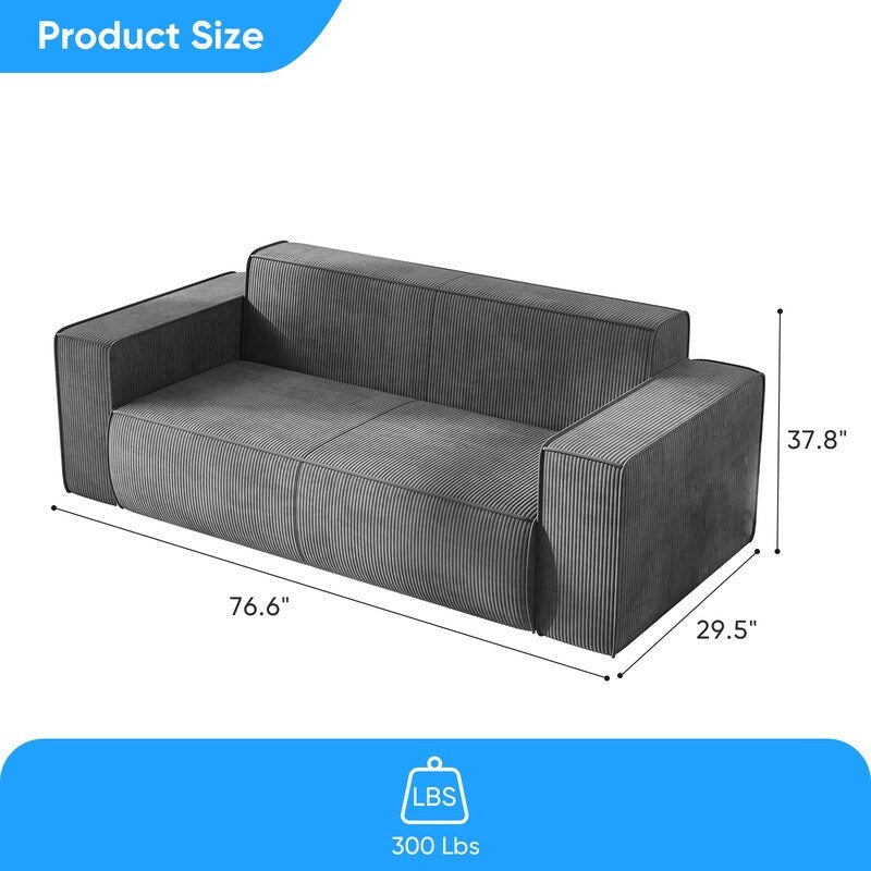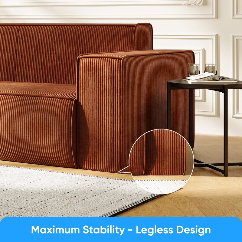 Canapé 2 places en velours moderne Mixoy, sans pieds et avec accoudoirs élargis, rembourré pour le salon