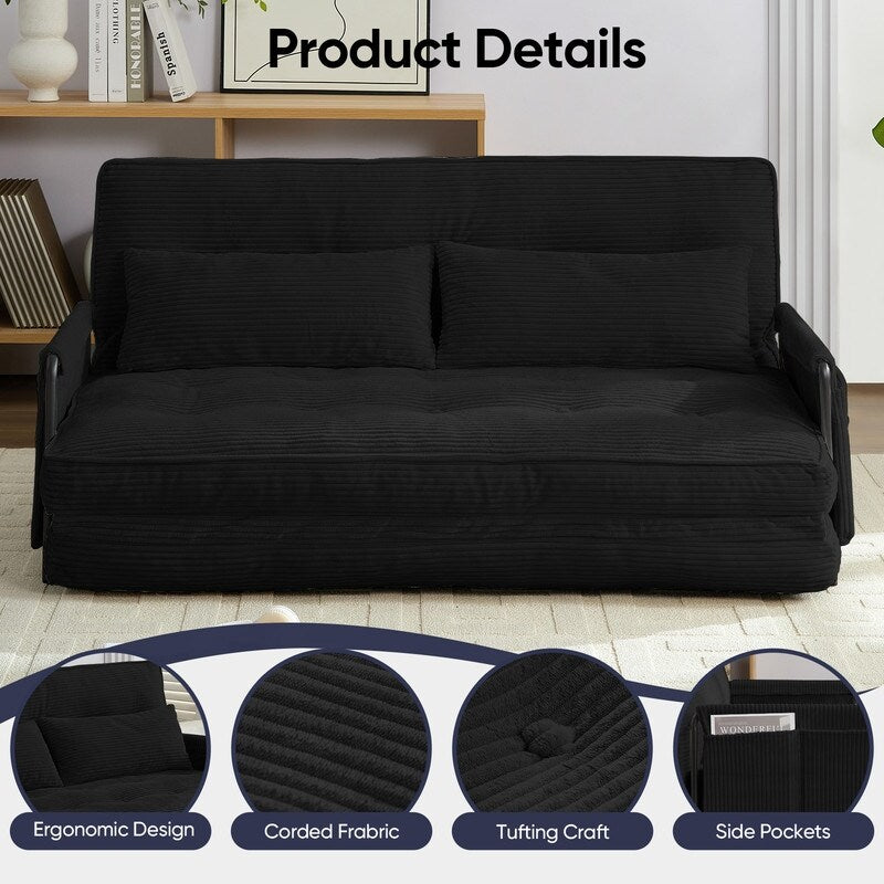 Canapé-lit pliant multifonction Mixoy, canapé-lit avec coussins, dossier réglable sur 6 positions