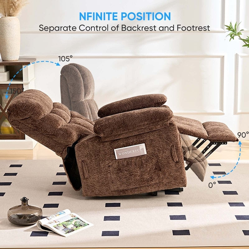 ??【Mécanisme de levage électrique double :】 Contrôlez le levage et l'inclinaison du fauteuil inclinable via la télécommande électrique, offrant une expérience multifonctionnelle.