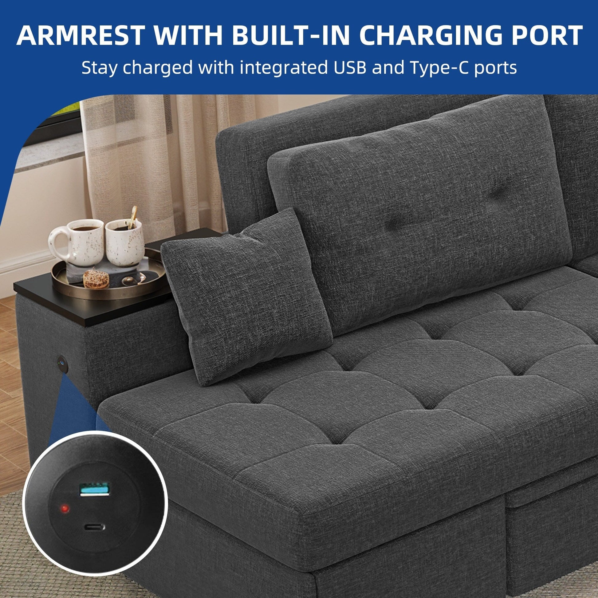 - Accoudoir avec port de charge intégré : restez chargé grâce aux ports USB et Type-C intégrés