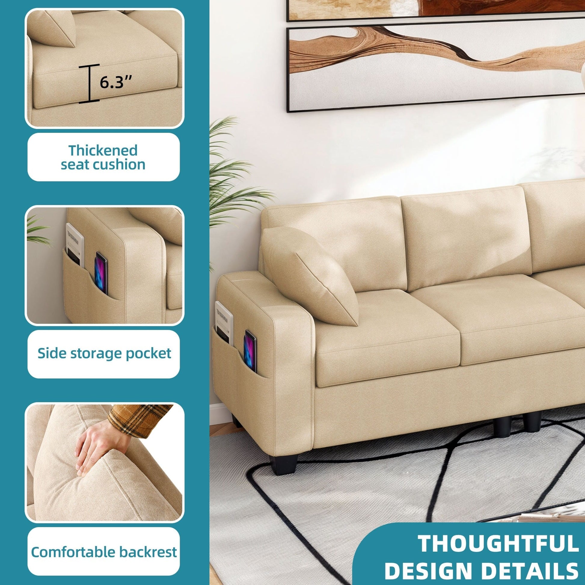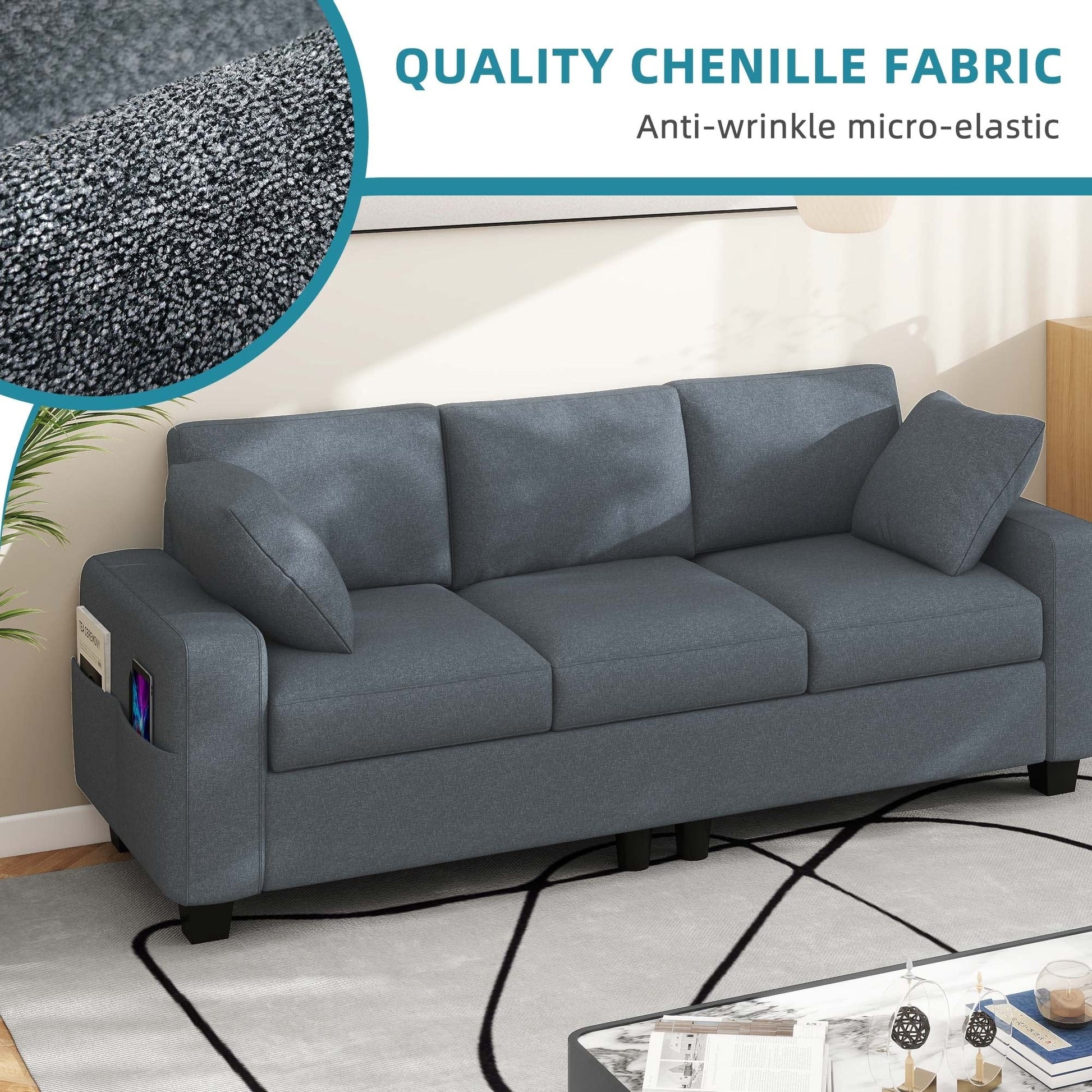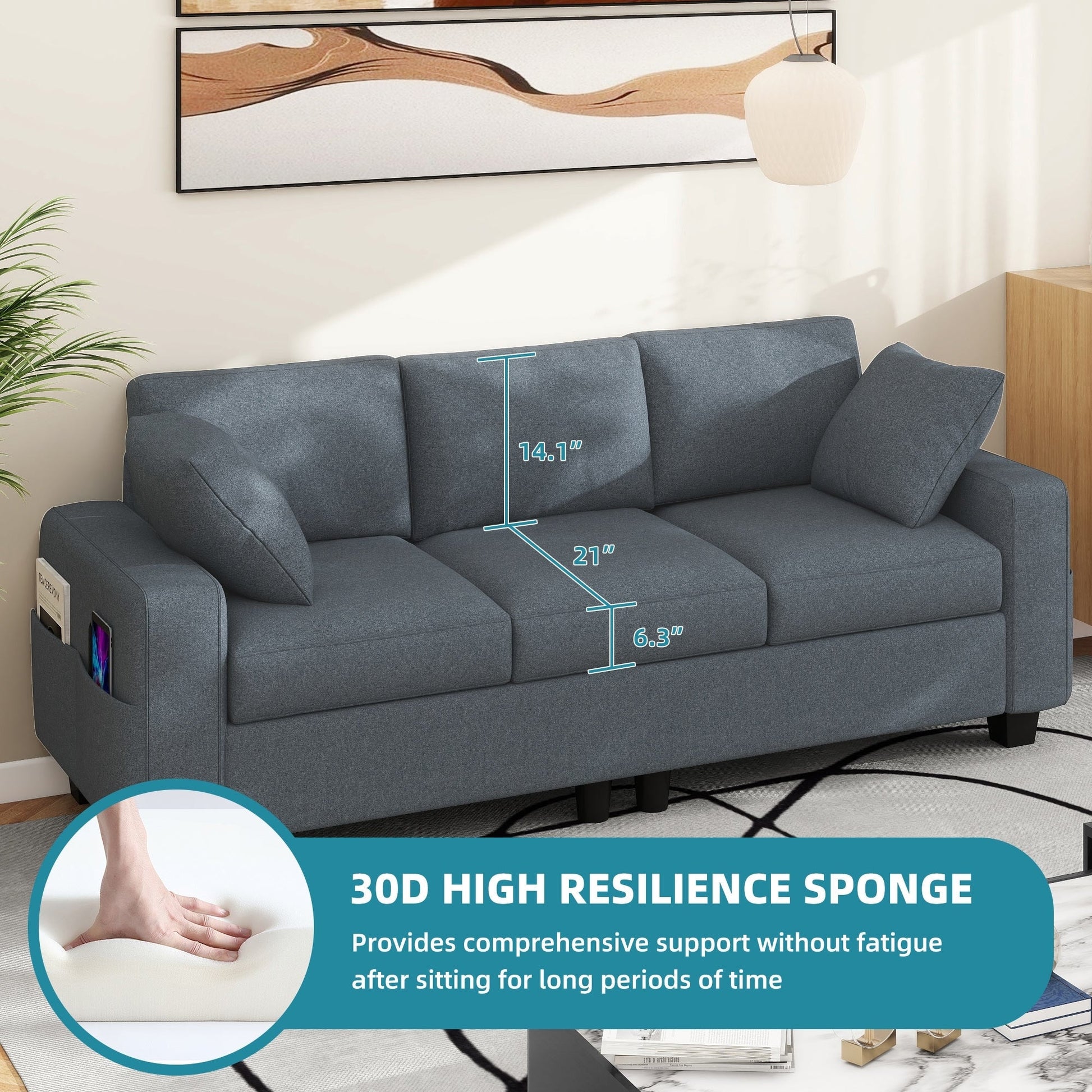 Canapé 3 places rembourré Moasis 80 avec 2 coussins et poches latérales pour le salon