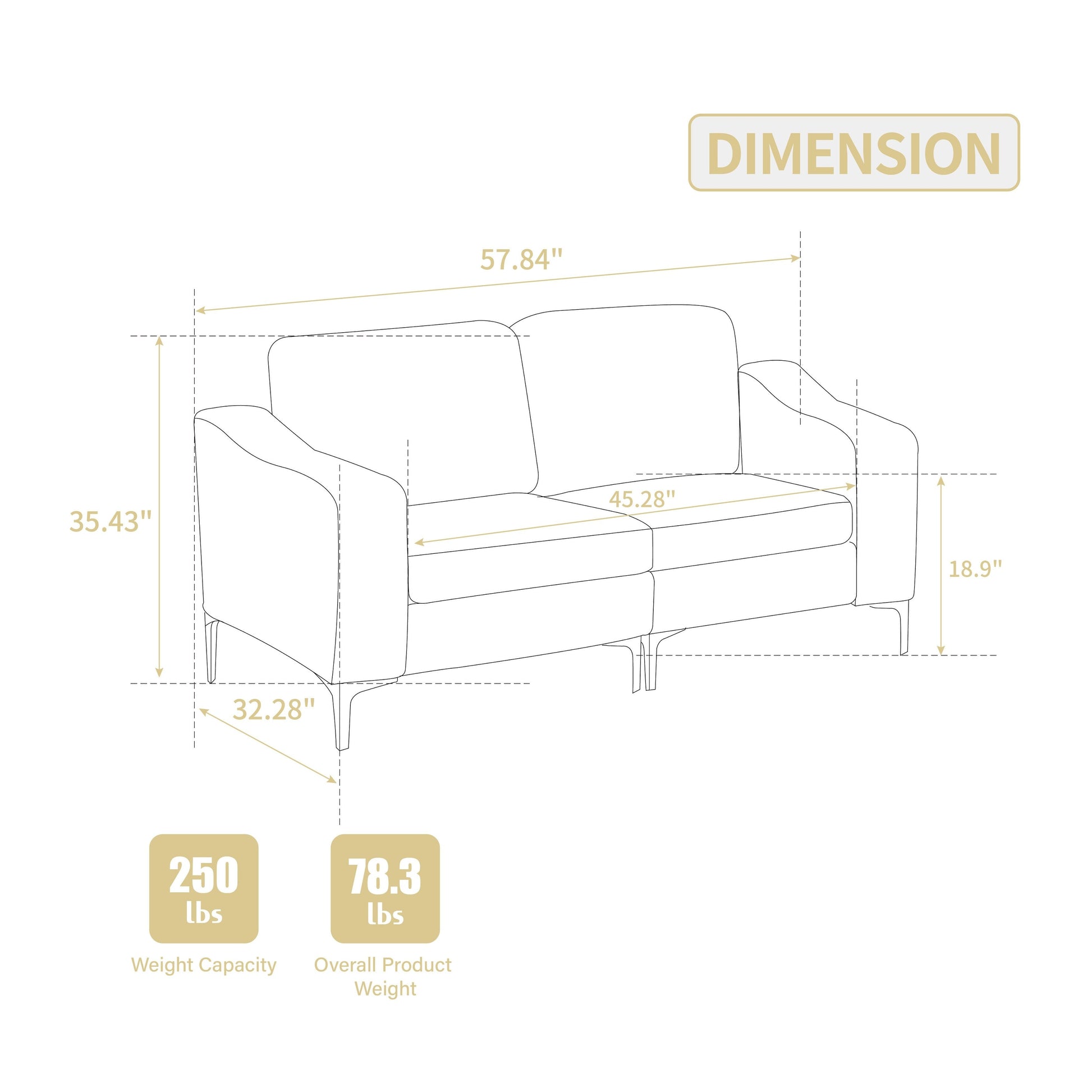 Canapé modulable moderne à 2 places en velours côtelé pour salon ou bureau