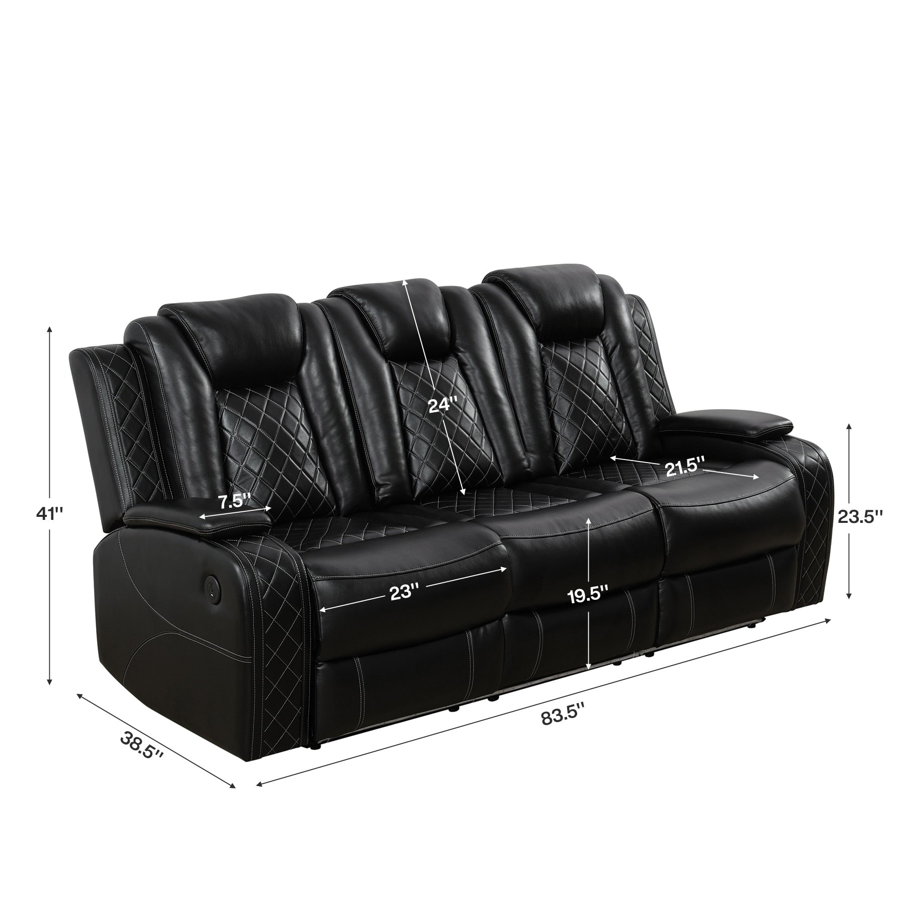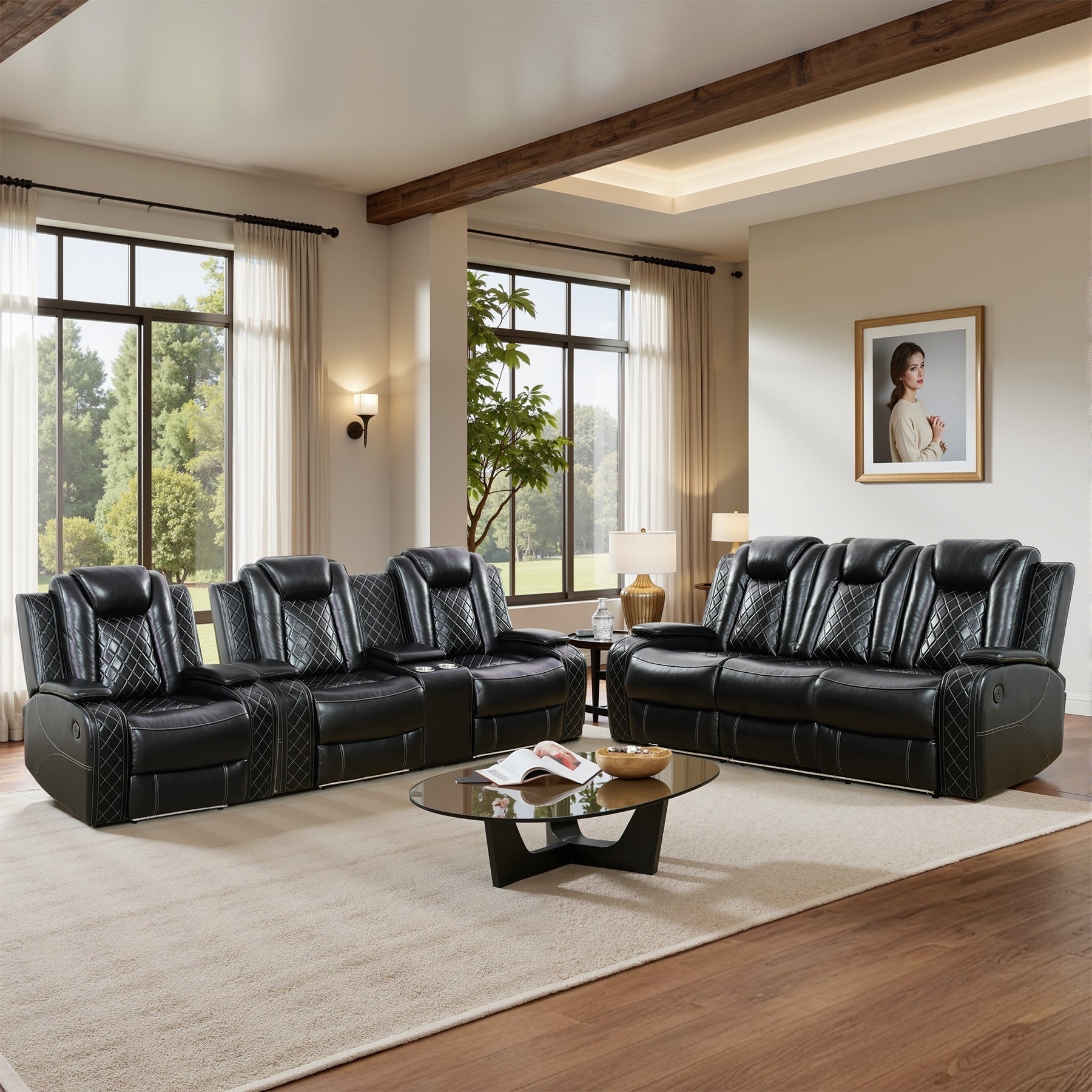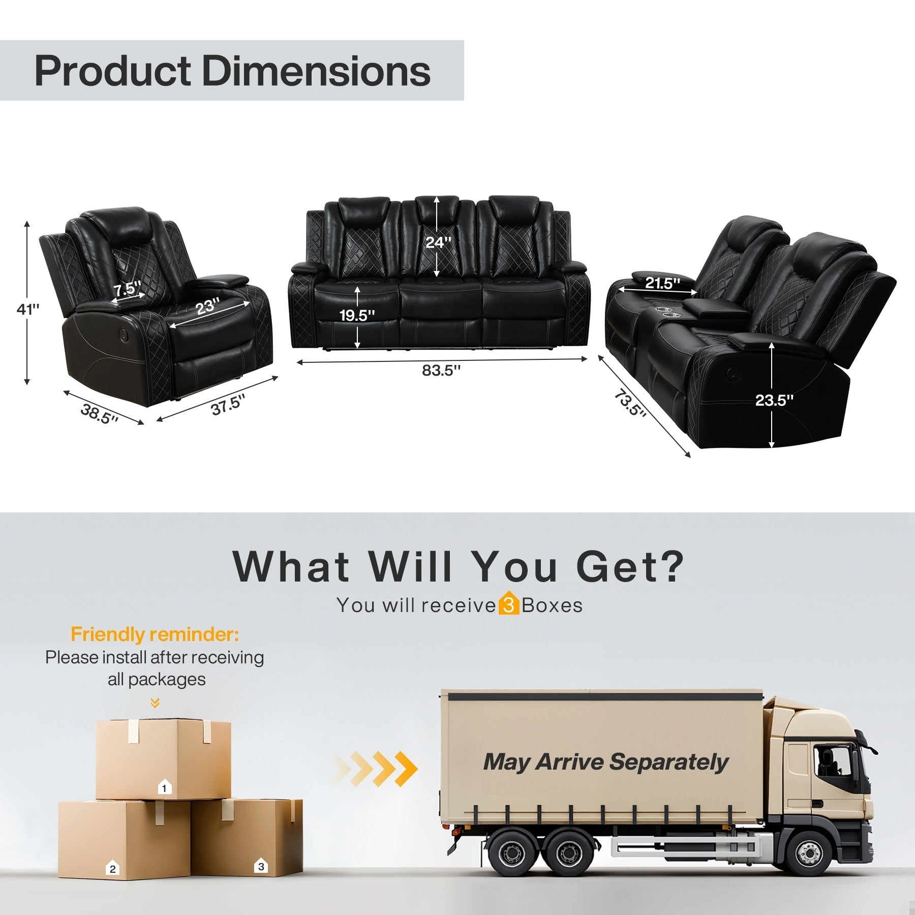 Ensemble de canapés inclinables modernes en cuir 3 pièces avec LED et chargement sans fil