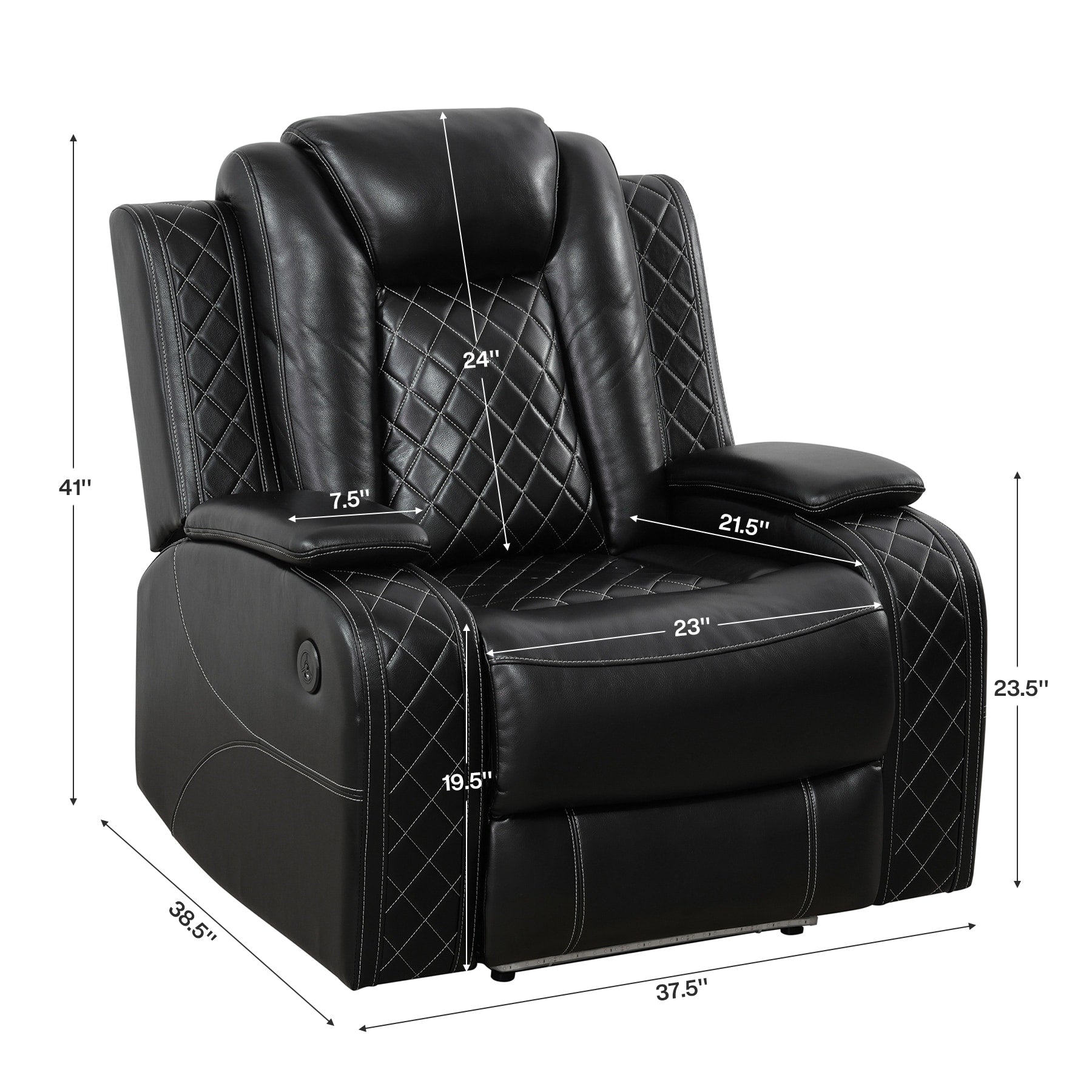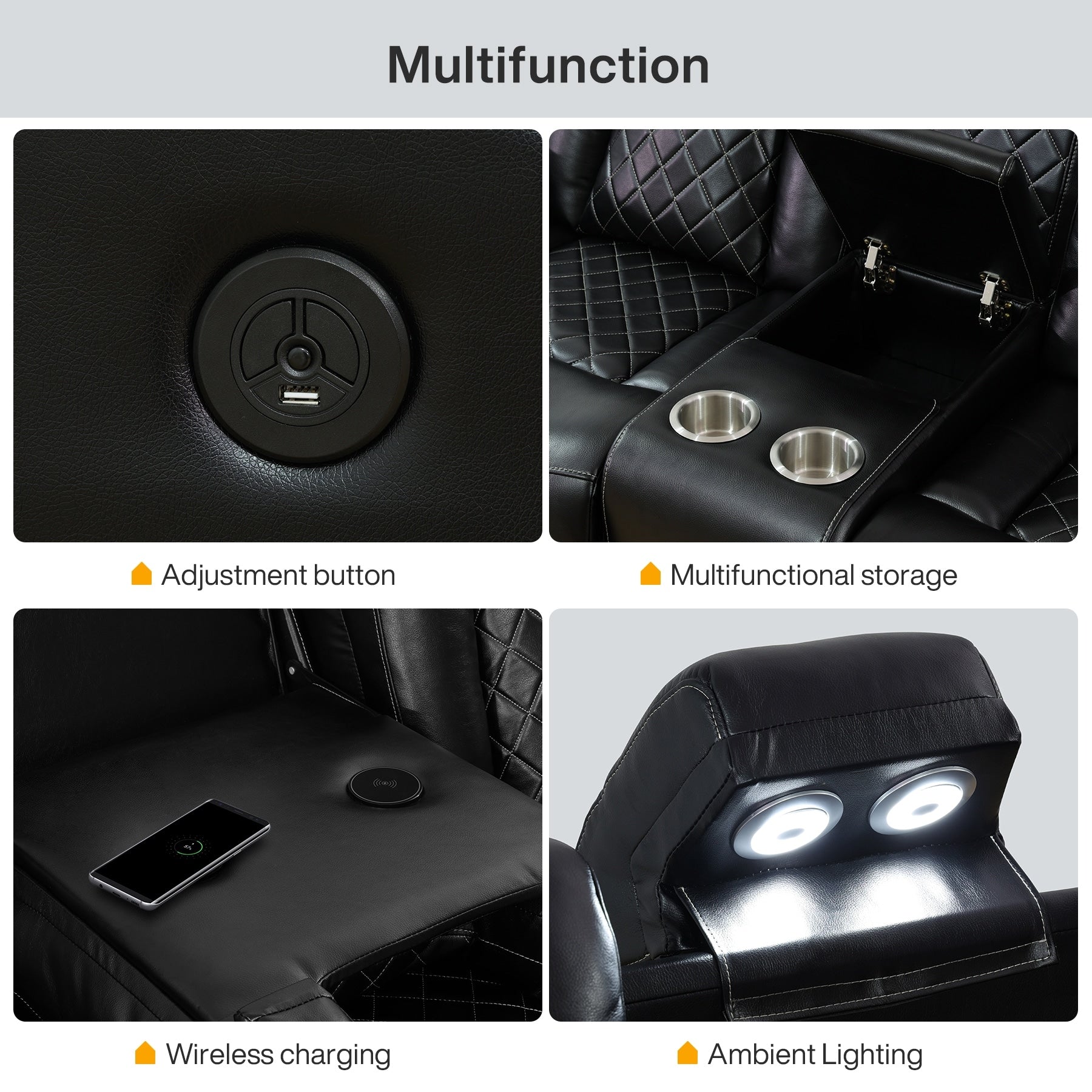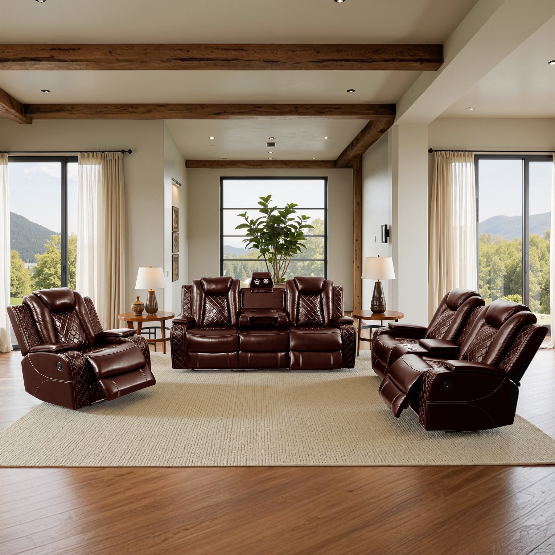 Ensemble de canapés inclinables modernes en cuir 3 pièces avec LED et chargement sans fil
