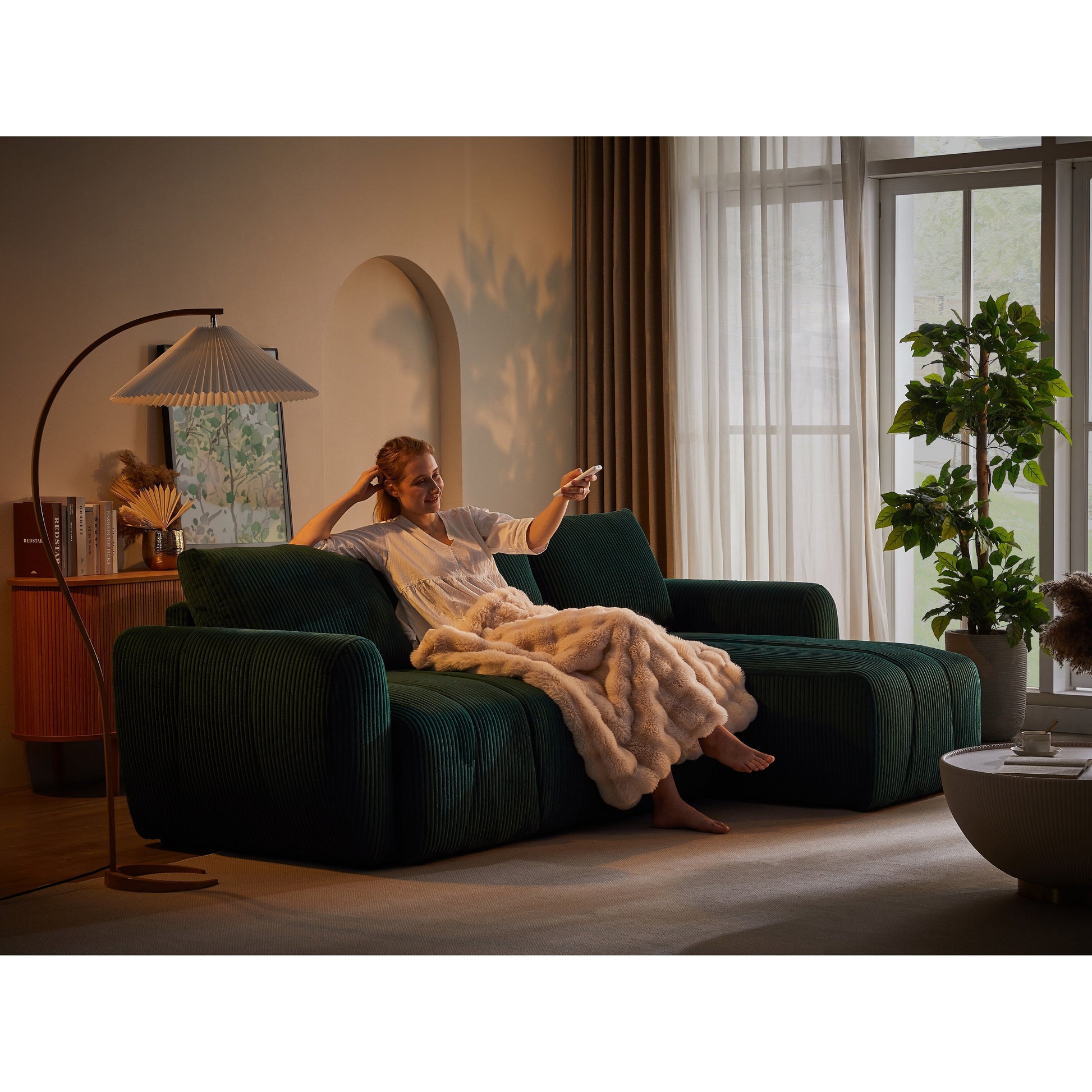 - Esthétique moderne : Fabriqué avec un tissu de haute qualité dans une teinte verte accrocheuse, ce canapé en forme de L ajoute une touche d'élégance contemporaine à n'importe quel salon, complétant une gamme de styles de décoration intérieure.