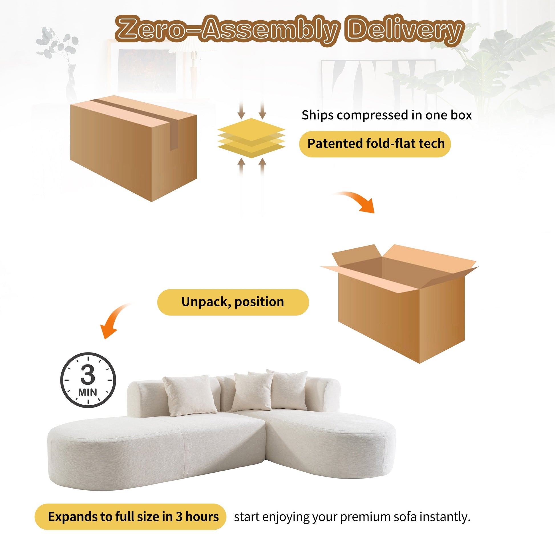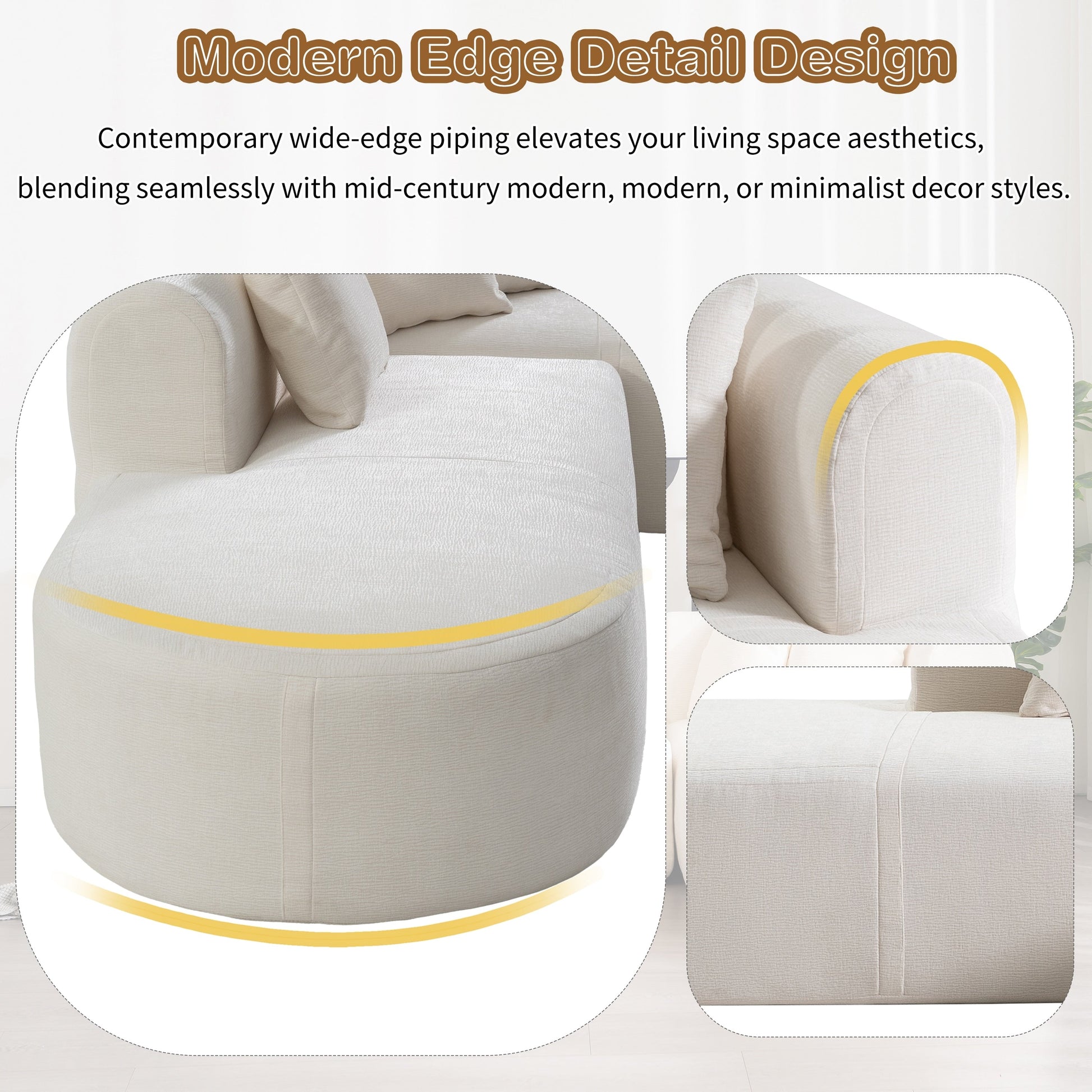 - Ce canapé d'angle incurvé et moderne présente une silhouette élégante avec une assise à larges coutures et quatre coussins moelleux pour un confort accru. Revêtu d'un tissu doux, il est élégant et polyvalent, idéal pour le salon, la chambre ou le bureau.