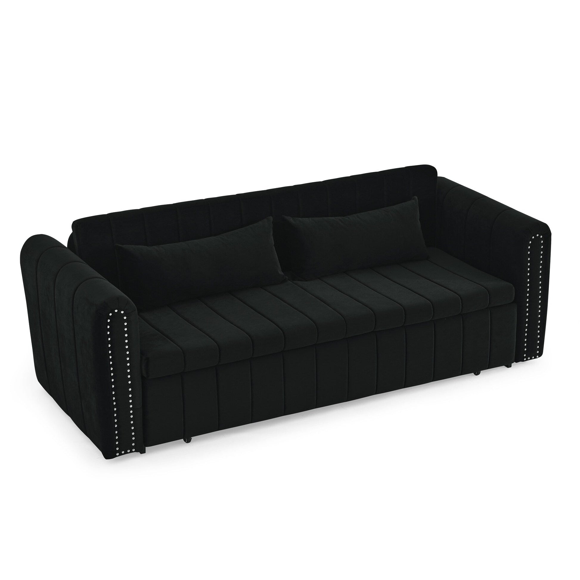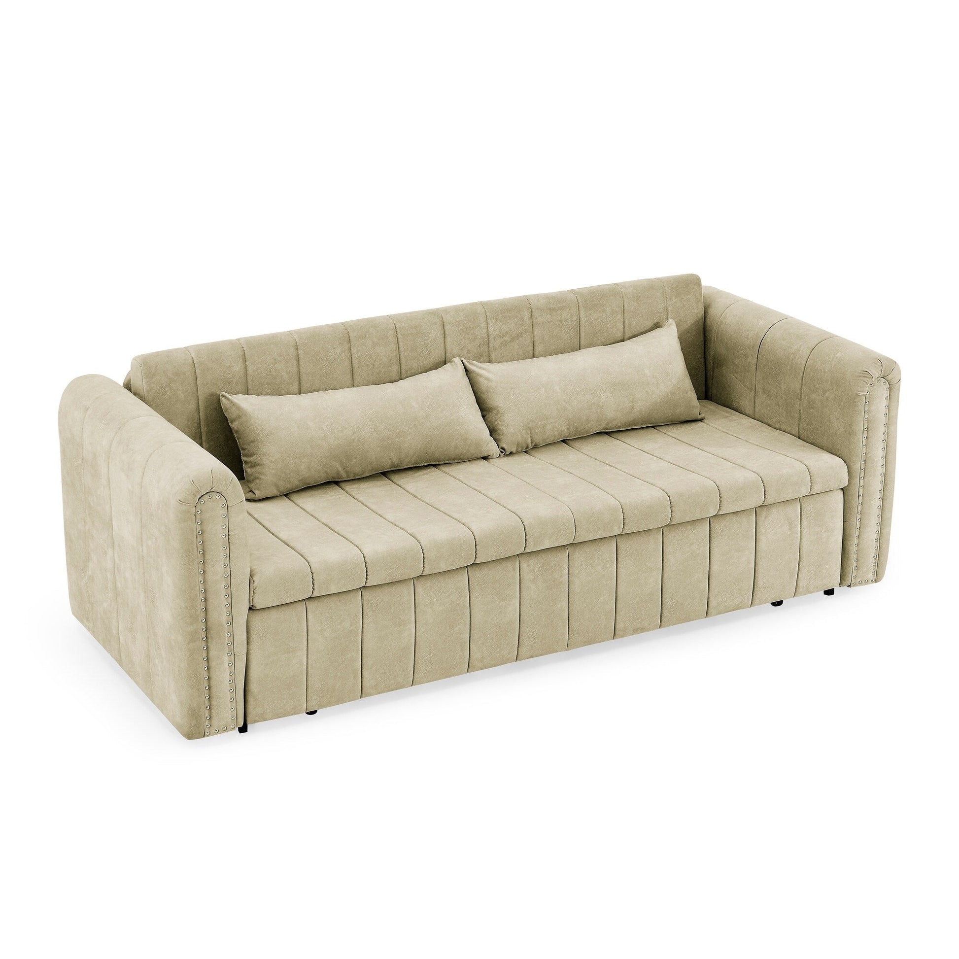 Canapé-lit gigogne 3 places 3 en 1 en mousse moderne 68 avec clous en cuivre et deux tiroirs