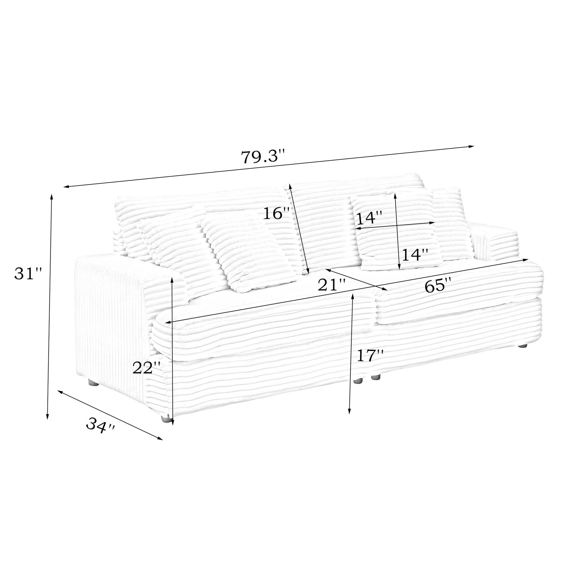 Canapé rembourré moderne 79.3, canapé 3 places en velours côtelé avec 4 coussins décoratifs pour salon et appartement