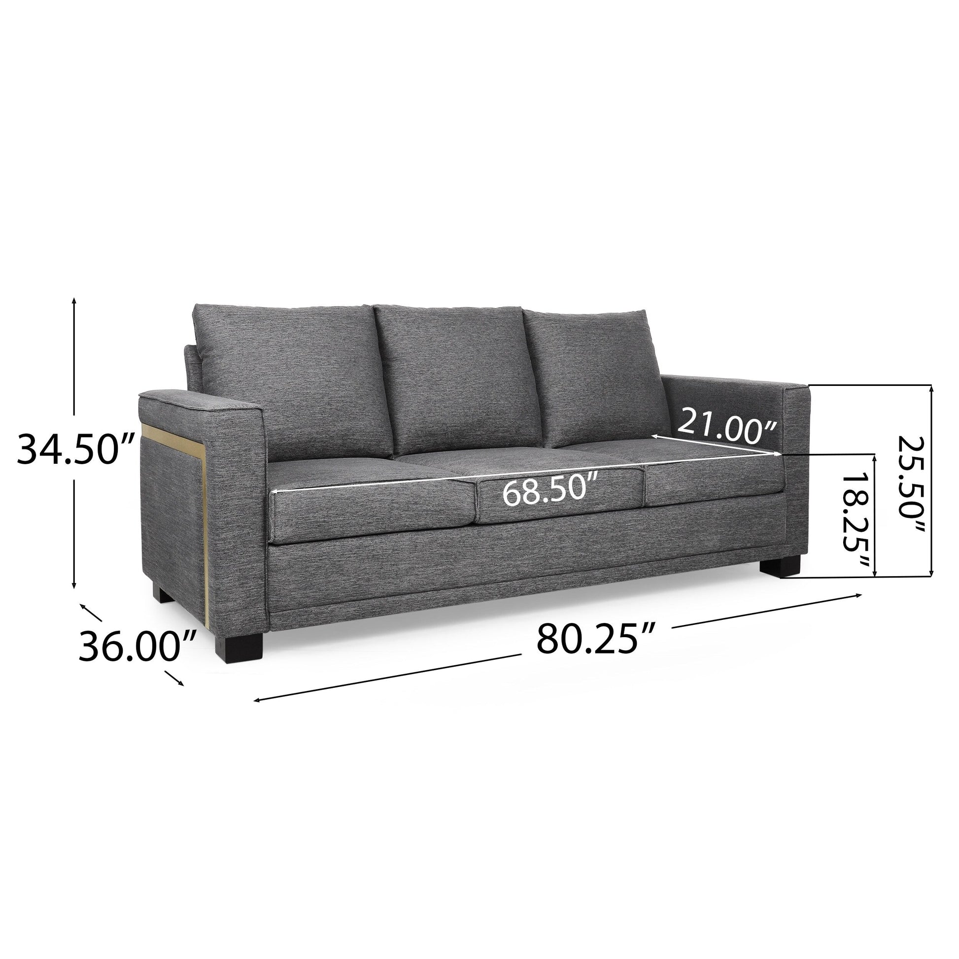 Canapé 3 places moderne rembourré 80,25 avec coussins et pieds en bois pour le salon