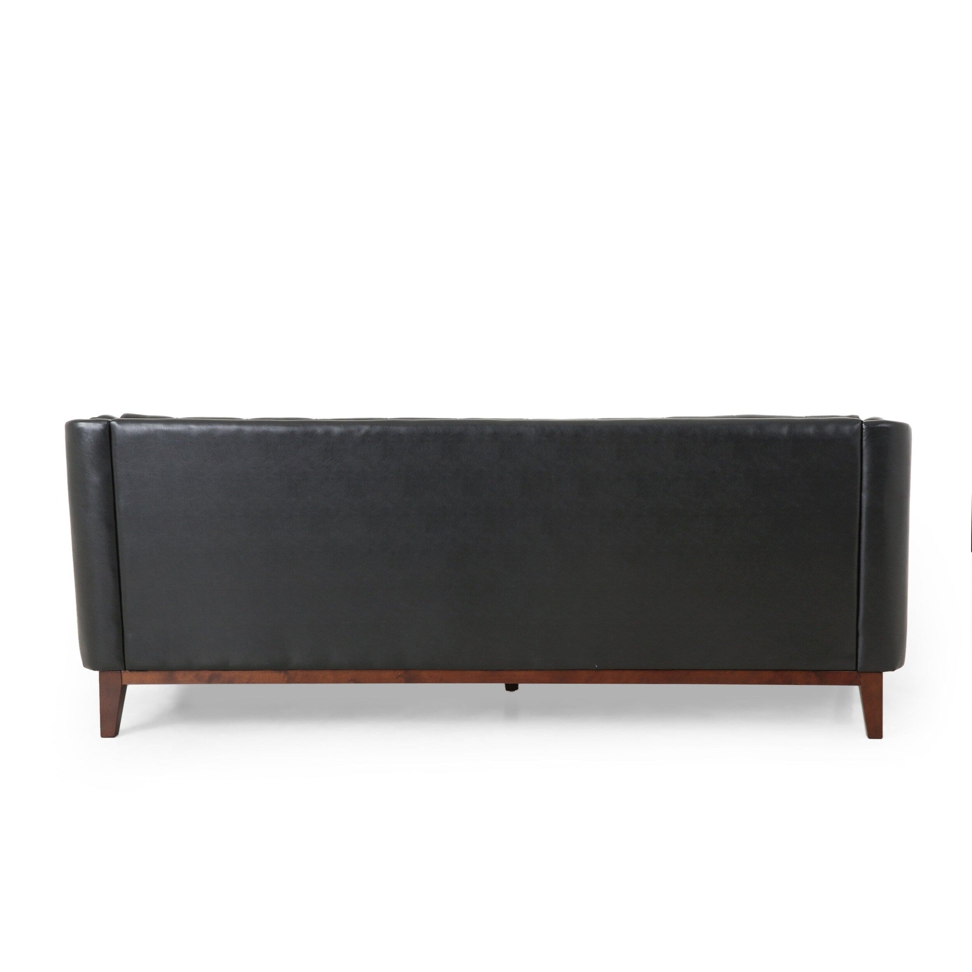 Canapé 3 places moderne capitonné en similicuir avec pieds en bois pour le salon