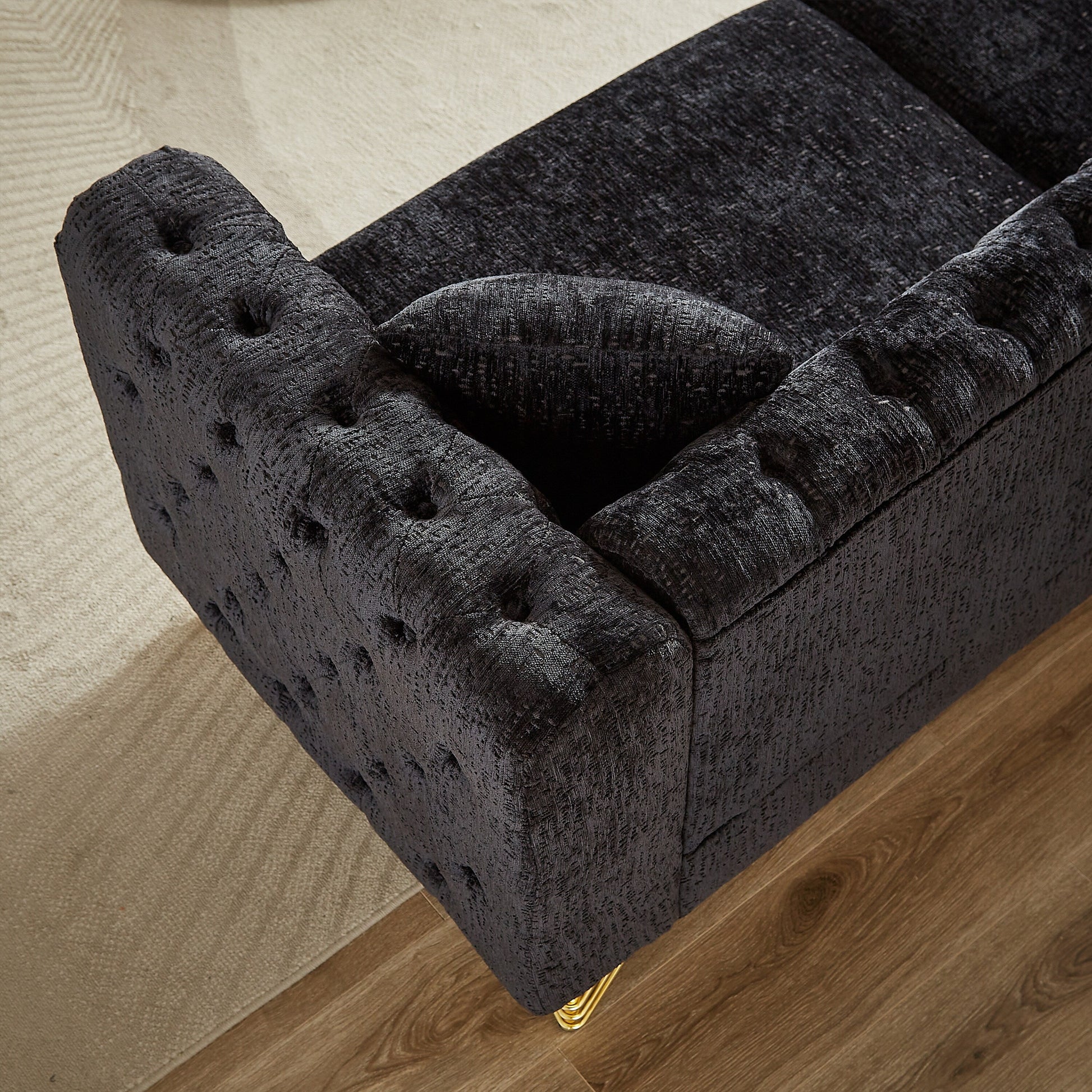 - Robuste et durable : La structure du canapé est en bois massif pour plus de solidité et de durabilité. Avec sa mousse confortable, ses coussins moelleux soutenus par une structure à ressorts incurvés, ses pieds en métal pour des années d'utilisation et ses boutons capitonnés sur le dossier et les accoudoirs, ce canapé est idéal pour ceux qui souhaitent se reposer après une journée bien remplie.